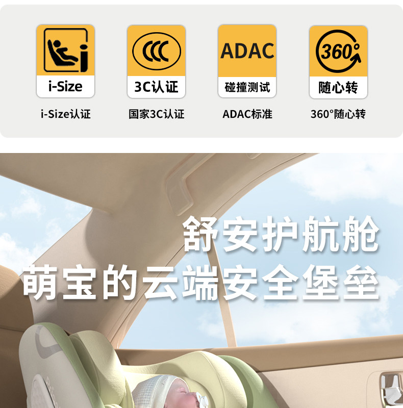 Child Safety Car Seat for Infants and Toddlers, Suitable for Ages 0 to 12, Newborns and Young Babies Can Sit or Recline