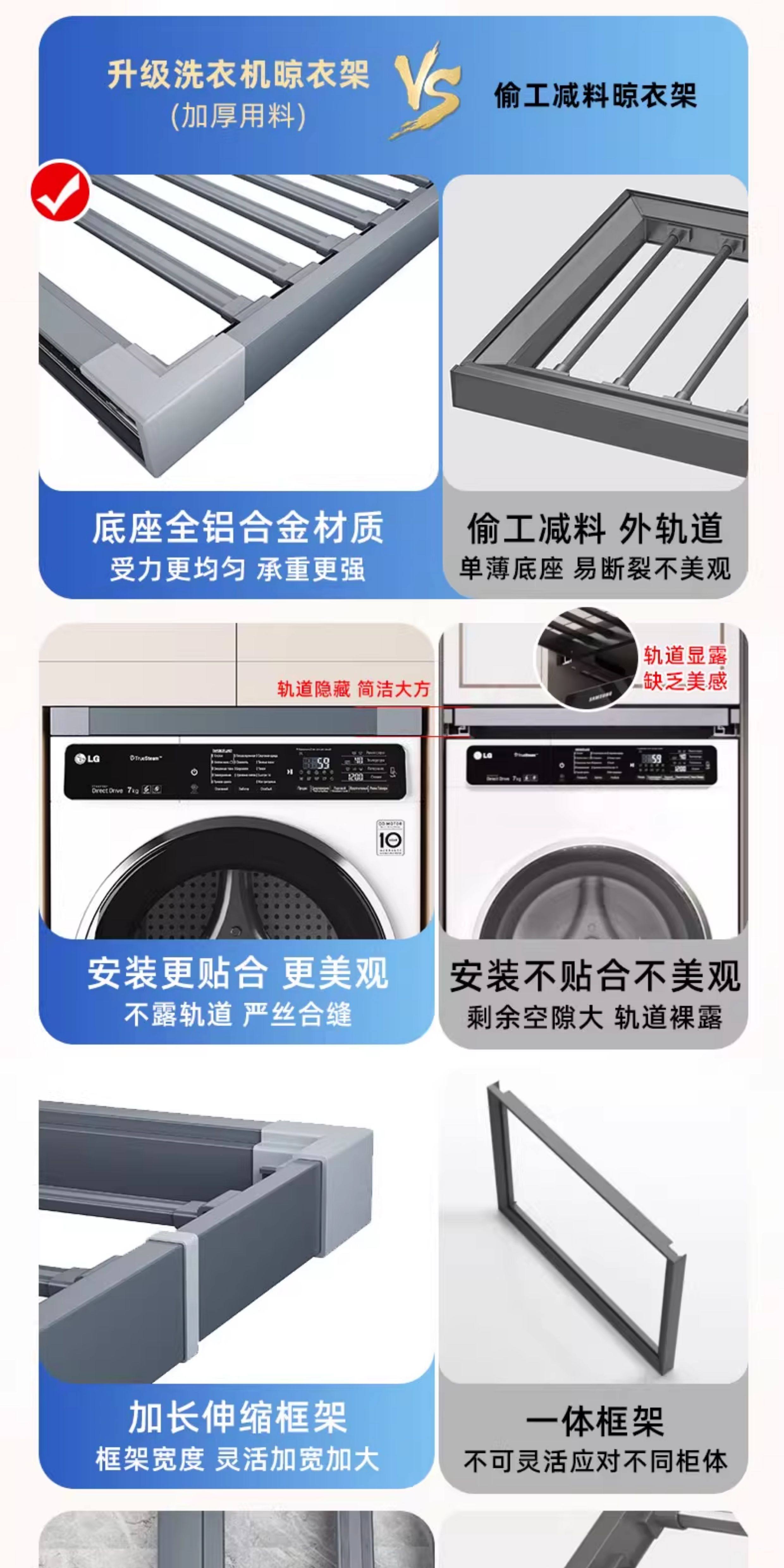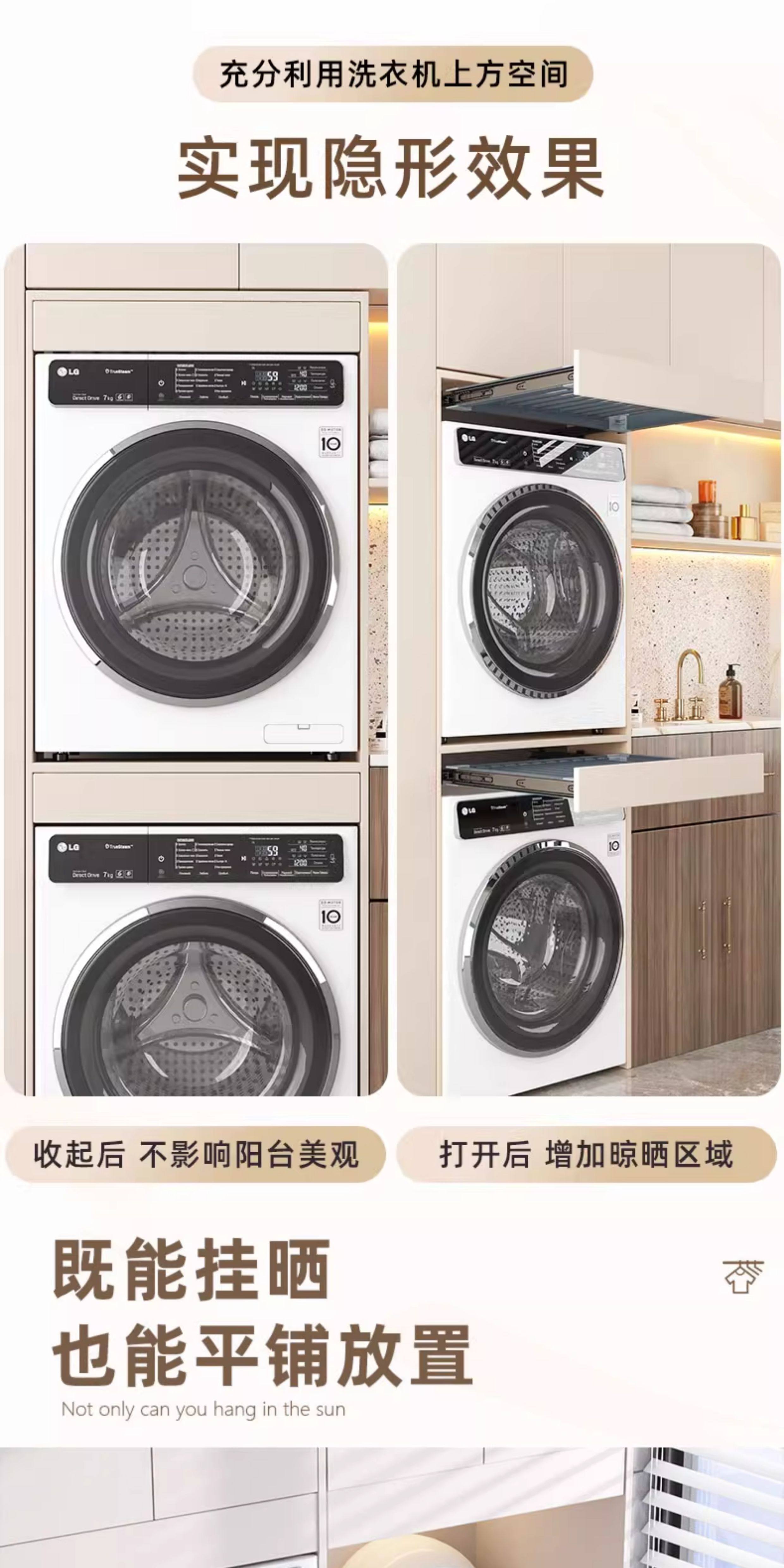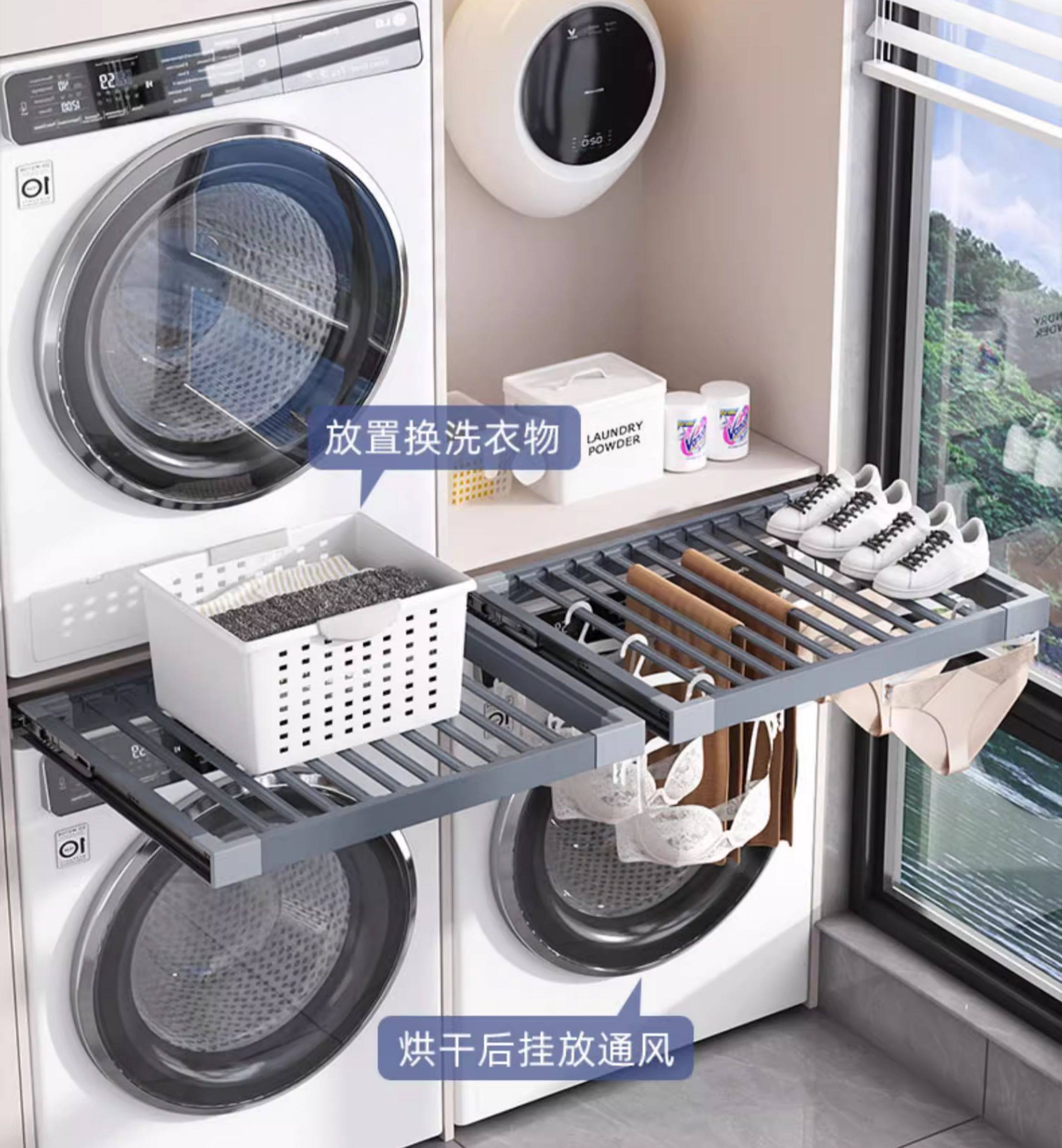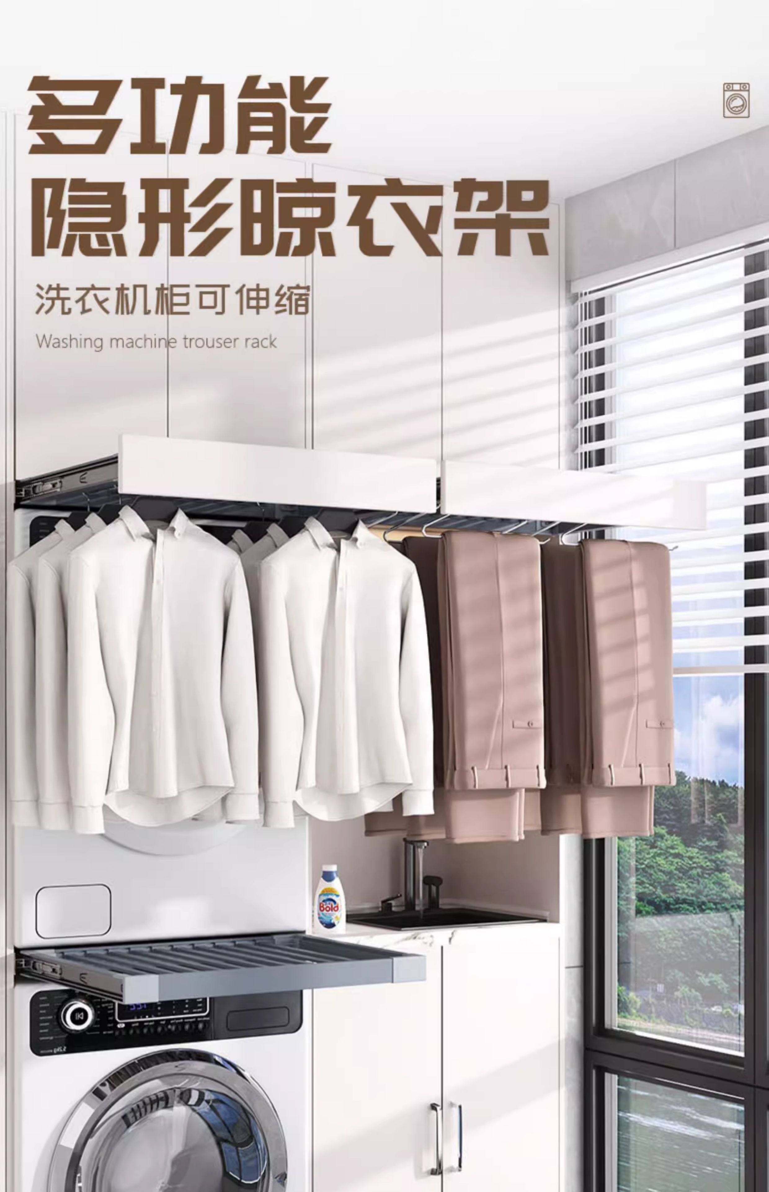 Ultra-Thin 3cm Washing Machine Pull-Out Clothes Rack, Retractable Invisible Clothes Drying Rack Above the Balcony, Trouser Rack Storage Slide Rail