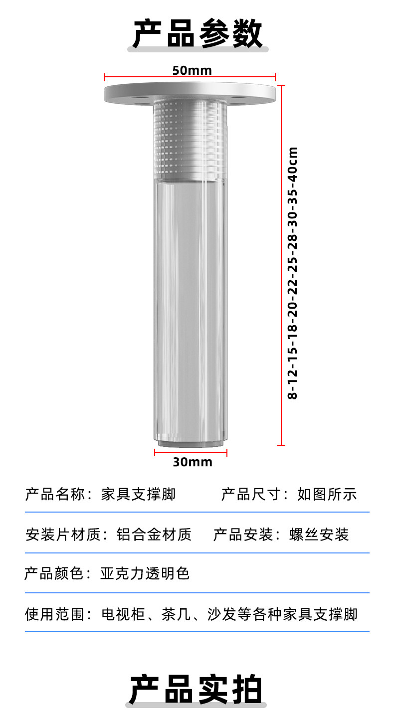 Transparent Acrylic Support Legs, Light Luxury Floating Tv Cabinet Support Legs, Furniture Heightening Adjustable Desk Sofa Legs
