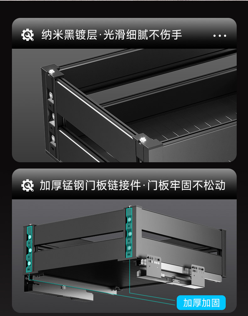 | Color Classification | Double-Layer - 400 Cabinet - Nano Black Aluminum Alloy - Drawer/Open Door Universal - Adjustable Damping Guide Rail,Double-Layer - 450 Cabinet - Nano Black Aluminum Alloy - Drawer/Open Door Universal - Adjustable Damping Guide Rail,Double-Layer - 500 Cabinet - Nano Black Aluminum Alloy - Drawer/Open Door Universal - Adjustable Damping Guide Rail,Double-Layer-550 Cabinet-Nano Black Aluminum Alloy-Drawer/Open Door Universal-Adjustable Damping Guide Rail,True Three-Layer-400 Cabinet-Nano Black Aluminum Alloy-Drawer/Open Door Universal-Adjustable Damping Guide Rail,True Three-Layer-450 Cabinet-Nano Black Aluminum Alloy-Drawer/Open Door Universal-Adjustable Damping Guide Rail,True Three-Layer-500 Cabinet-Nano Black Aluminum Alloy-Drawer/Open Door Universal-Adjustable Damping Guide Rail,True Three-Layer-550 Cabinet-Nano Black Aluminum Alloy-Drawer/Open Door Universal-Adjustable Damping Guide Rail |