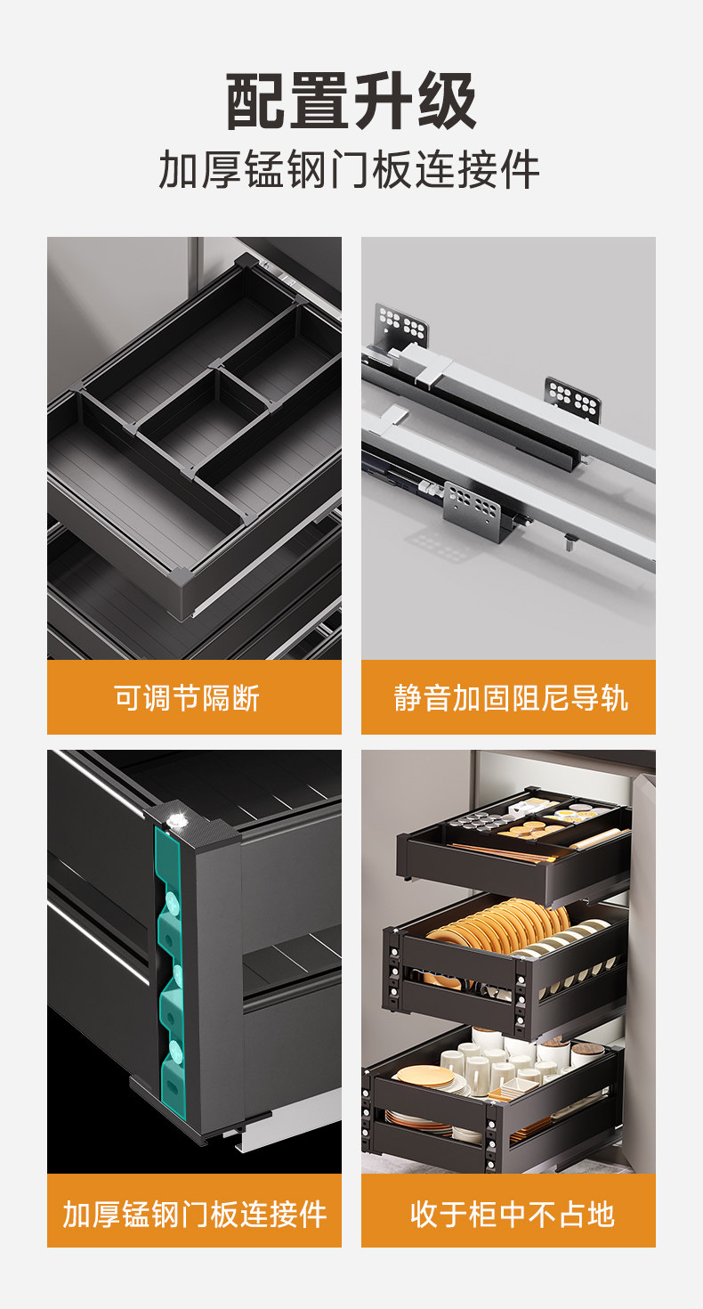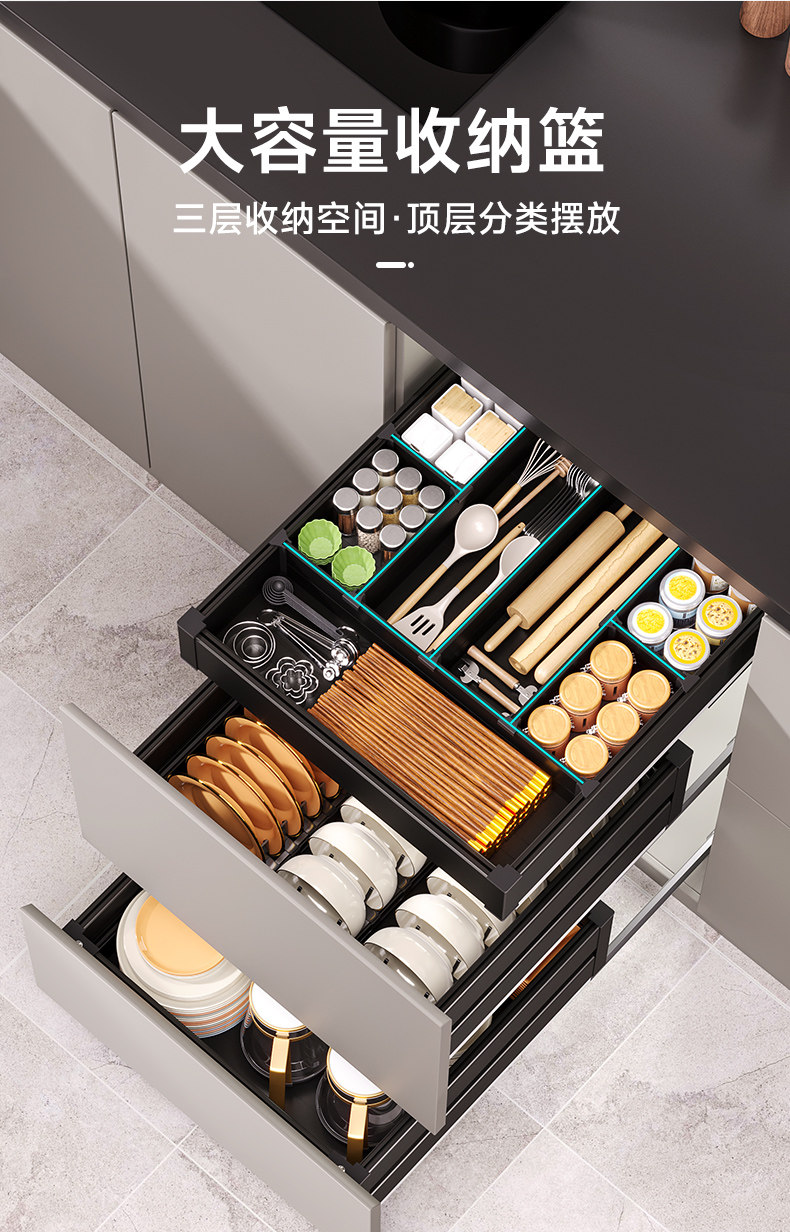 Dish Basket Kitchen Cabinet Drawer-Type Three-Layer Dish Basket Aluminum Alloy Dish Rack Kitchen Cabinet Plate and Bowl Cabinet Seasoning Narrow Cabinet