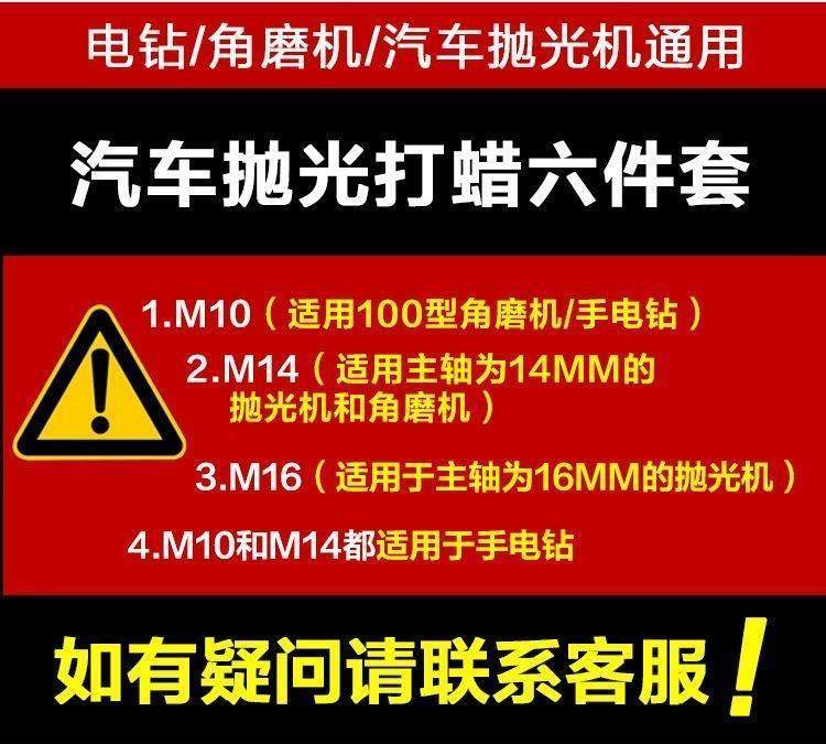 | Color Classification | 5inch M10 Suitable for Hand Electric Drill/100 Type Angle Grinder Six-Piece Set,5inch M14 Suitable for Hand Drill/M14 Polishing Machine Six-Piece Set,6inch M14 Suitable for Hand Drill/M14 Polishing Machine Six-Piece Set,7inch M14 Suitable for Hand Drill/M14 Polishing Machine Six-Piece Set,7inch m 16[Suitable for M16 Spindle Polishing Machines] Without Connecting Rod,Scratch Wax Bottle 300ml,A Can of Polishing Wax 250g |
