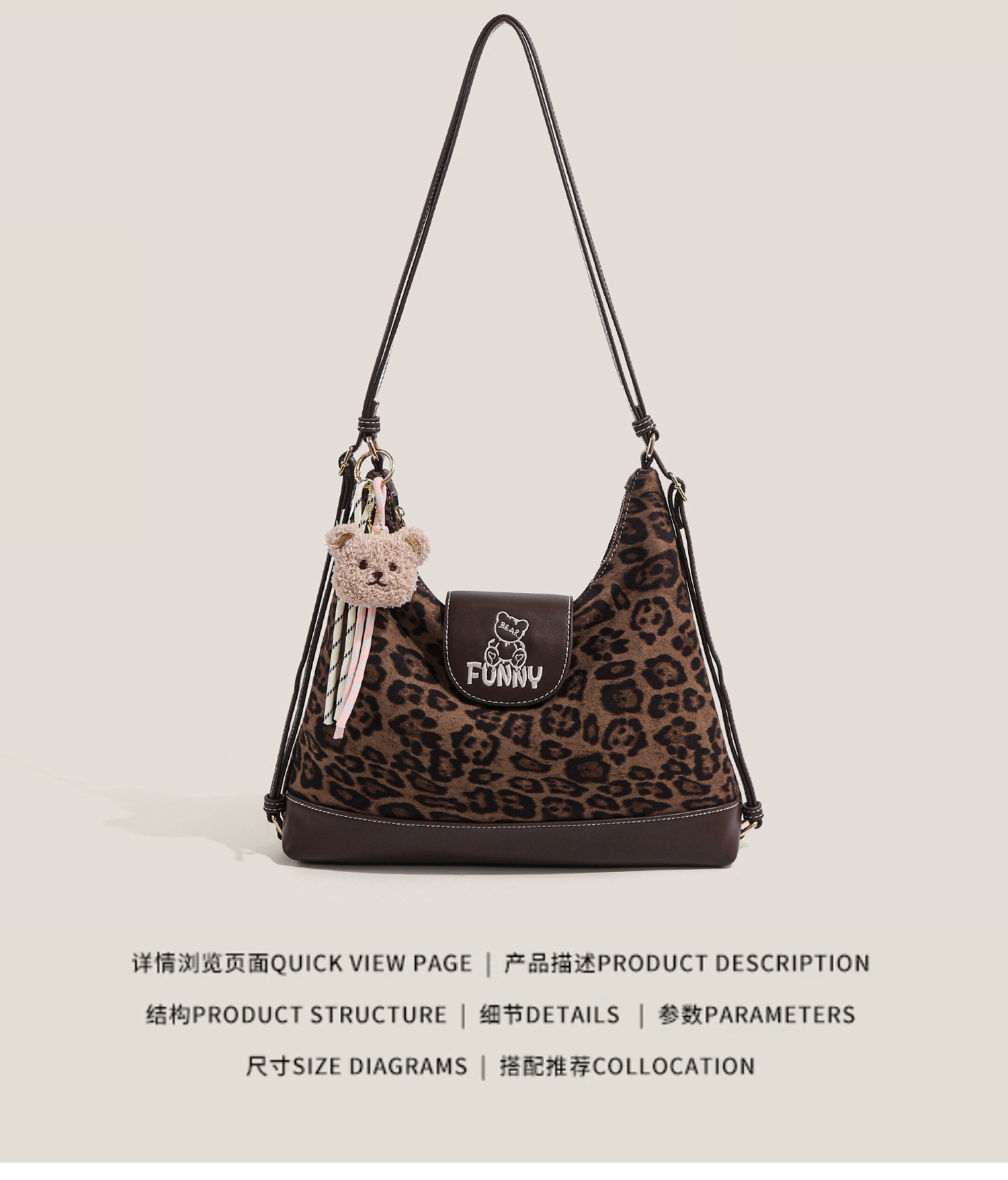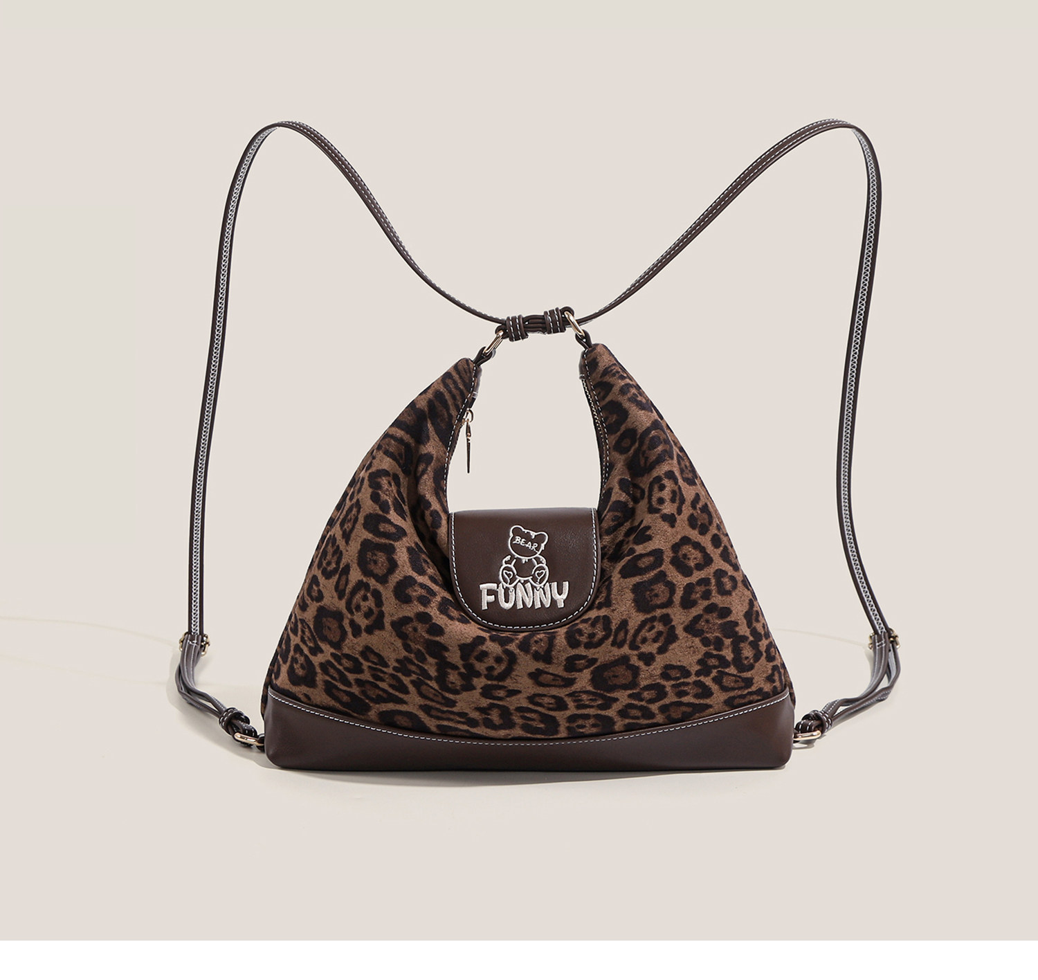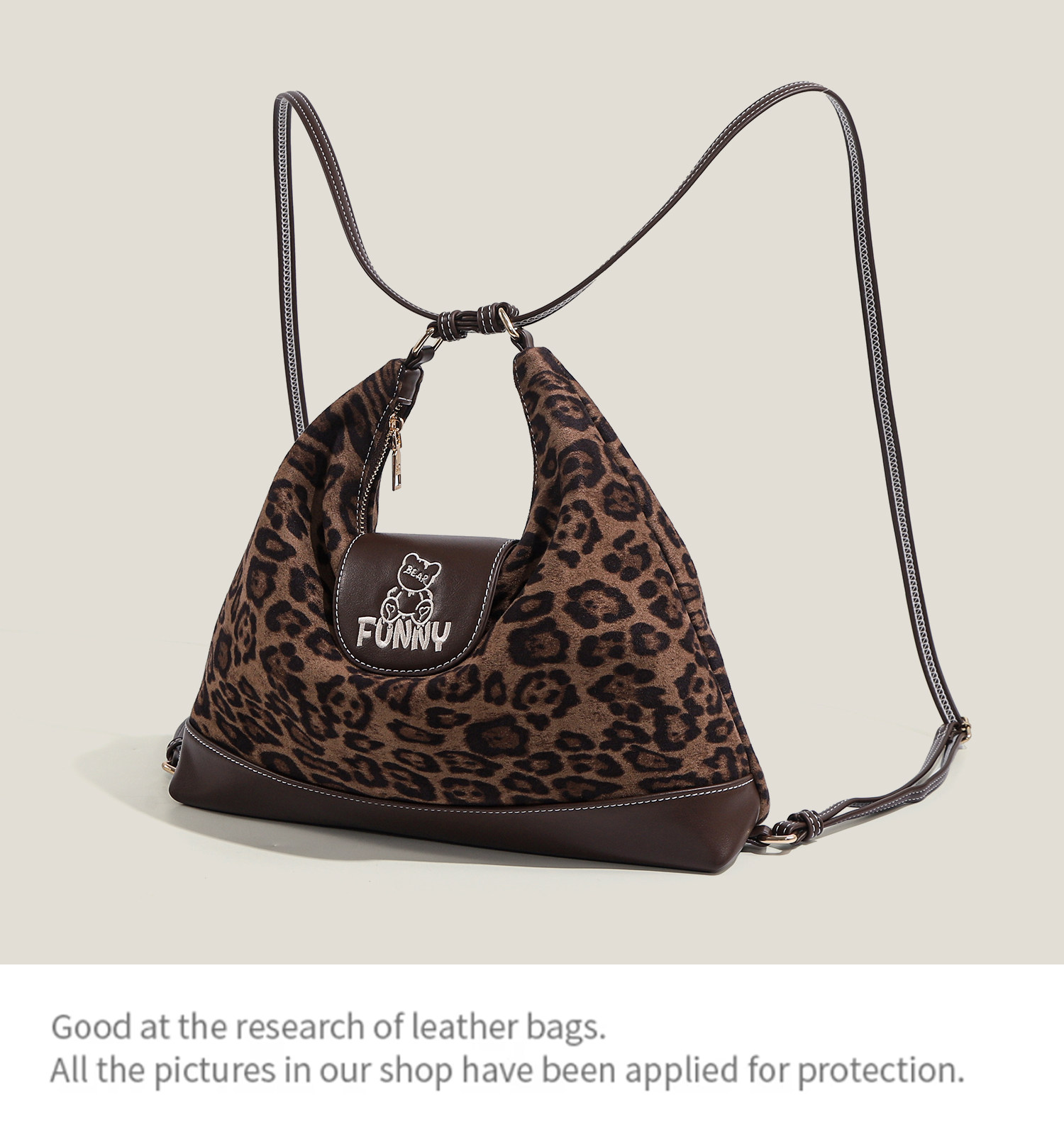 Ctlnokegin One-Pack Three-Use Versatile Leopard Print Backpack for Women, Large-Capacity Commuter Tote Bag, Single-Shoulder Underarm Bag