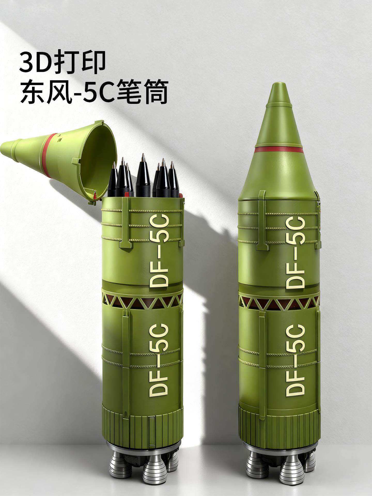 Df Dongfeng 5C Pen Holder Missile Model Stationery Can Be Disassembled into Three Forms 3D Printed Children's Boy Toy Large Capacity Desktop Ornament Creative Storage Can Hold 10 Pens Multifunctional Pencil Case