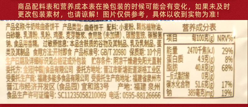 | Color Classification | Cookies 500g*4 (Off-White),Cookies 500g*4 (Red),Two Packages Randomly Mixed 500g*4 |