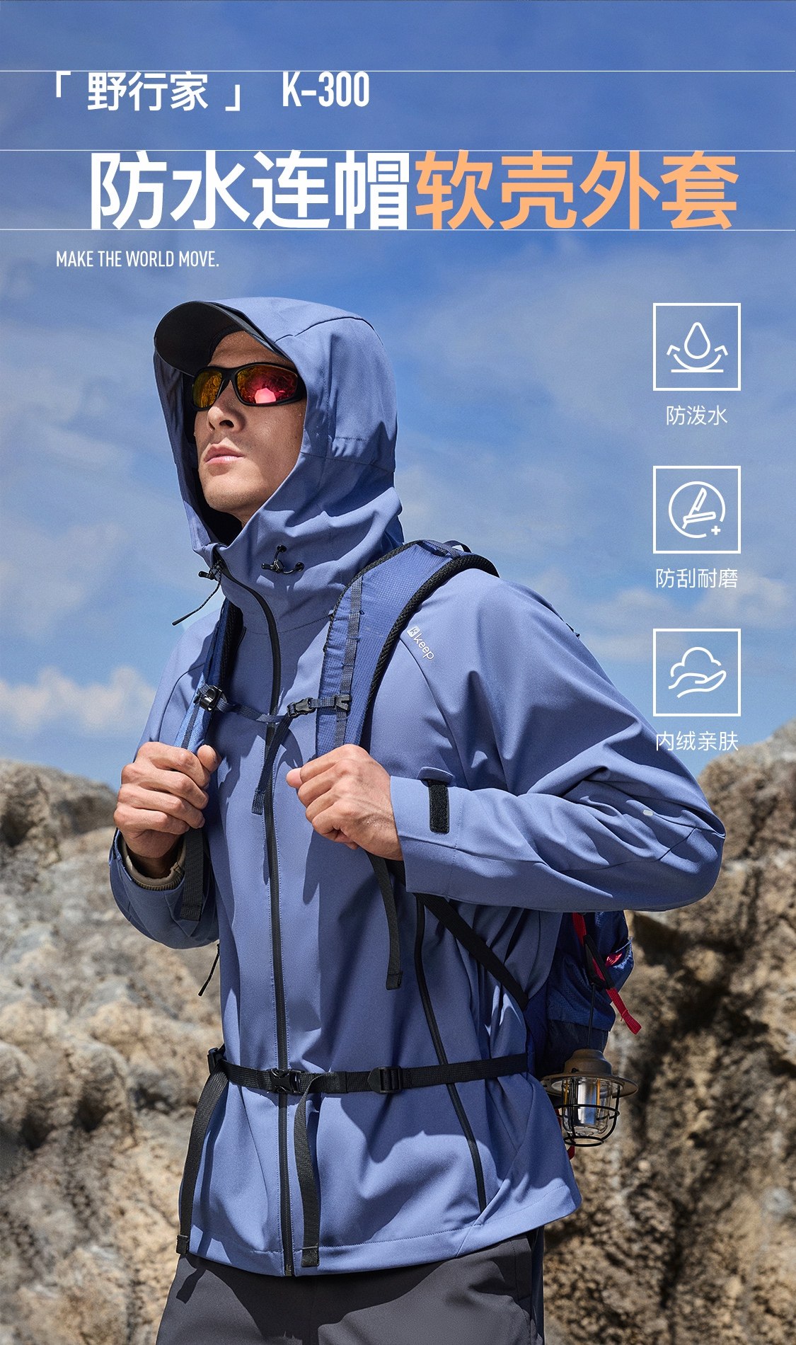 [New Product]Keep Sports Jacket for Men, Autumn and Winter Outdoor Fitness Fleece-Lined Softshell Jacket K300 Wild Explorer 9755