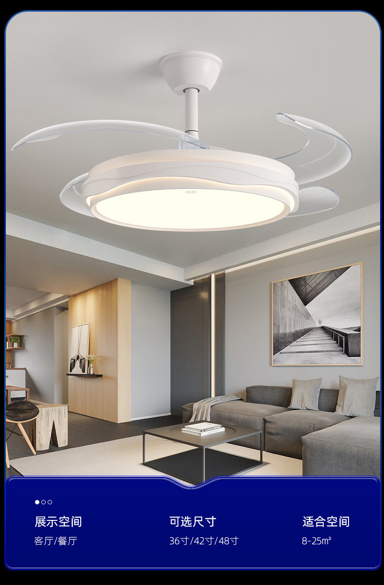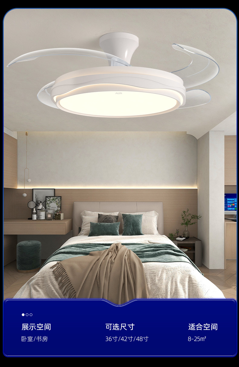 Oaks Invisible Silent Fan Light 2025 New Model for Dining Room, Living Room, Study, Bedroom, Home Integrated Ceiling Fan Light