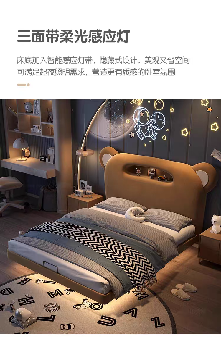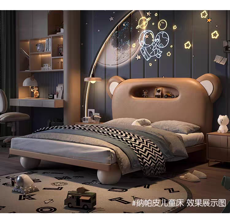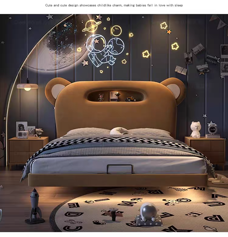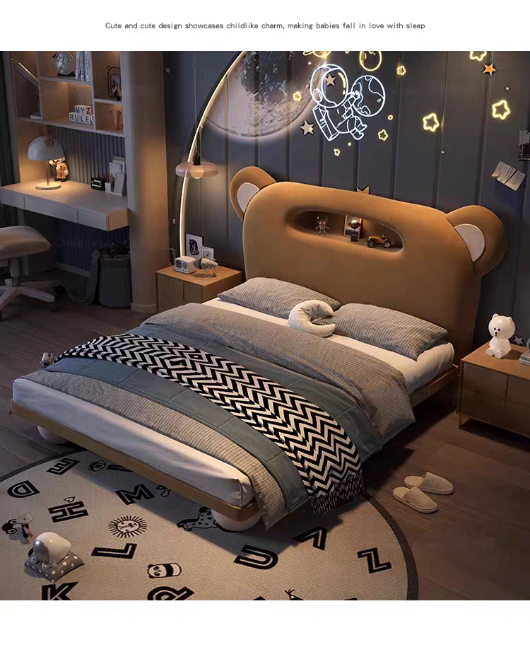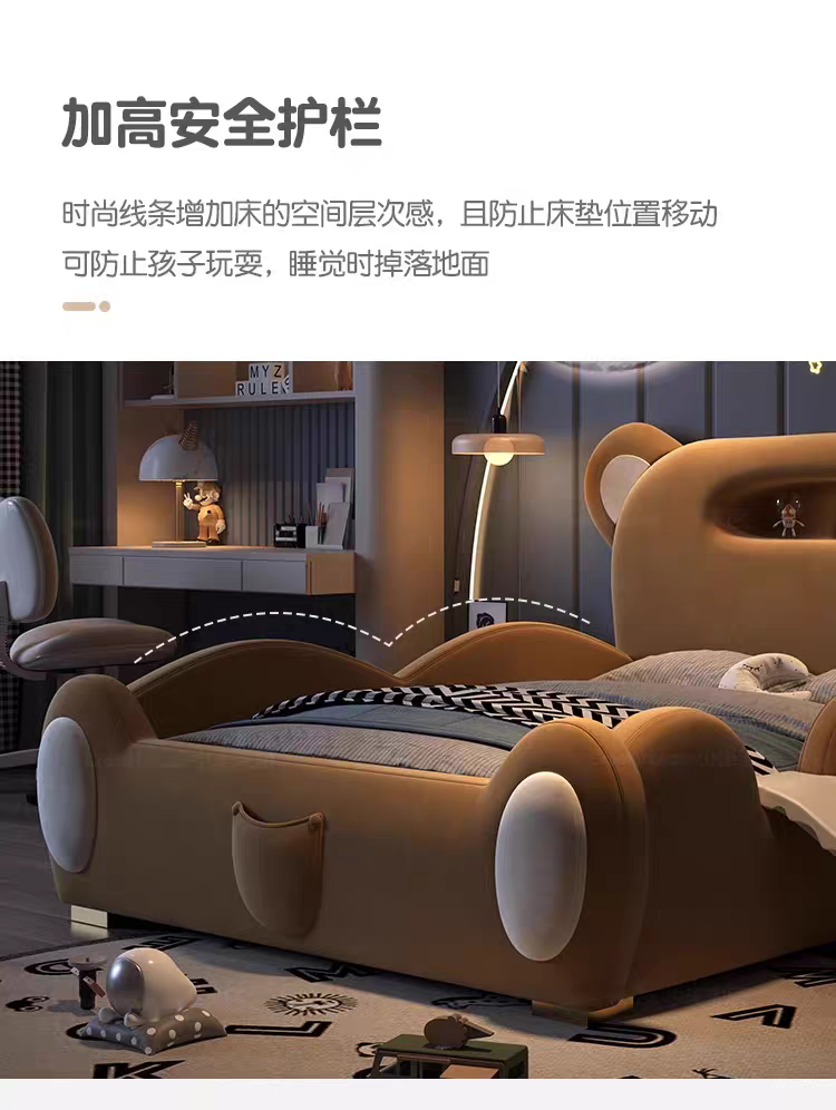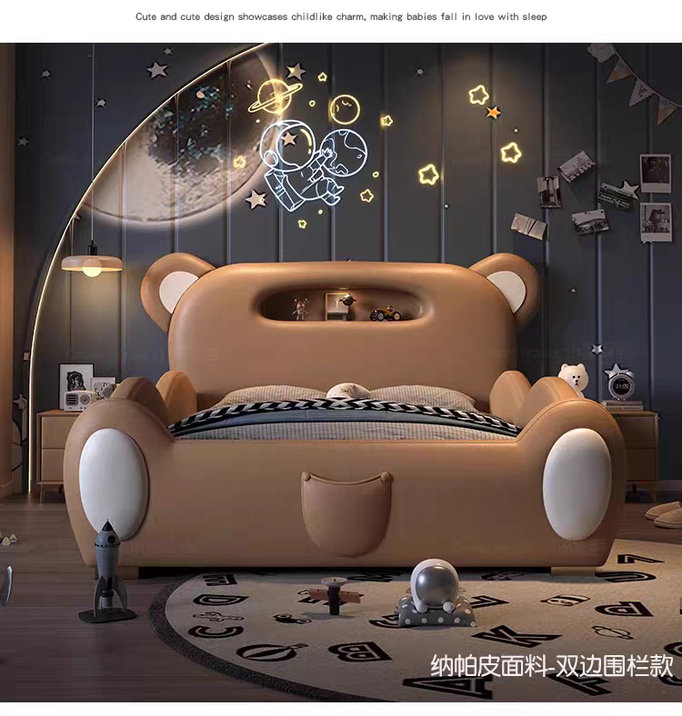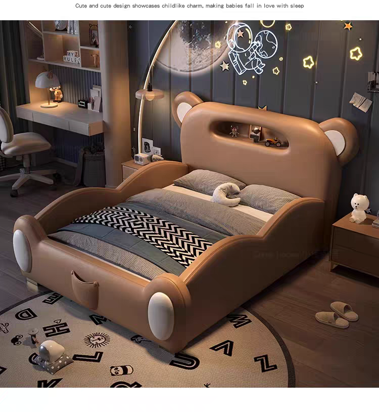 Children's Bed Guardrail Single Bed Modern Simple Girl Cartoon Bear Princess Bed Light Luxury Leather Bed Bedroom Boy's Bed