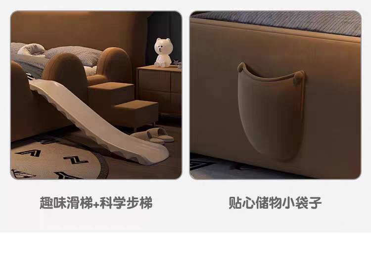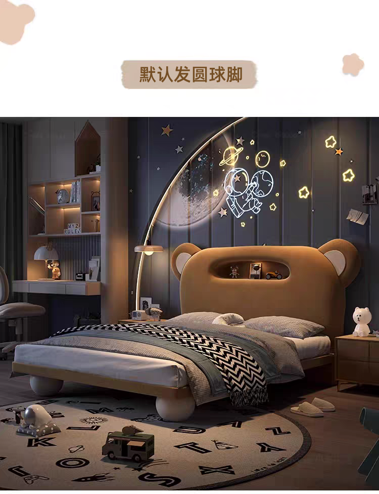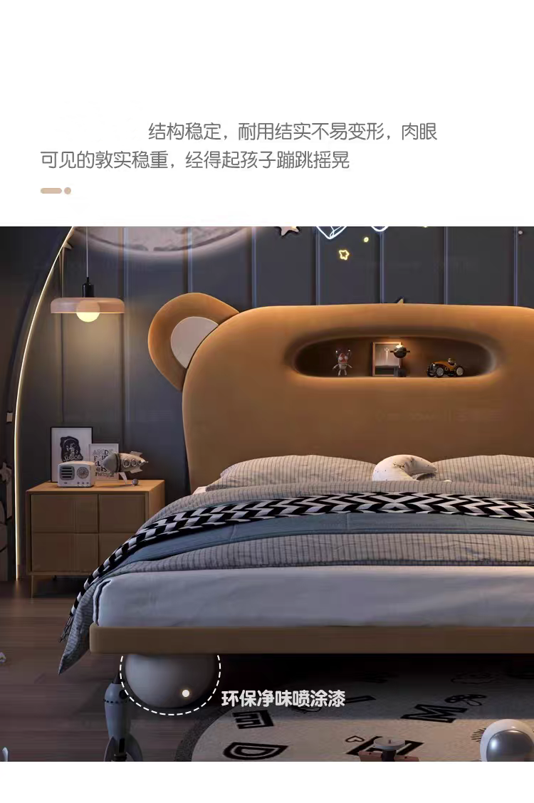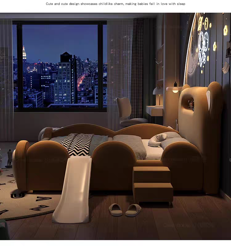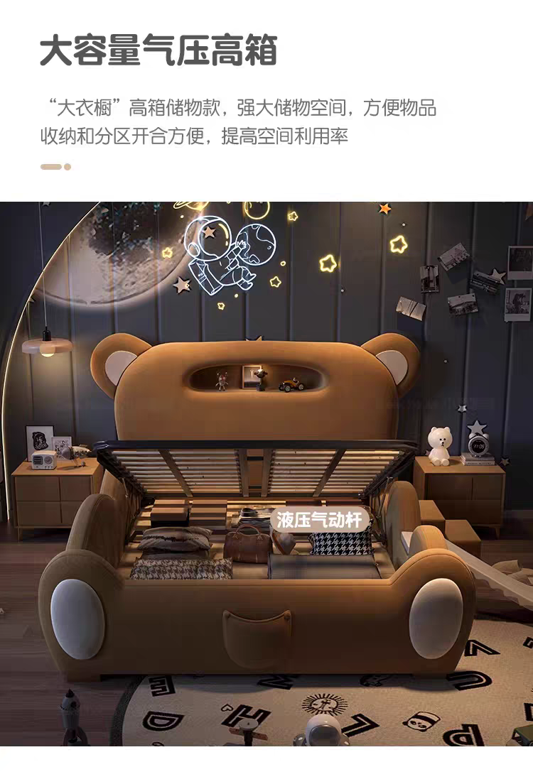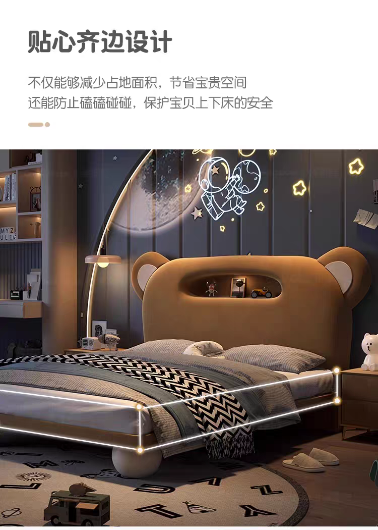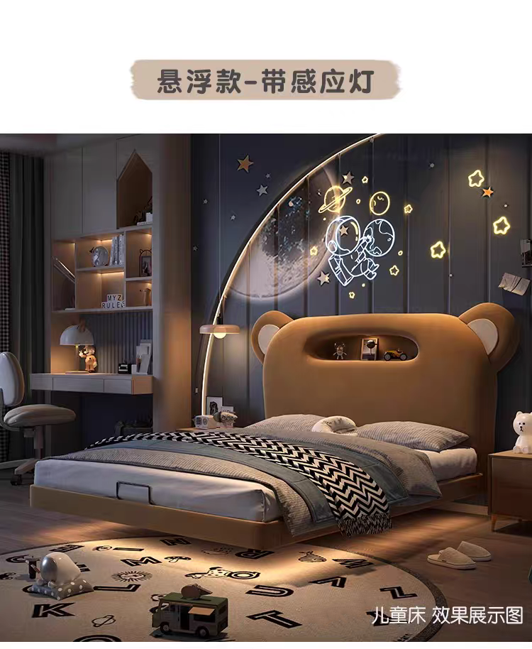 Children's Bed Guardrail Single Bed Modern Simple Girl Cartoon Bear Princess Bed Light Luxury Leather Bed Bedroom Boy's Bed