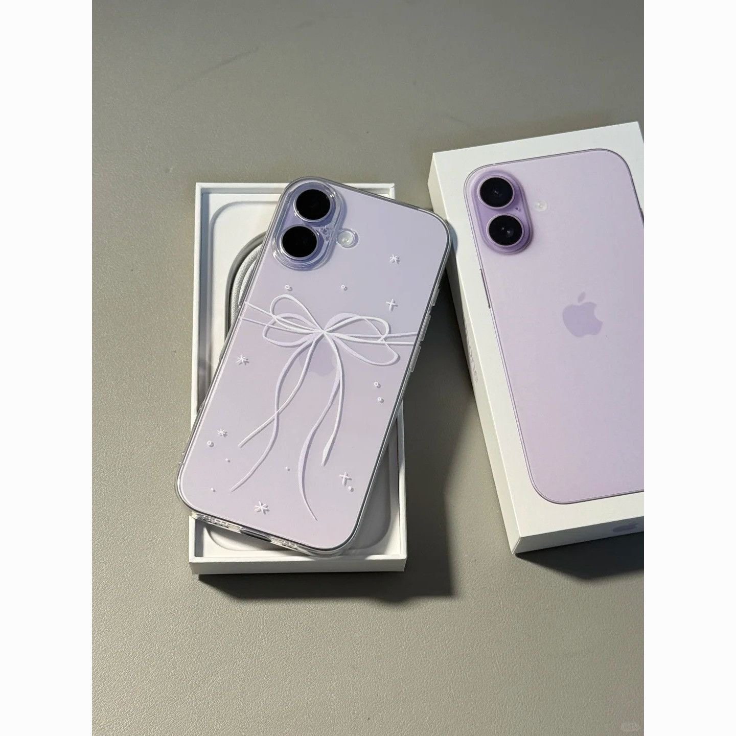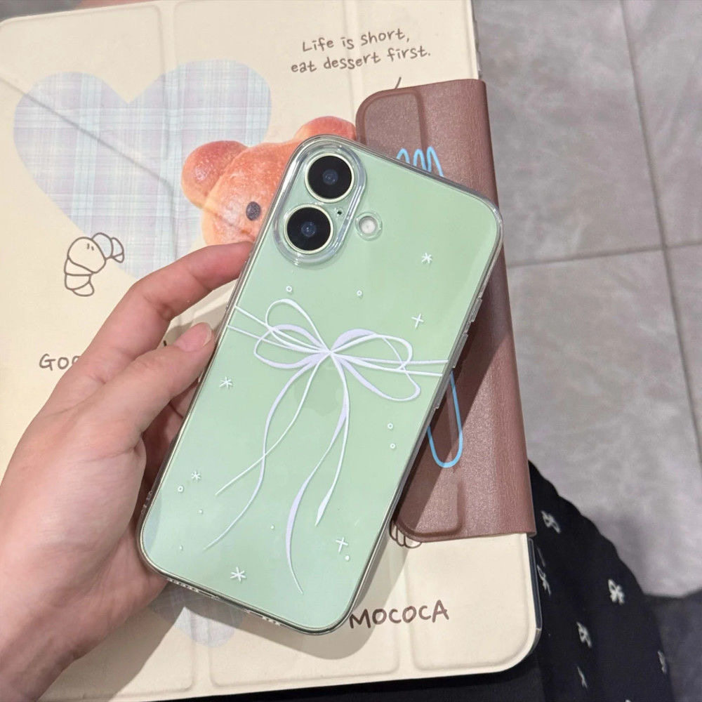 White and Purple Gentle Bow Phone Case Suitable for Apple iPhone 17/14 Pro Max 16 Apple 17/15 Plus 12/13 Fine Hole Transparent