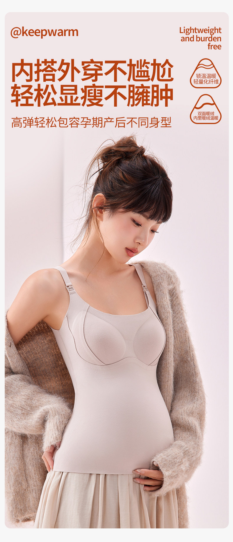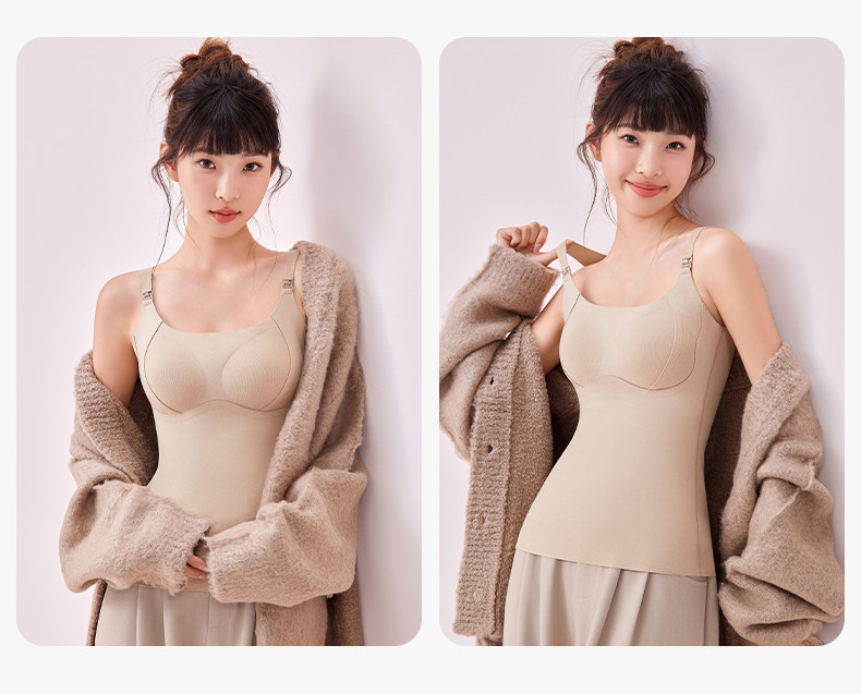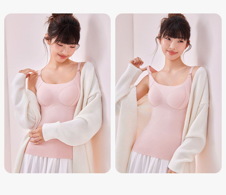 Jingqi Maternity Thermal Nursing Vest, No Need to Wear a Bra, Postpartum Breastfeeding Anti-Sagging Derong Camisole Underwear, Autumn and Winter Style