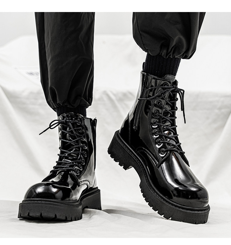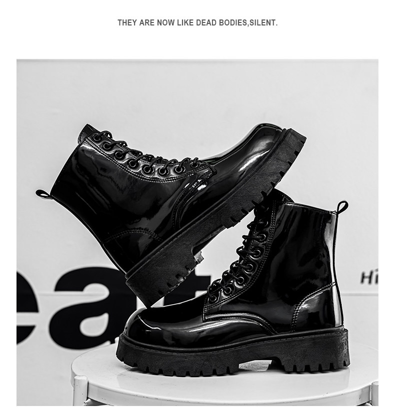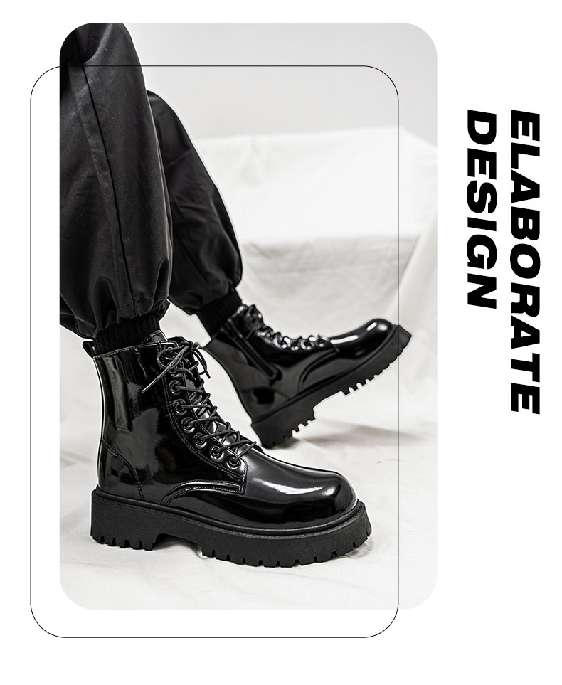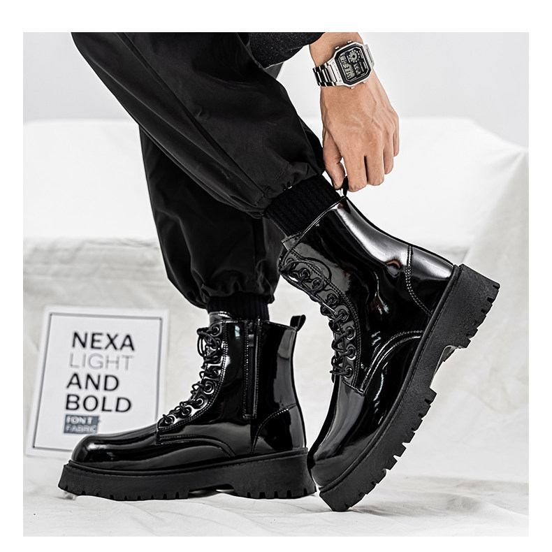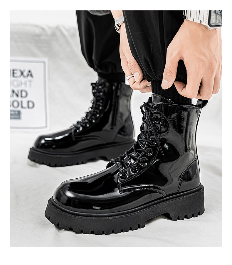 Glossy Martin Boots for Men 2026 New Winter High-Top Black Height-Increasing British Style Work Leather Shoes Men's Motorcycle Boots