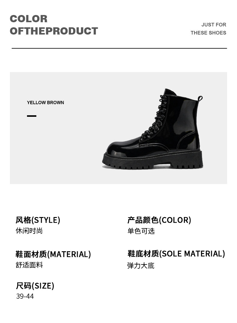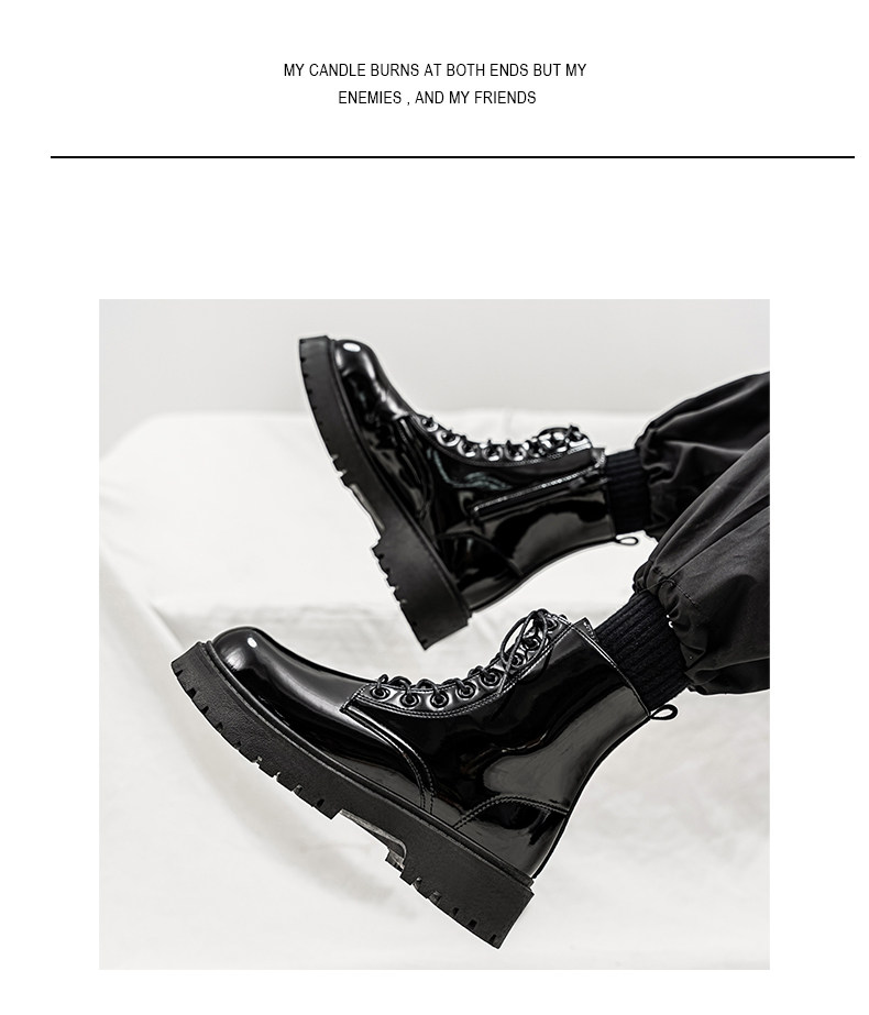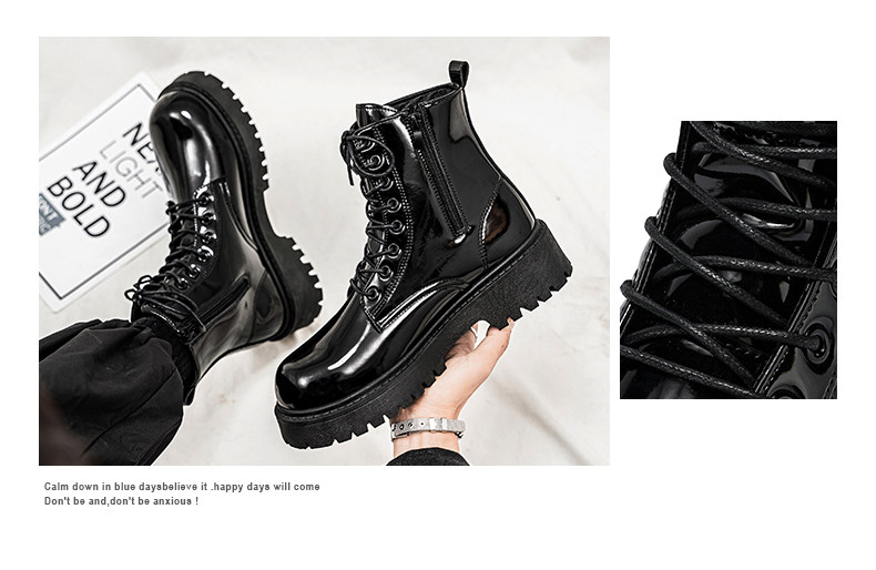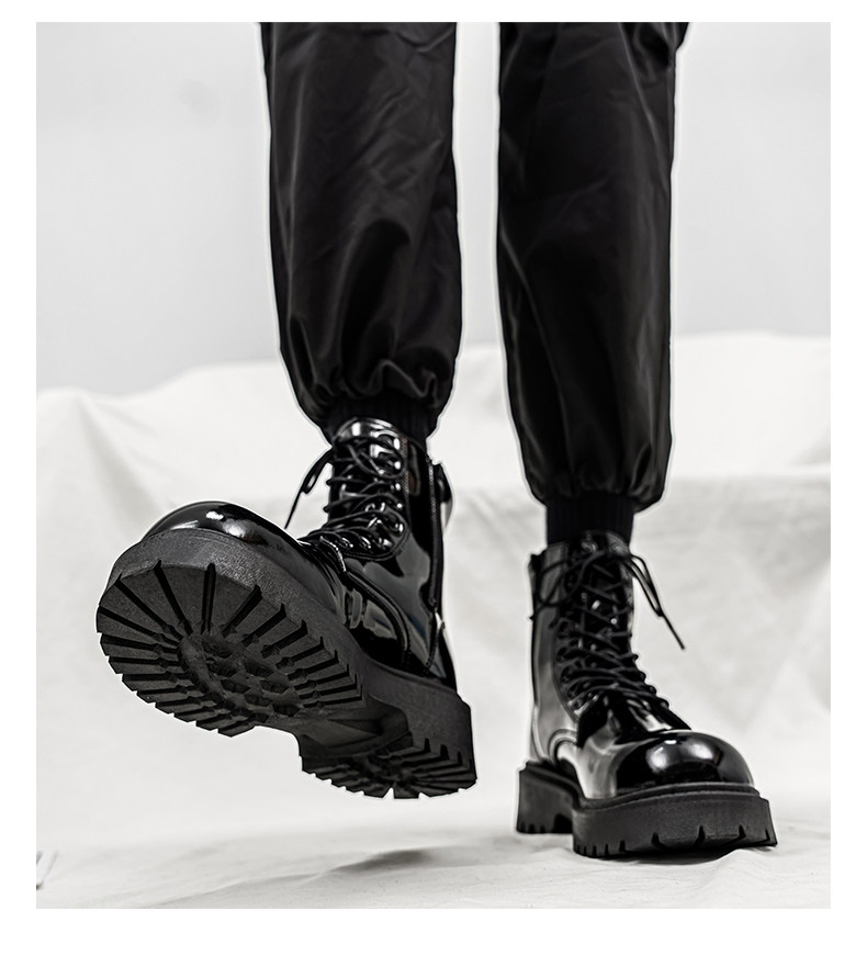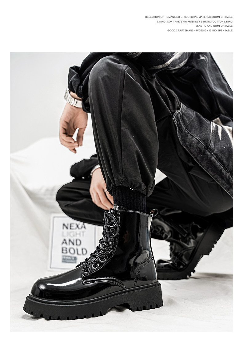 Glossy Martin Boots for Men 2026 New Winter High-Top Black Height-Increasing British Style Work Leather Shoes Men's Motorcycle Boots