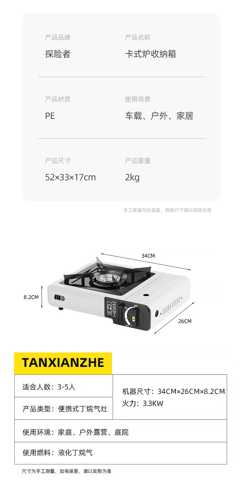 | Color Classification | [One Box Storage] Explosion-Proof Black Stove + 4 Gas Tanks + Black Double-Layer Extra Thick Storage Box,[One Box of Barbecue Storage] Explosion-Proof Black Stove + 4 Bottles of Gas Tanks + Black Double-Layer Extra Thick Storage Box,✅[Complete Set for Barbecue Camping] Explosion-Proof Black Stove + 4 Bottles of Gas Tanks + Black Double-Layer Extra Thick Storage Box,[One Box Storage] Explosion-Proof White Stove + 4 Gas Tanks + Black Double-Layer Extra Thick Storage Box,[One Box of Barbecue Storage] Explosion-Proof White Stove + 4 Bottles of Gas Tanks + Wooden Handle Baking Pan + Black Double-Layer Extra Thick Storage Box,✅[Complete Set for Barbecue Camping] Explosion-Proof White Stove + 4 Bottles of Gas Tanks + Black Double-Layer Extra Thick Storage Box,⬇️The Following Is Including【Barbecue Tools Set】⬇️,Upgraded Bbq Storage Box [Black Stove + 4 Gas Canisters + 2 Brushes + Scissors + Food Tongs] - Black Box,Upgraded Bbq Storage Box + Grill Pan [Black Stove + 4 Gas Canisters + 2 Brushes + Scissors + Food Tongs] - Black Box,✅Just Prepare the Ingredients [Complete Set] Complete Set of Pots + Baking Pan + Black Stove + Complete Set of Boxes - Black Box,Upgraded Bbq Storage Box Set [Stove + 4 Gas Canisters + 2 Brushes + Scissors + Food Tongs] - Black Edition,Upgraded Bbq Storage Box + Grill Pan [Stove + 4 Gas Canisters + 2 Brushes + Scissors + Food Tongs] - Black Edition,✅ Just Prepare the Ingredients [Complete Set] Complete Set of Pots + Baking Pan + Cassette Stove + Complete Set of Boxes - Black Box |