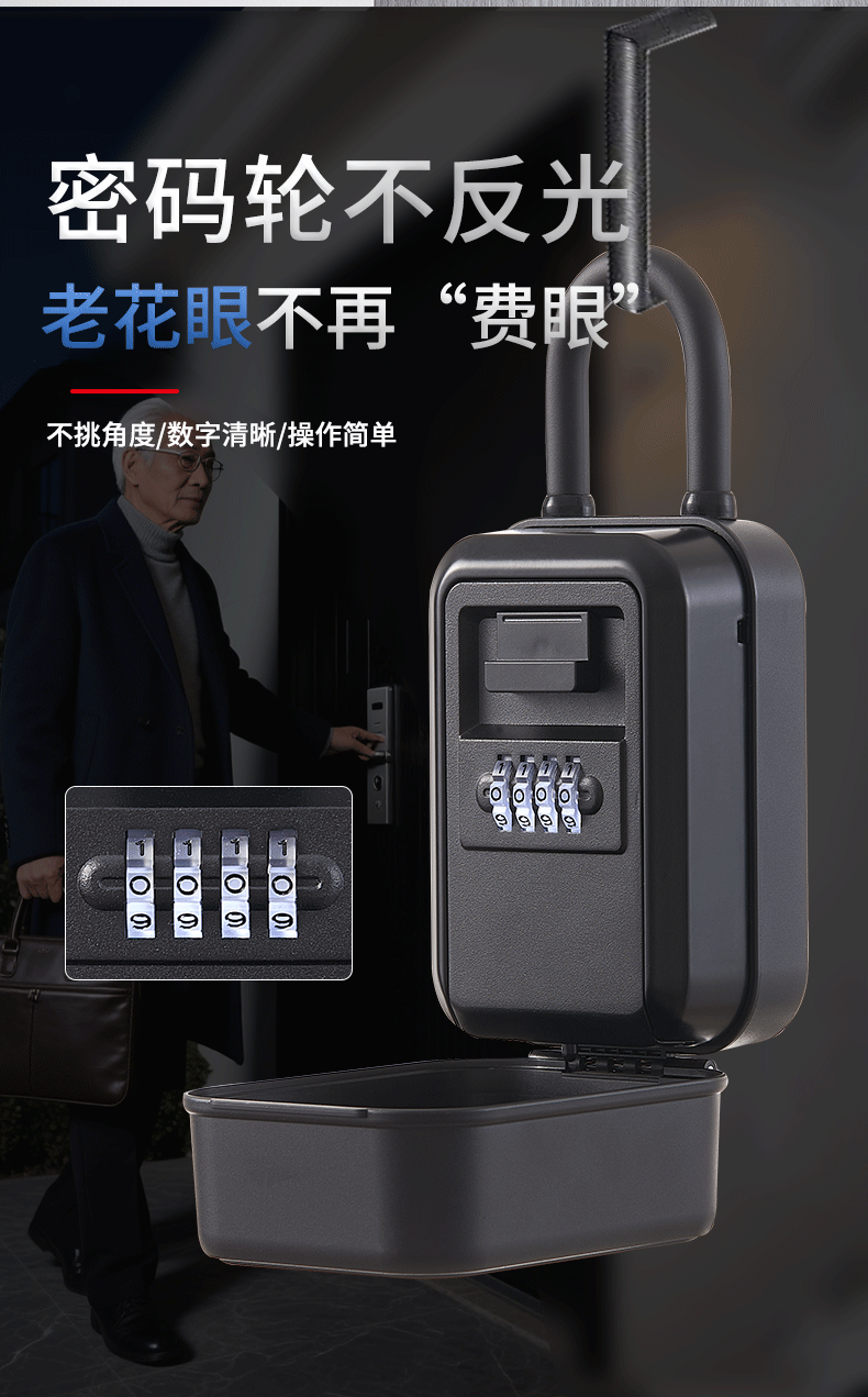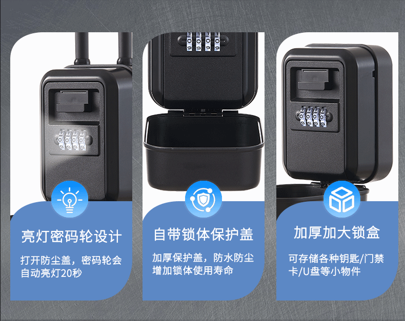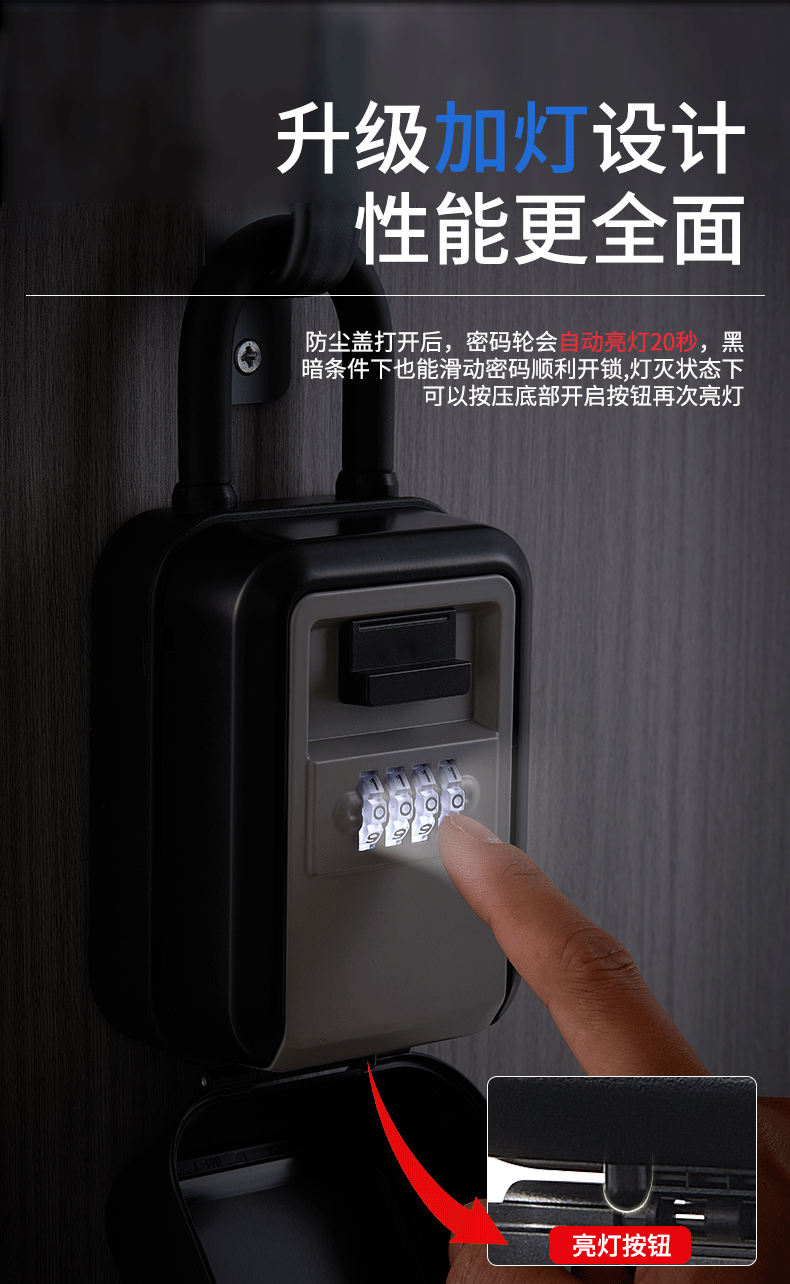 Password Key Box Decoration for Outdoor Homestays, Waterproof Alloy with Light, No-Drill Key Storage Password Lock Box