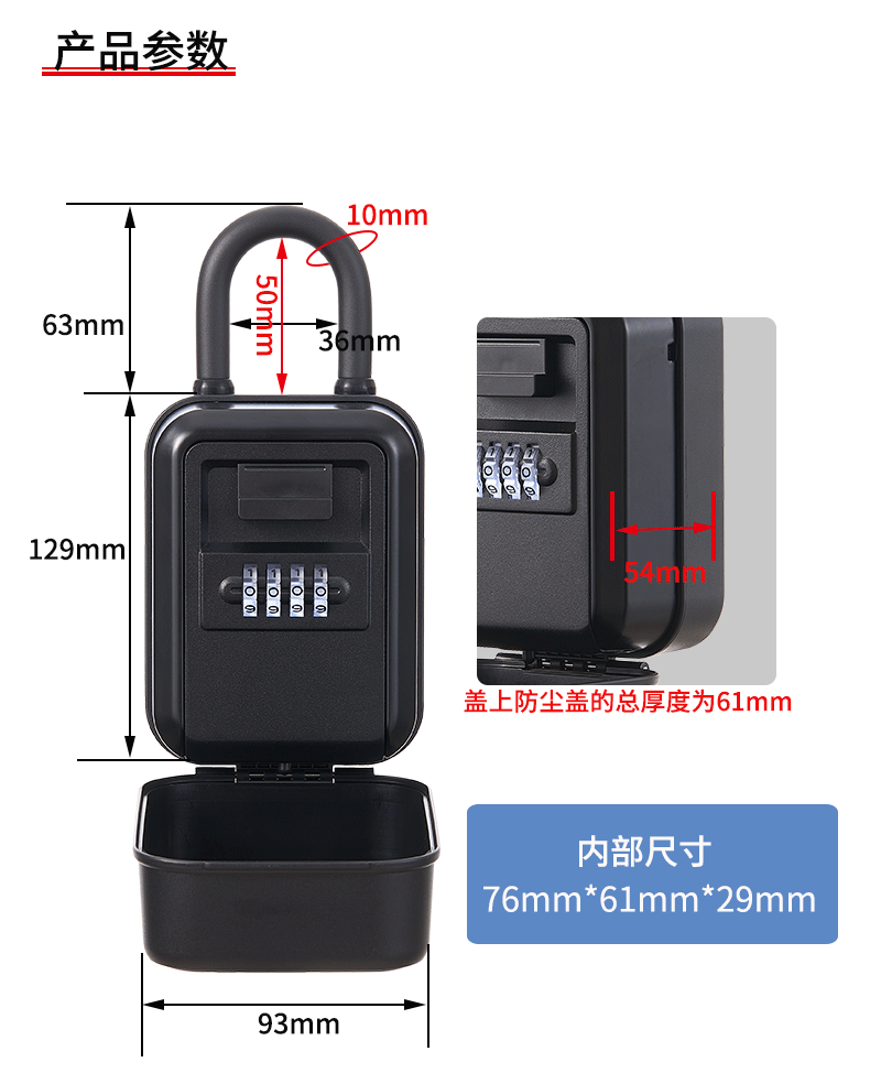 | Lock Body Size (Length × Width × Thickness) | 129 X 93 X 61 mm |