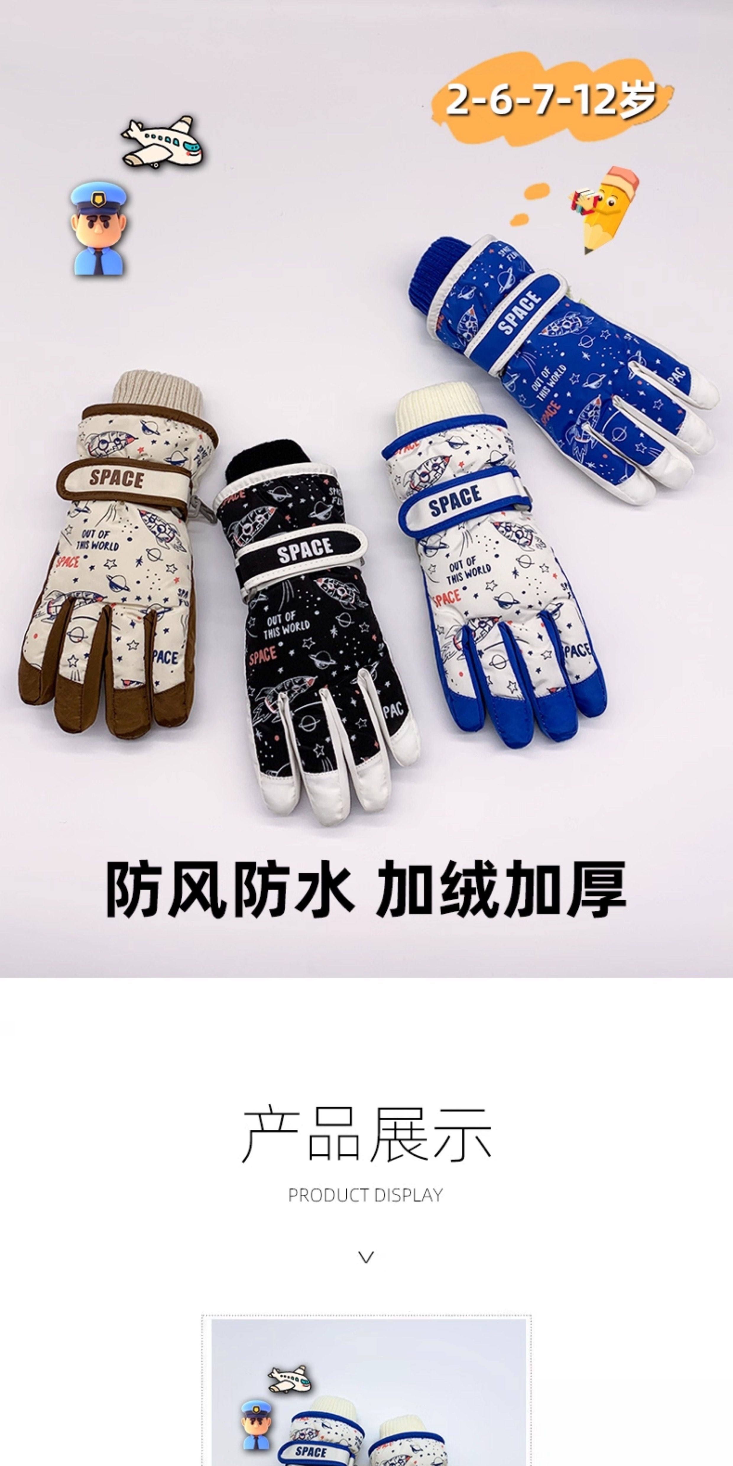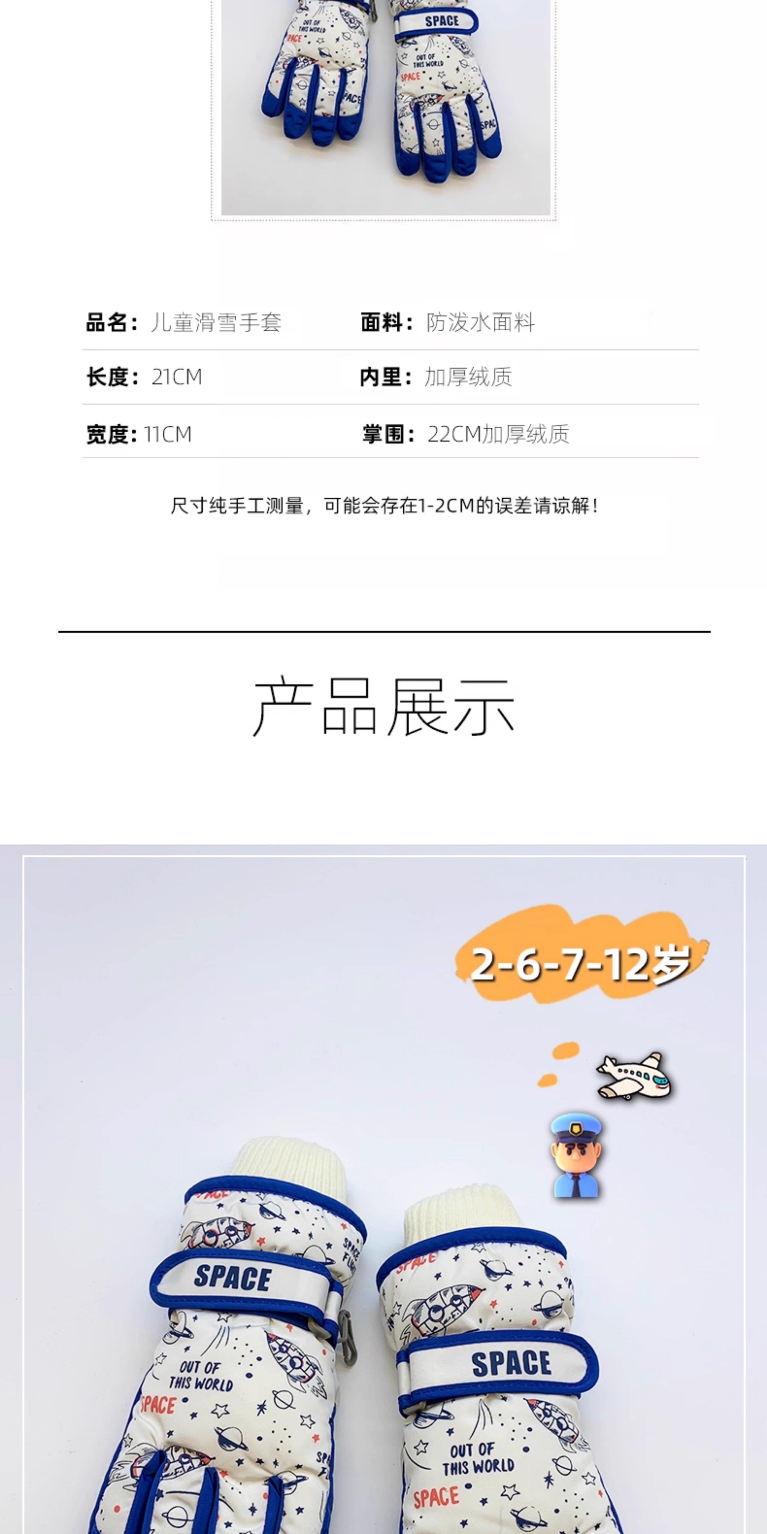 Winter Children's Ski Gloves for Boys, Fleece-Lined, Warm, Cold-Proof, Frost-Proof, for Elementary School Students, Girls, Cycling, Playing in the Snow, Water-Repellent