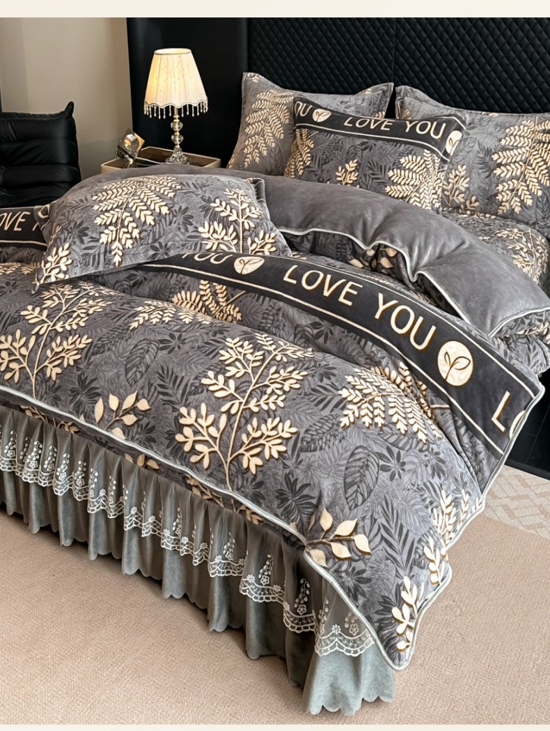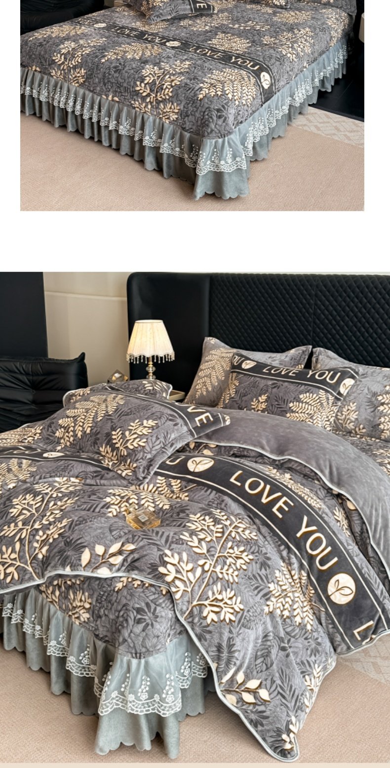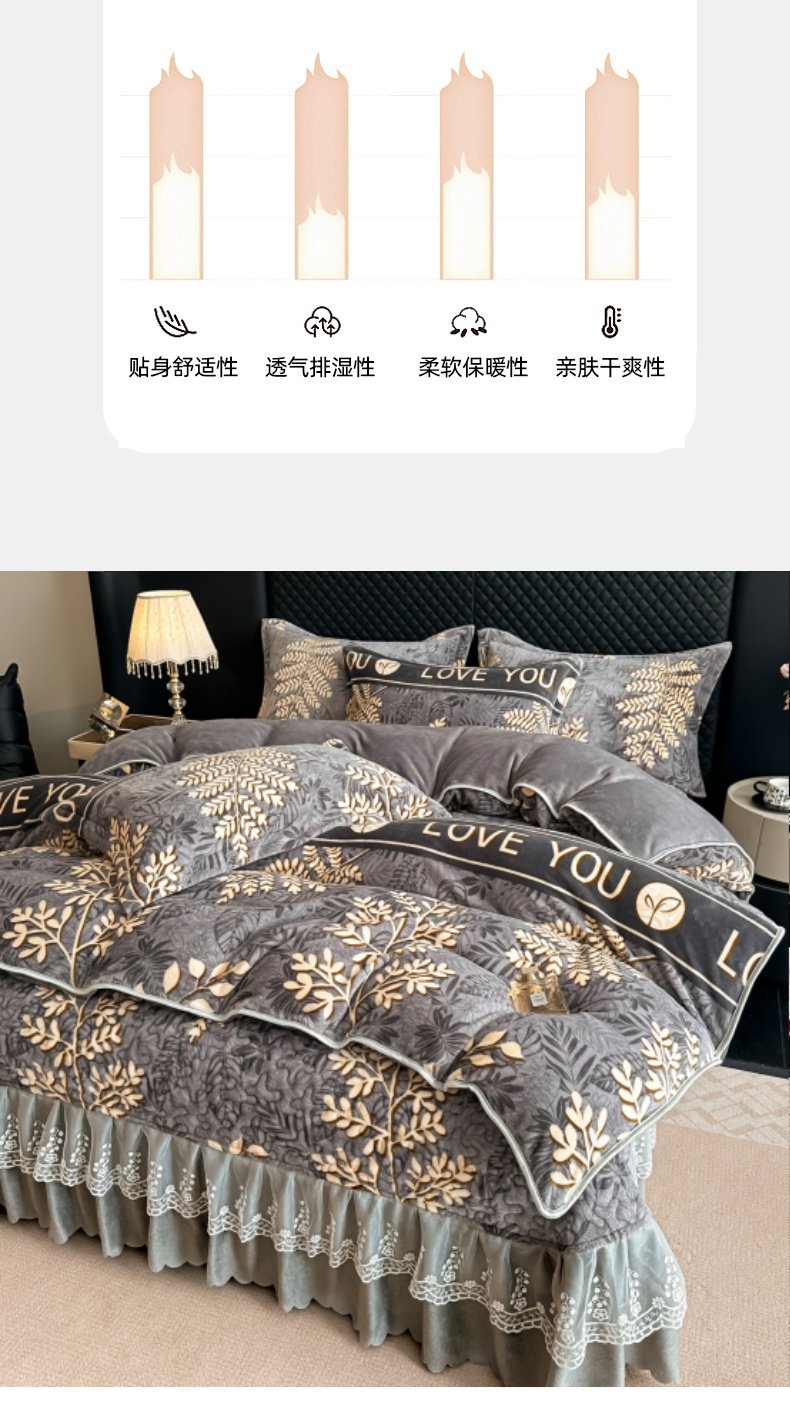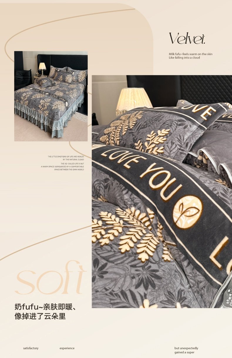 Winter Milk Velvet Four-Piece Set with Fleece and Cotton Padding, Thickened Anti-Static Coral Fleece Duvet Cover and Bed Sheet for Bed Use