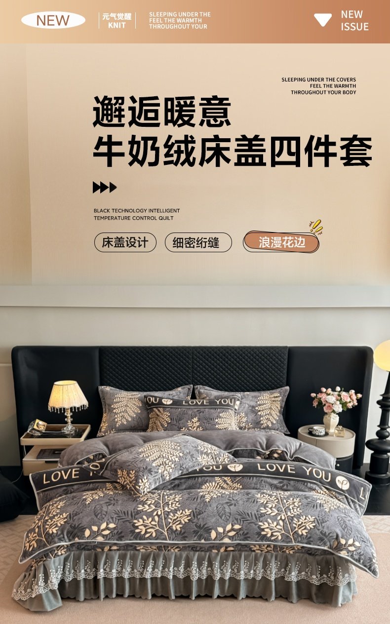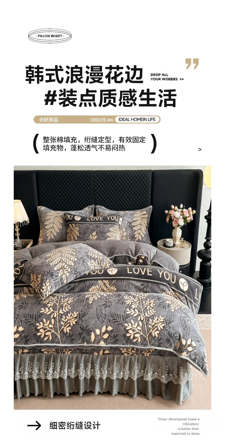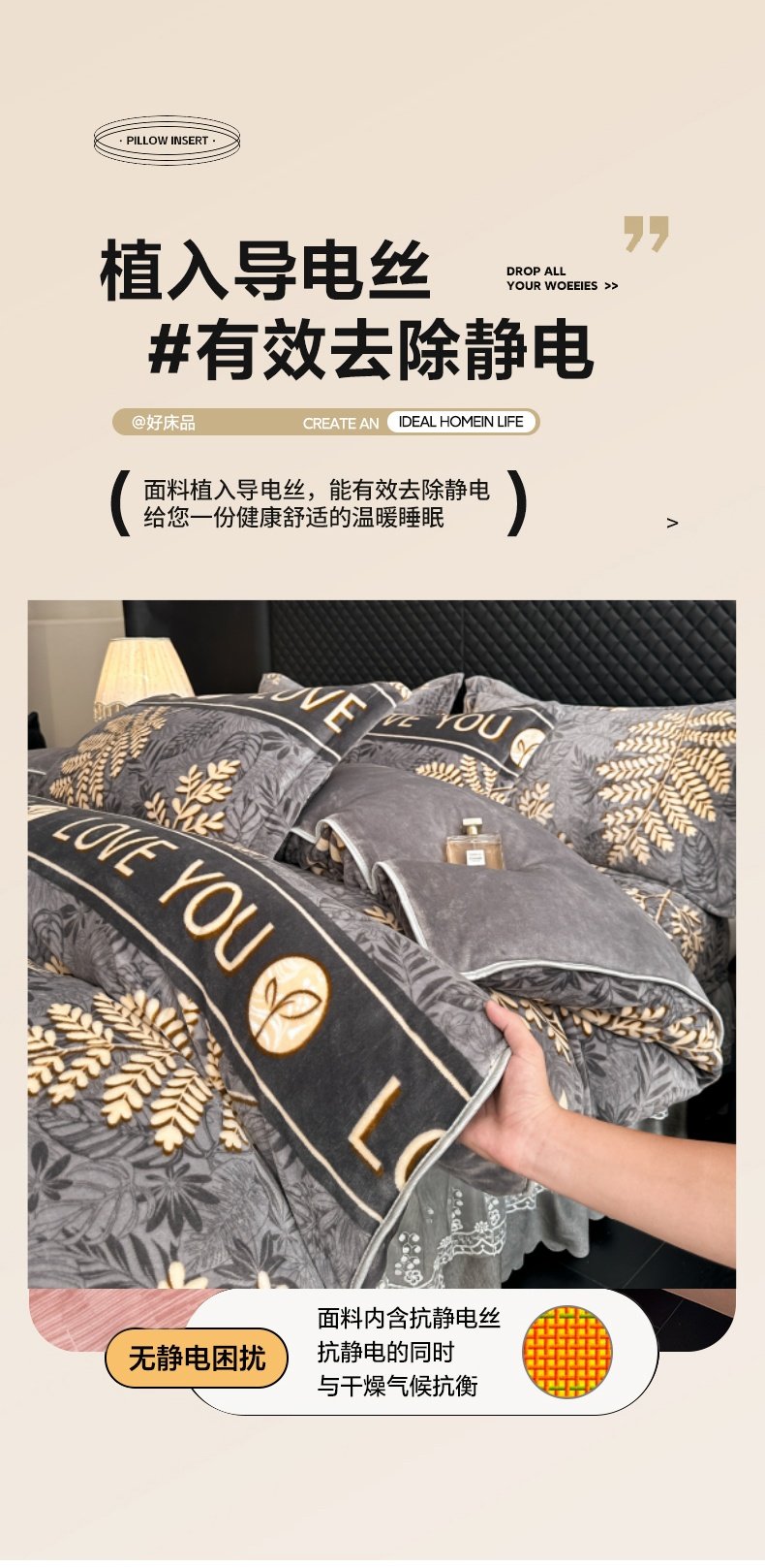 Winter Milk Velvet Four-Piece Set with Fleece and Cotton Padding, Thickened Anti-Static Coral Fleece Duvet Cover and Bed Sheet for Bed Use