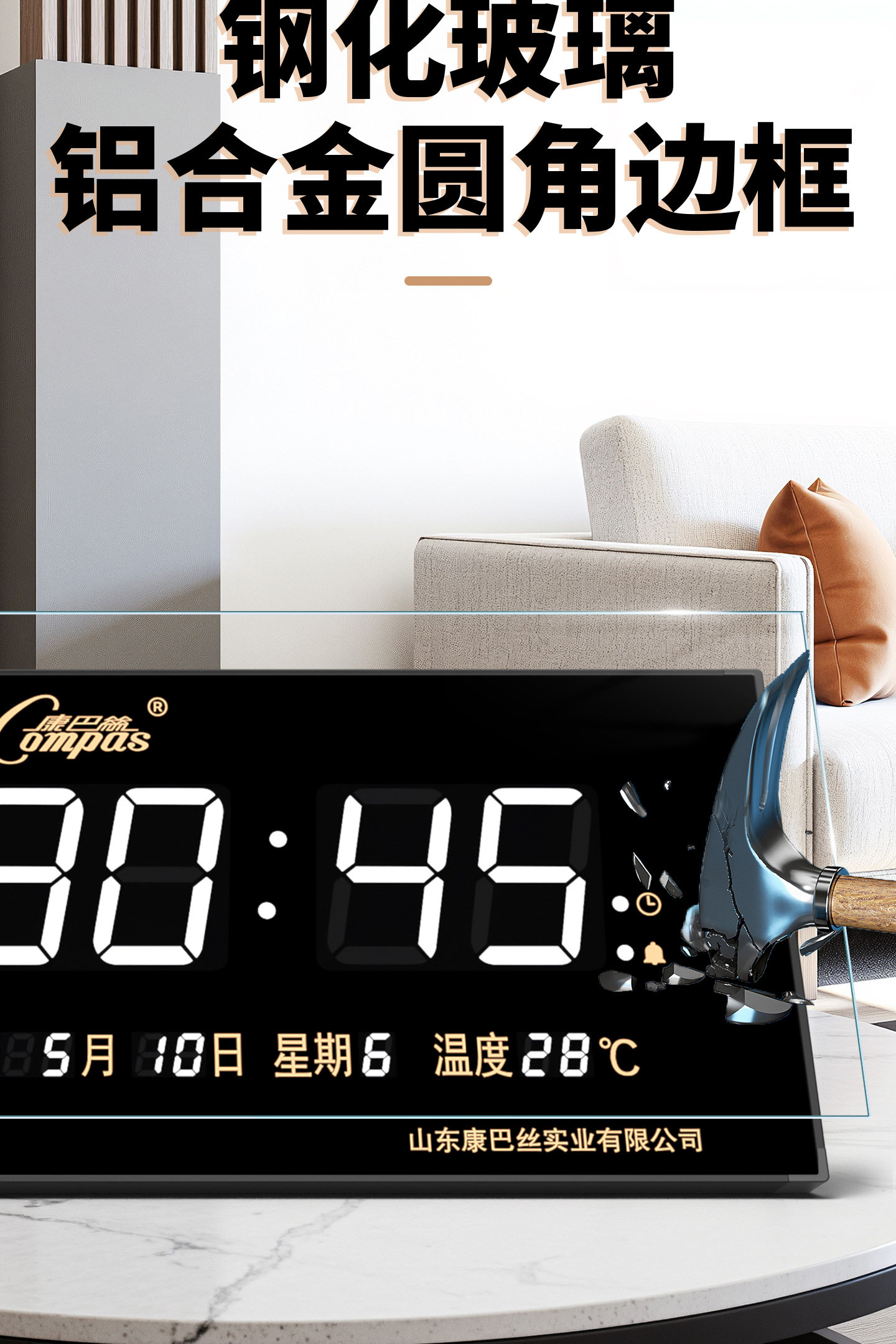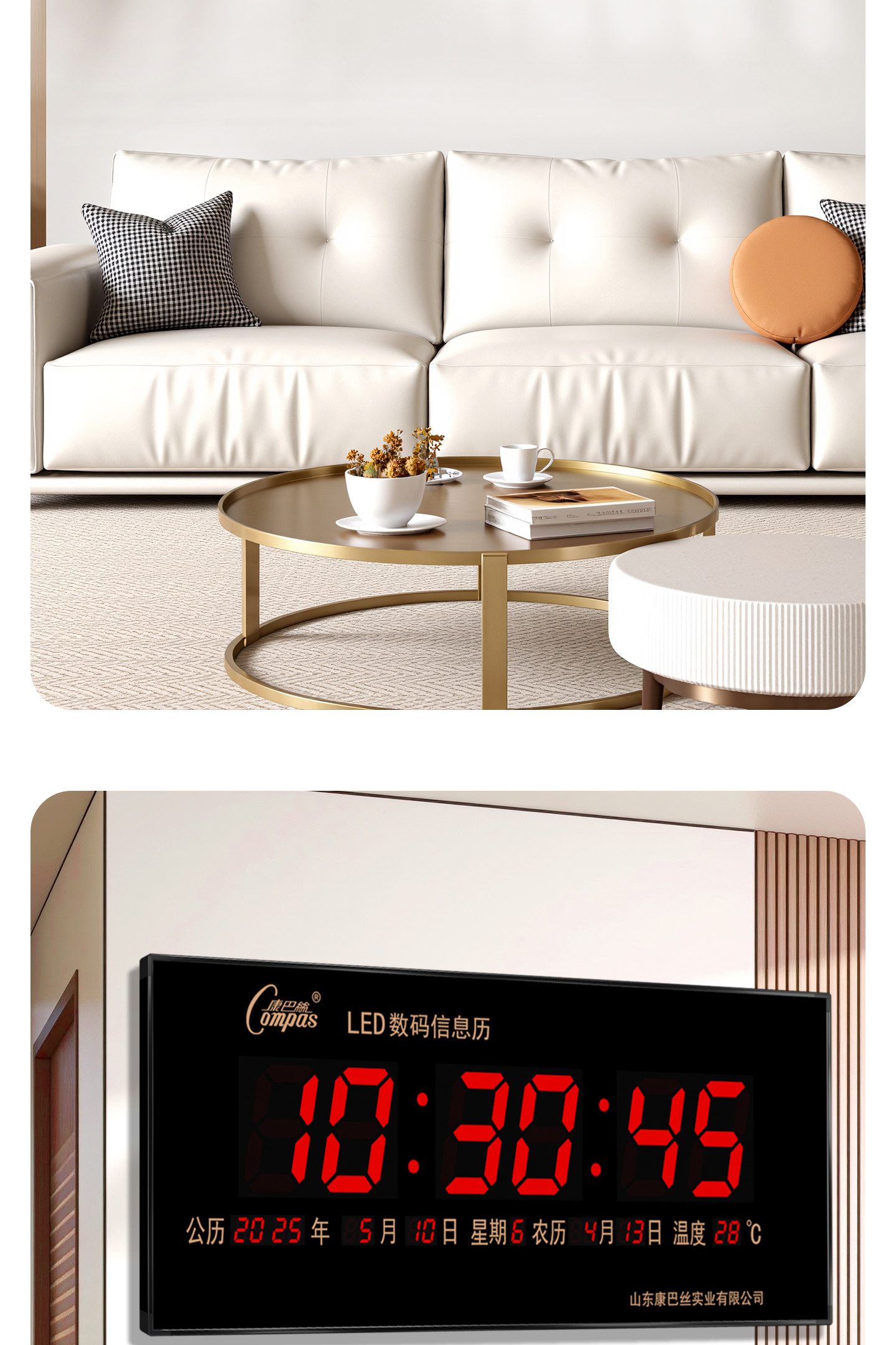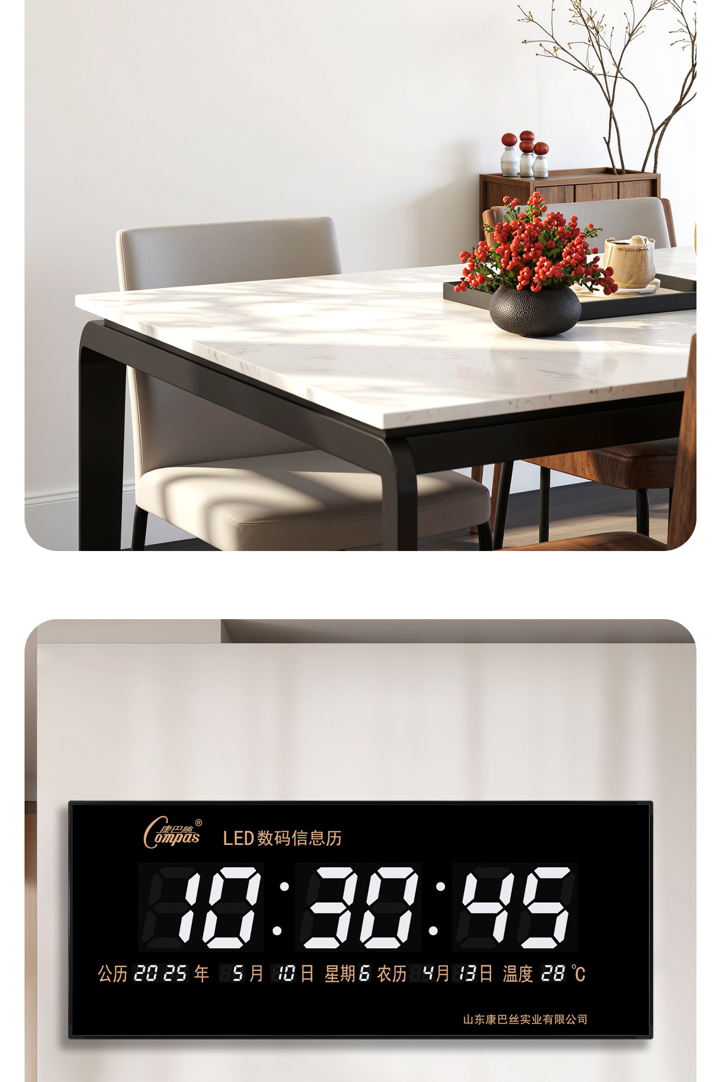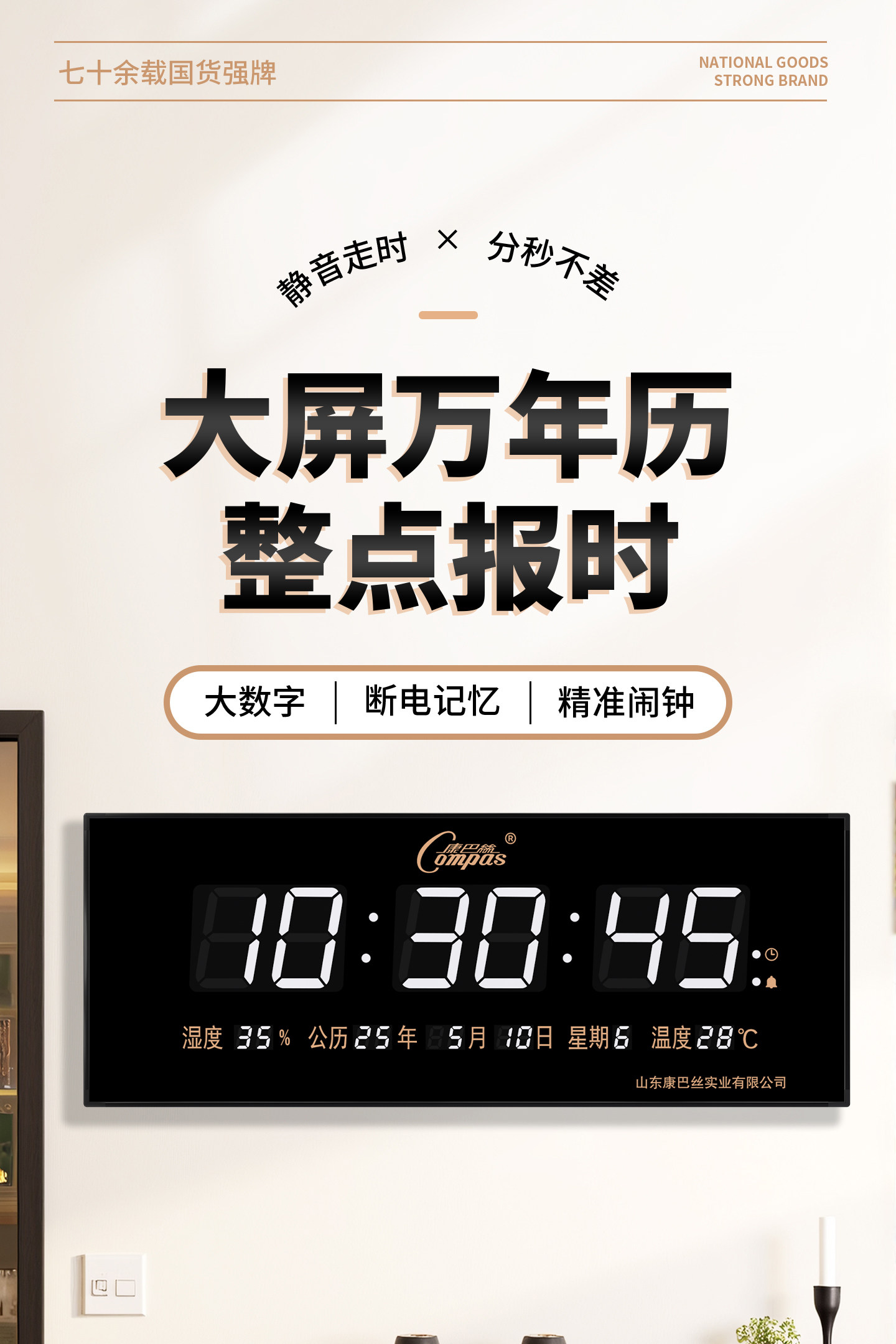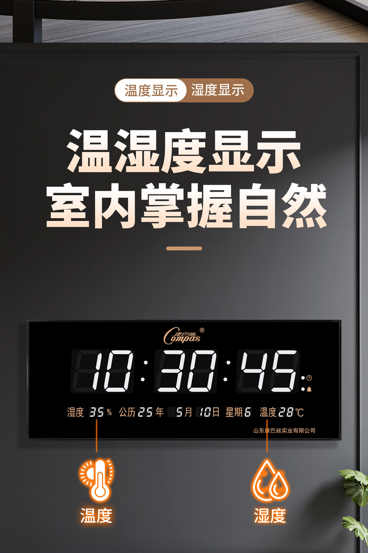 Compass Digital Perpetual Calendar Living Room Electronic Clock Calendar with Night Light New Wall Clock Home Ultra-Thin Wall-Mounted Clock