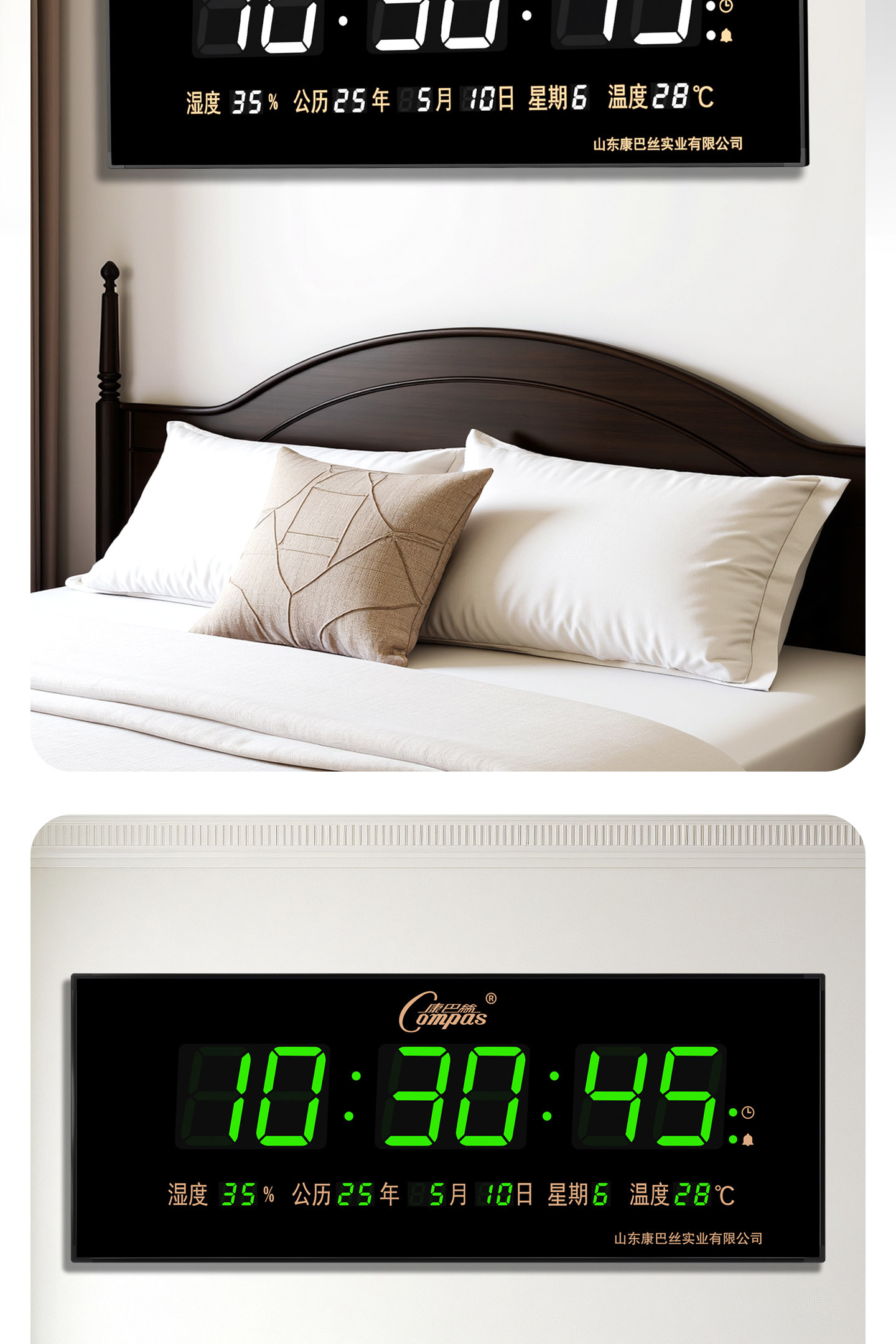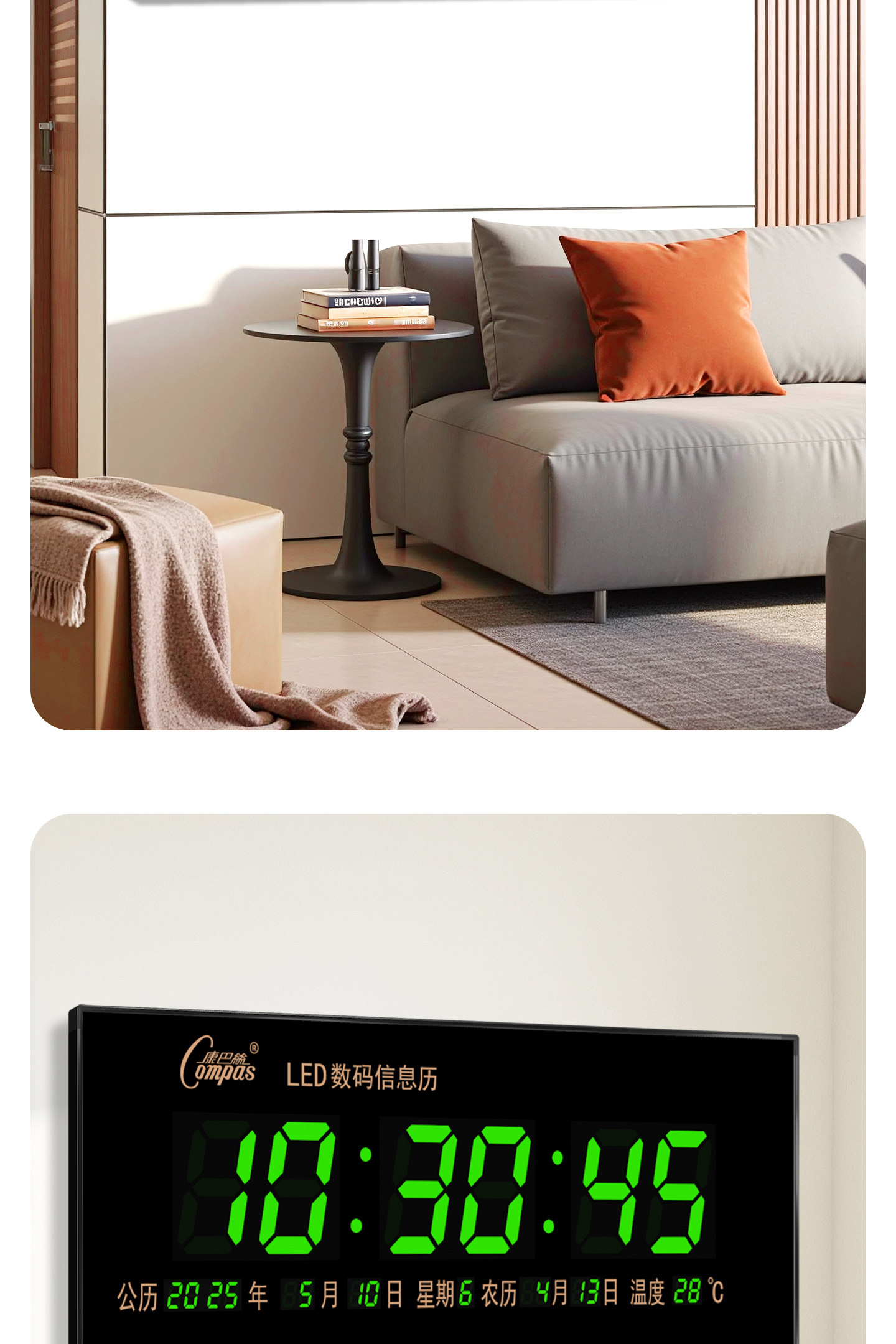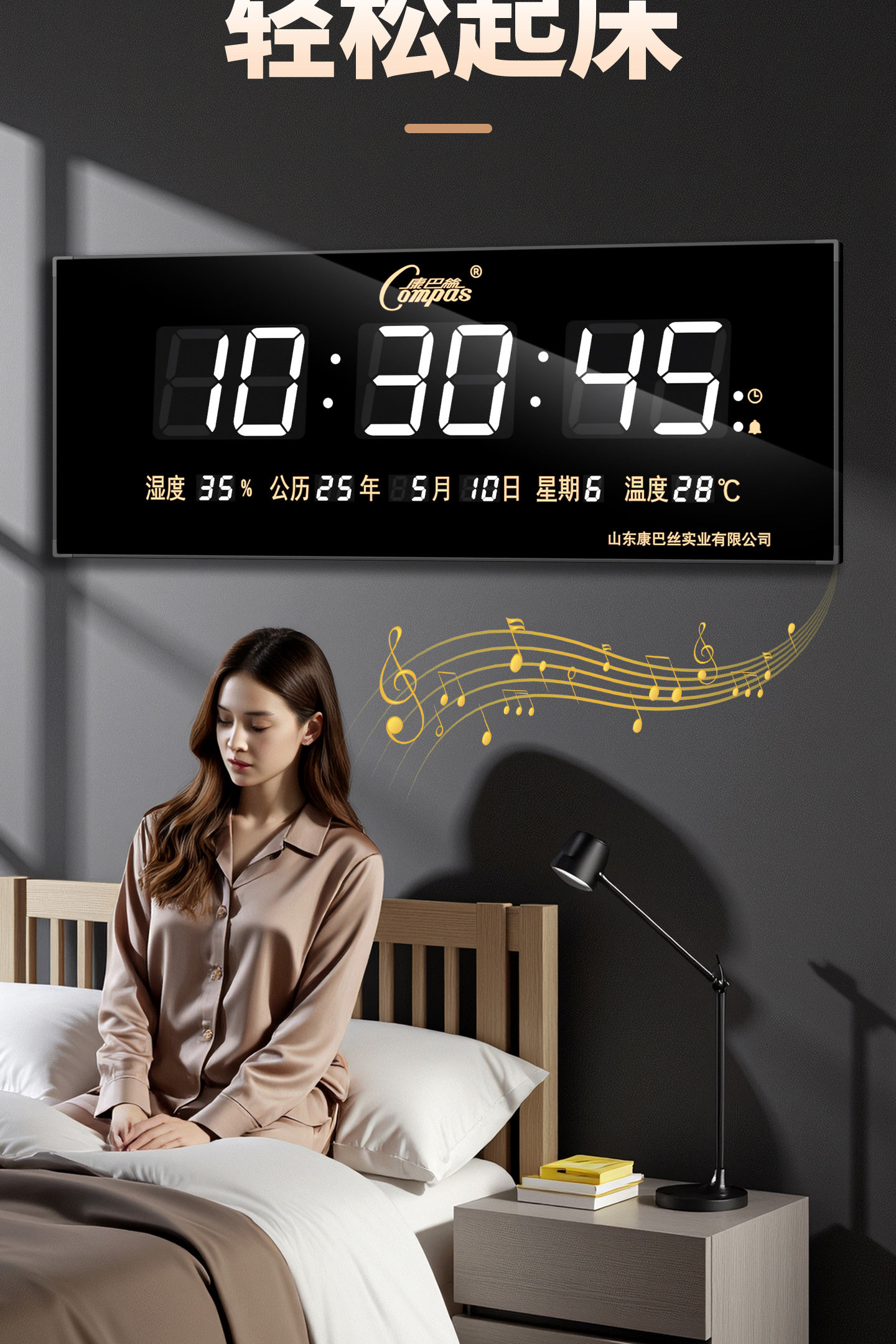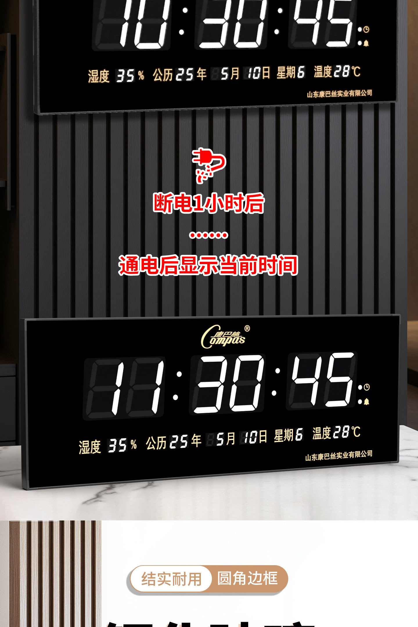 Compass Digital Perpetual Calendar Living Room Electronic Clock Calendar with Night Light New Wall Clock Home Ultra-Thin Wall-Mounted Clock