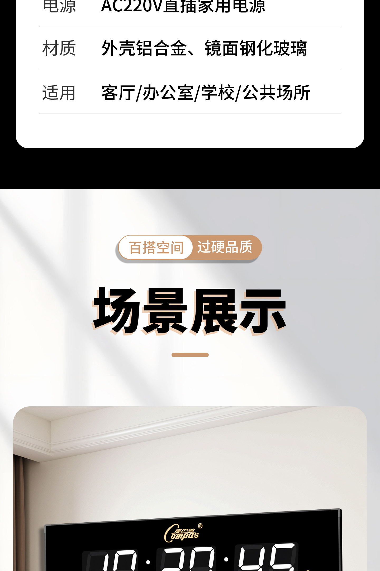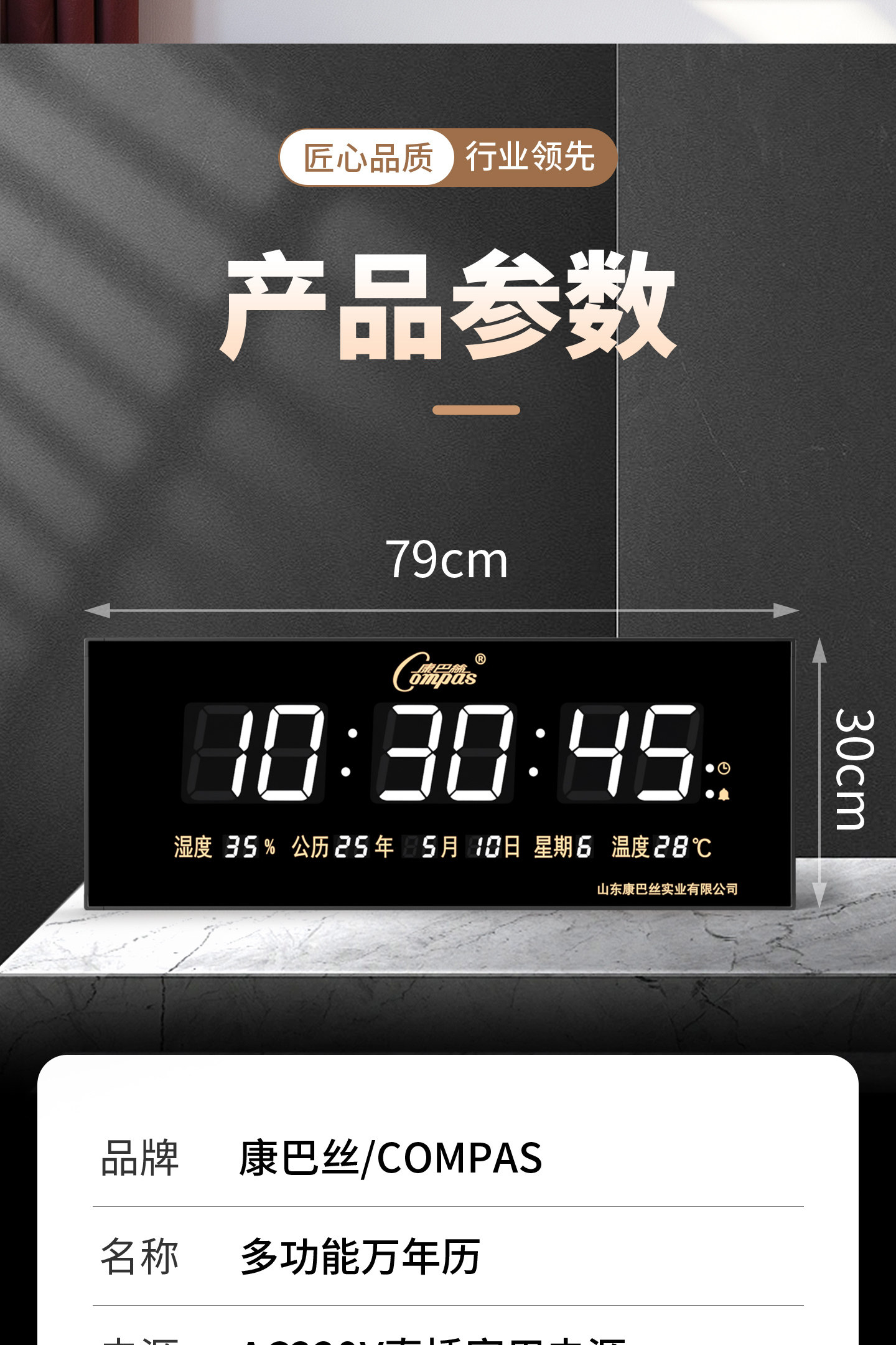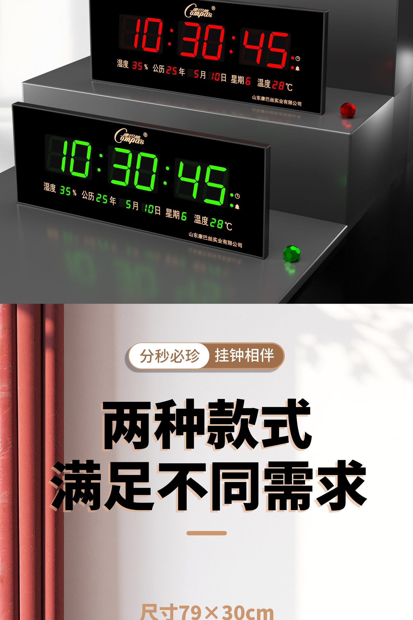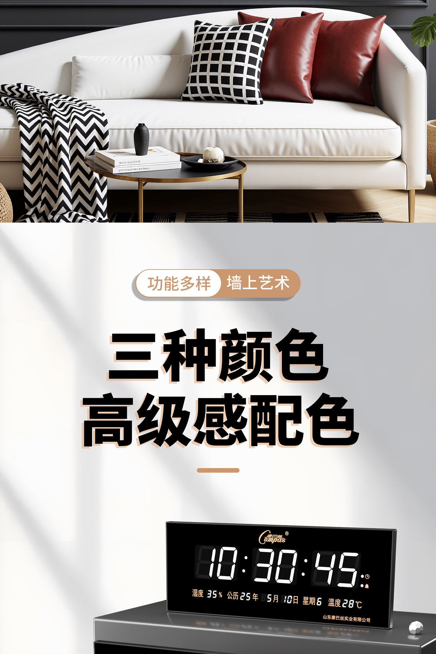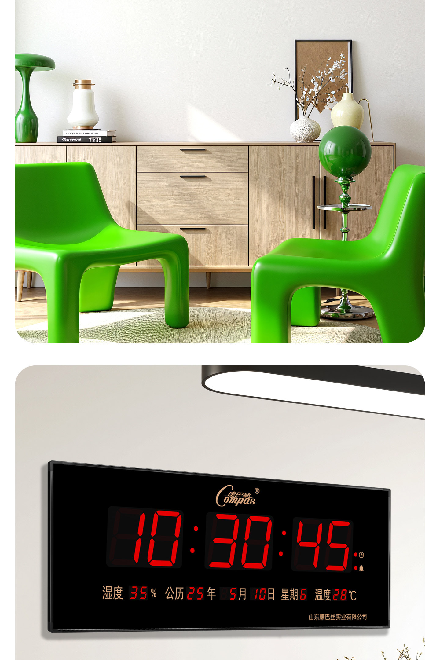 Compass Digital Perpetual Calendar Living Room Electronic Clock Calendar with Night Light New Wall Clock Home Ultra-Thin Wall-Mounted Clock