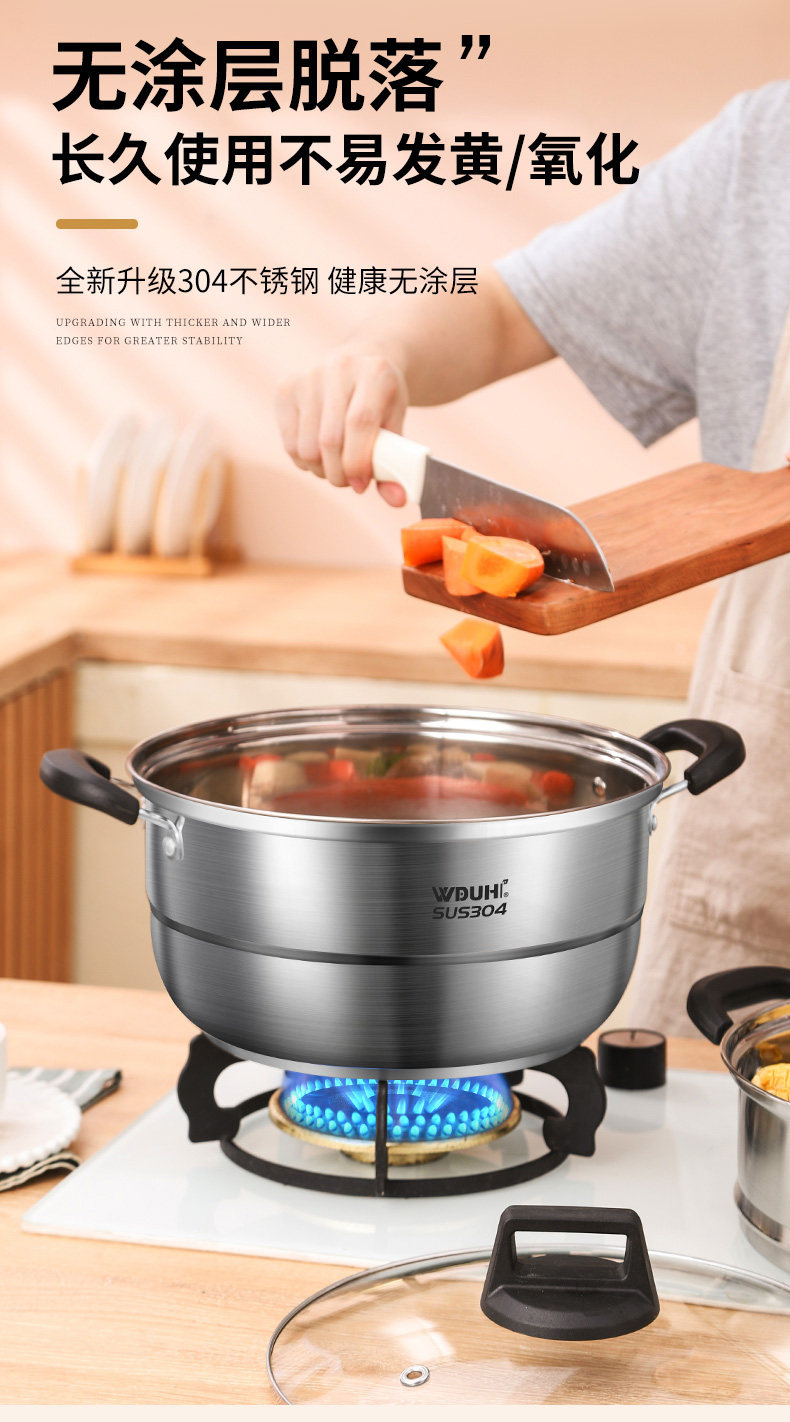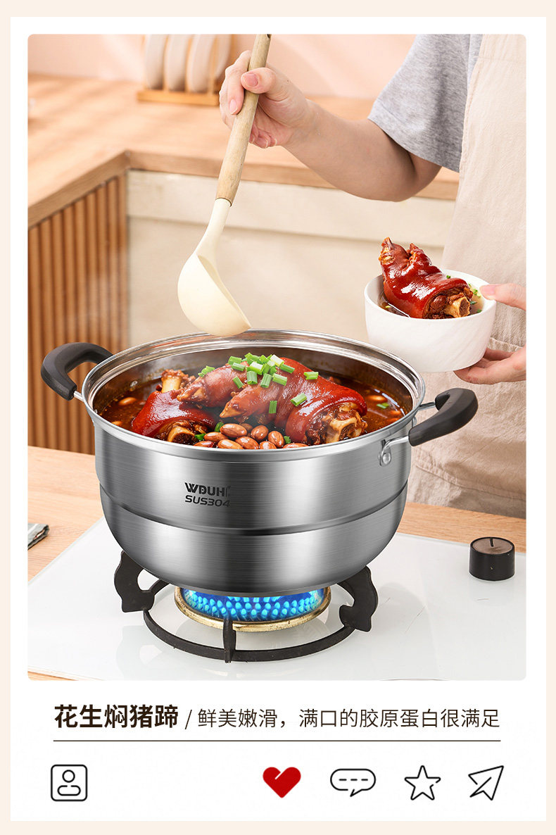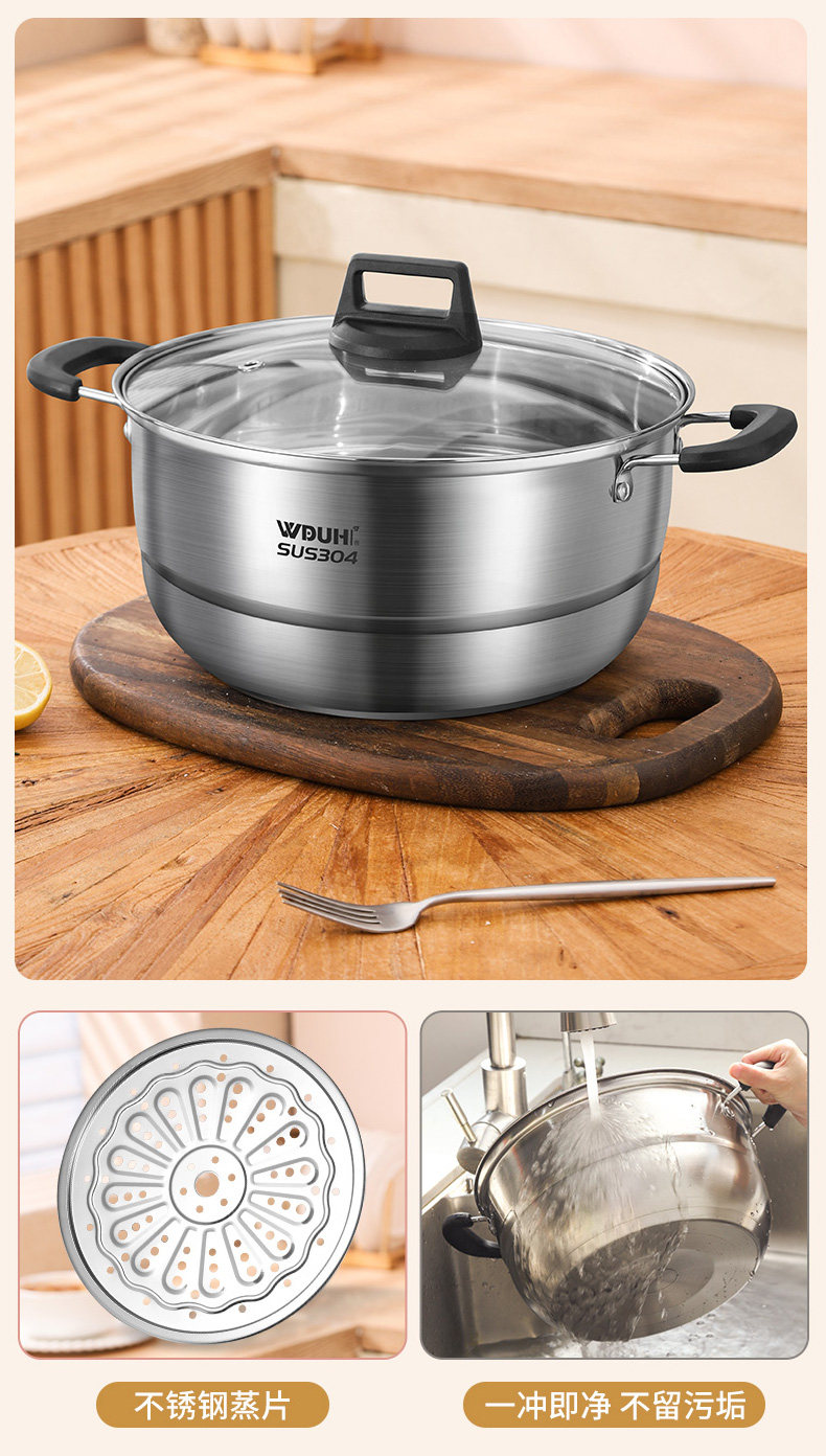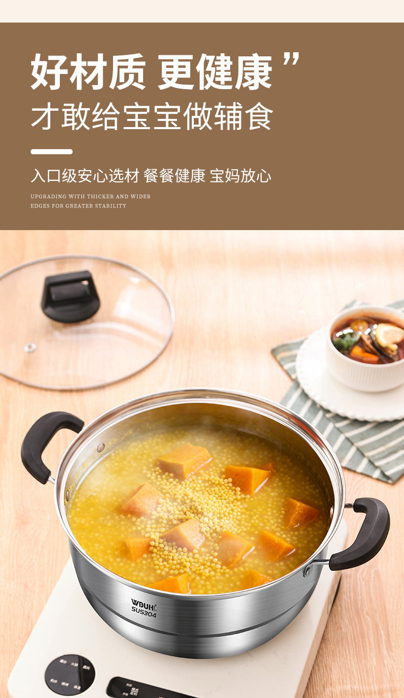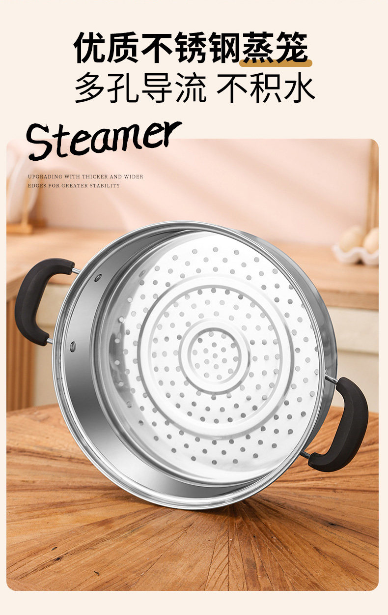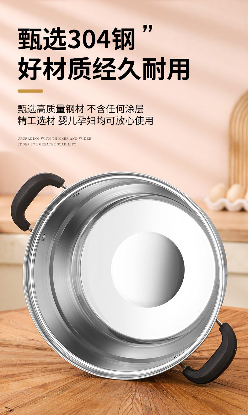 Stainless Steel Soup Pot for Home Use, Thickened Large Capacity Porridge Pot, Steaming and Stewing Pot, Suitable for Gas Stoves and Induction Cookers, Small Steamer