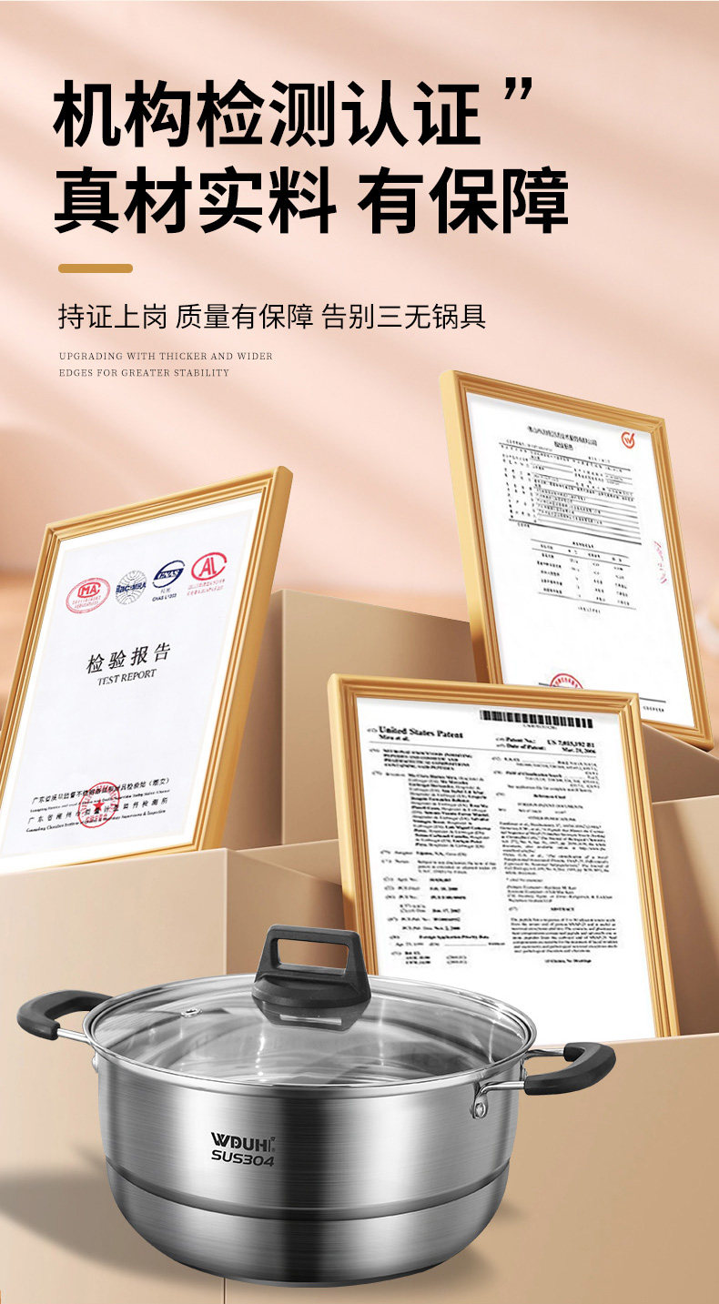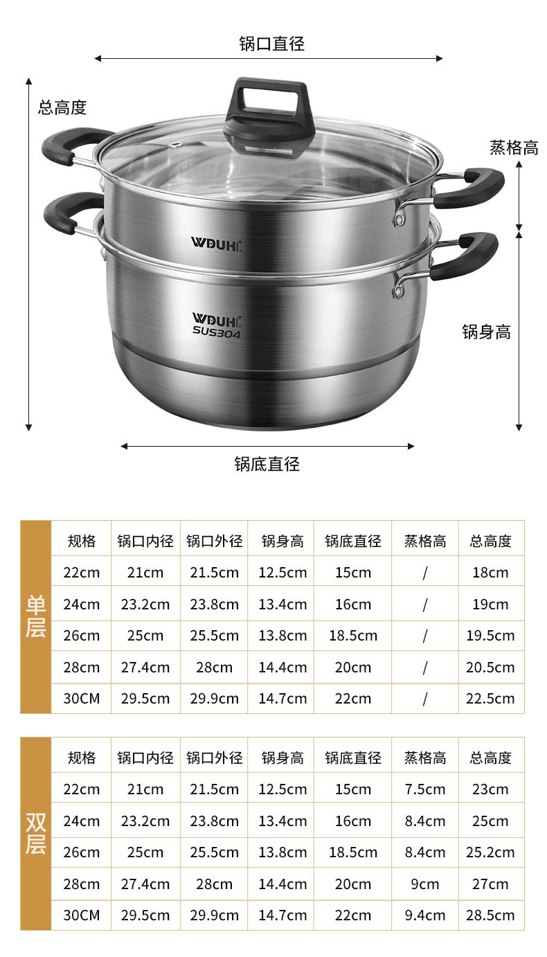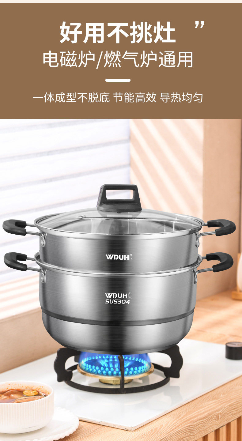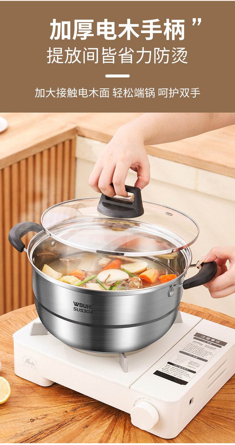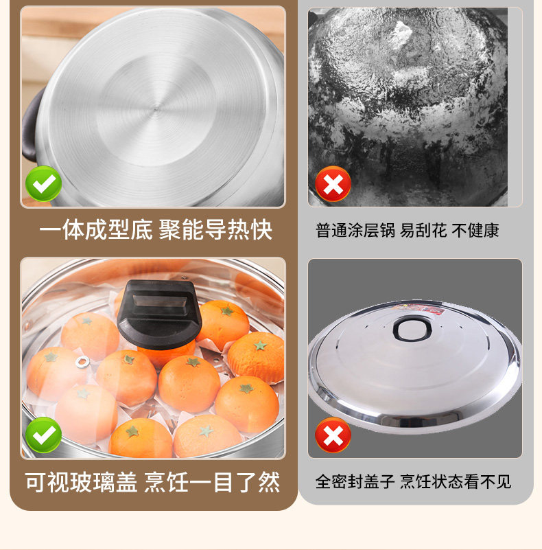 Stainless Steel Soup Pot for Home Use, Thickened Large Capacity Porridge Pot, Steaming and Stewing Pot, Suitable for Gas Stoves and Induction Cookers, Small Steamer