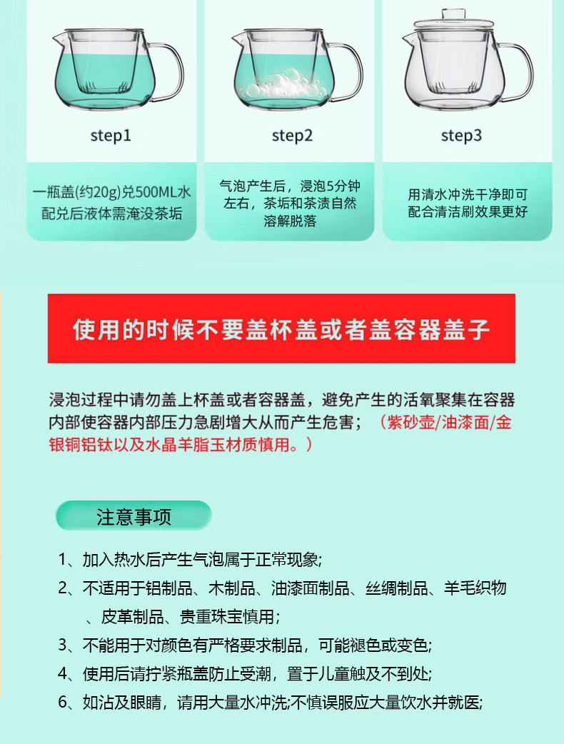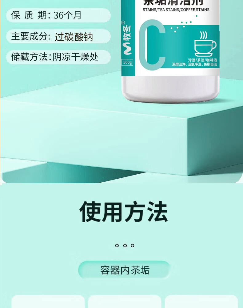 Tea Stain Remover, Multi-Purpose Water Cup, Tea Cup, Tea Set, Water Scale Remover, Active Oxygen Powerful Descaling Agent Powder