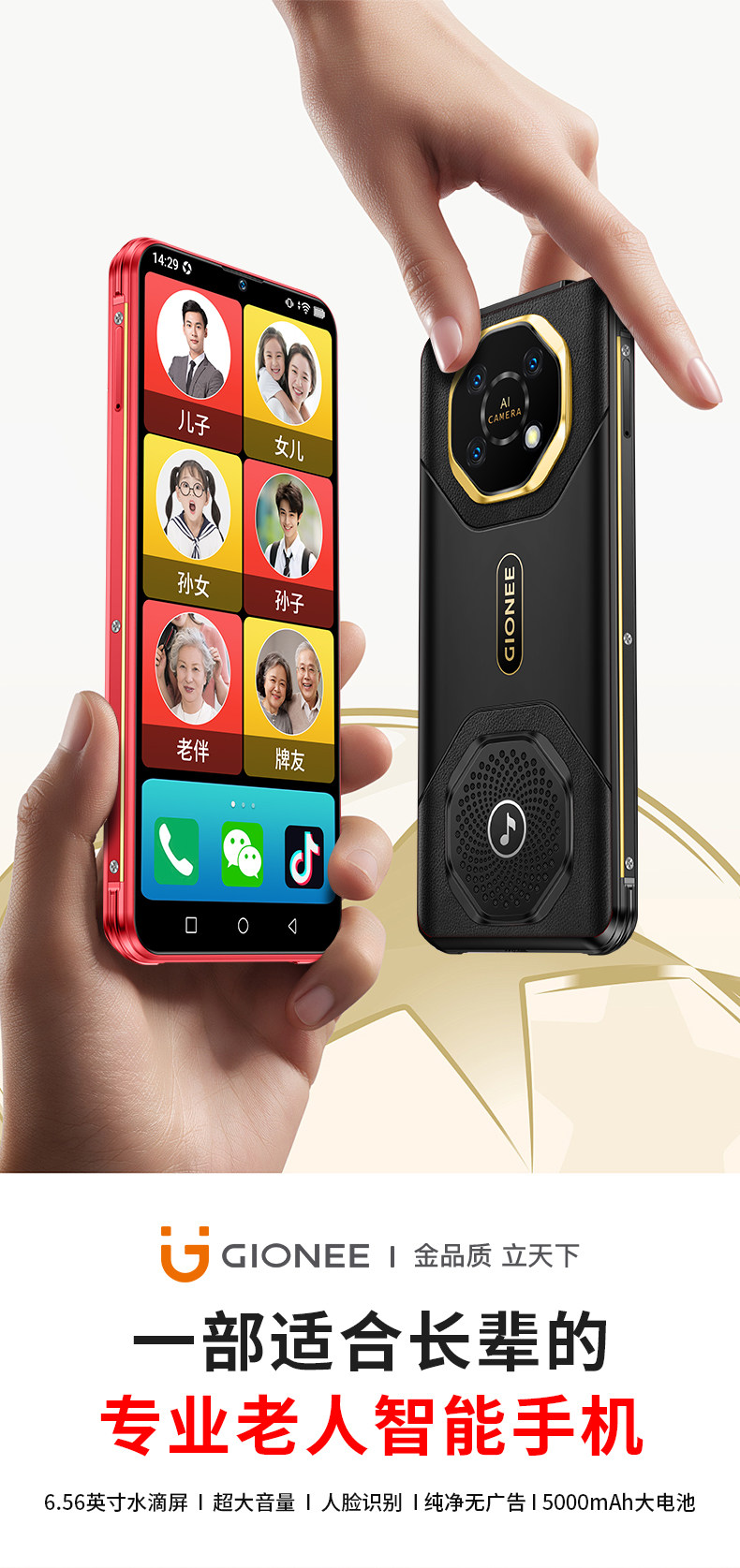 2025 New Model Gionee Rugged Smartphone for Seniors, Ultra-Long Standby, 4g Full Network, Student Price, Elderly Phone, Suitable for Seniors, Large Font, Large Screen, Loud Sound, Genuine Video Phone for Middle-Aged and Elderly