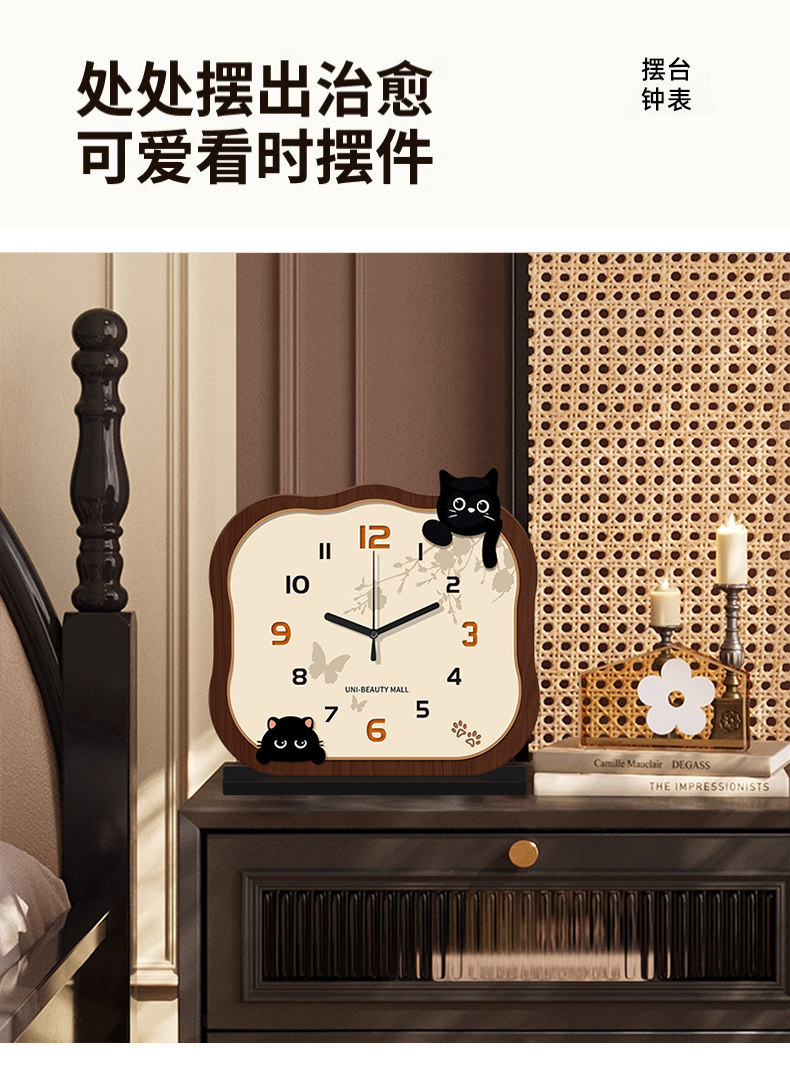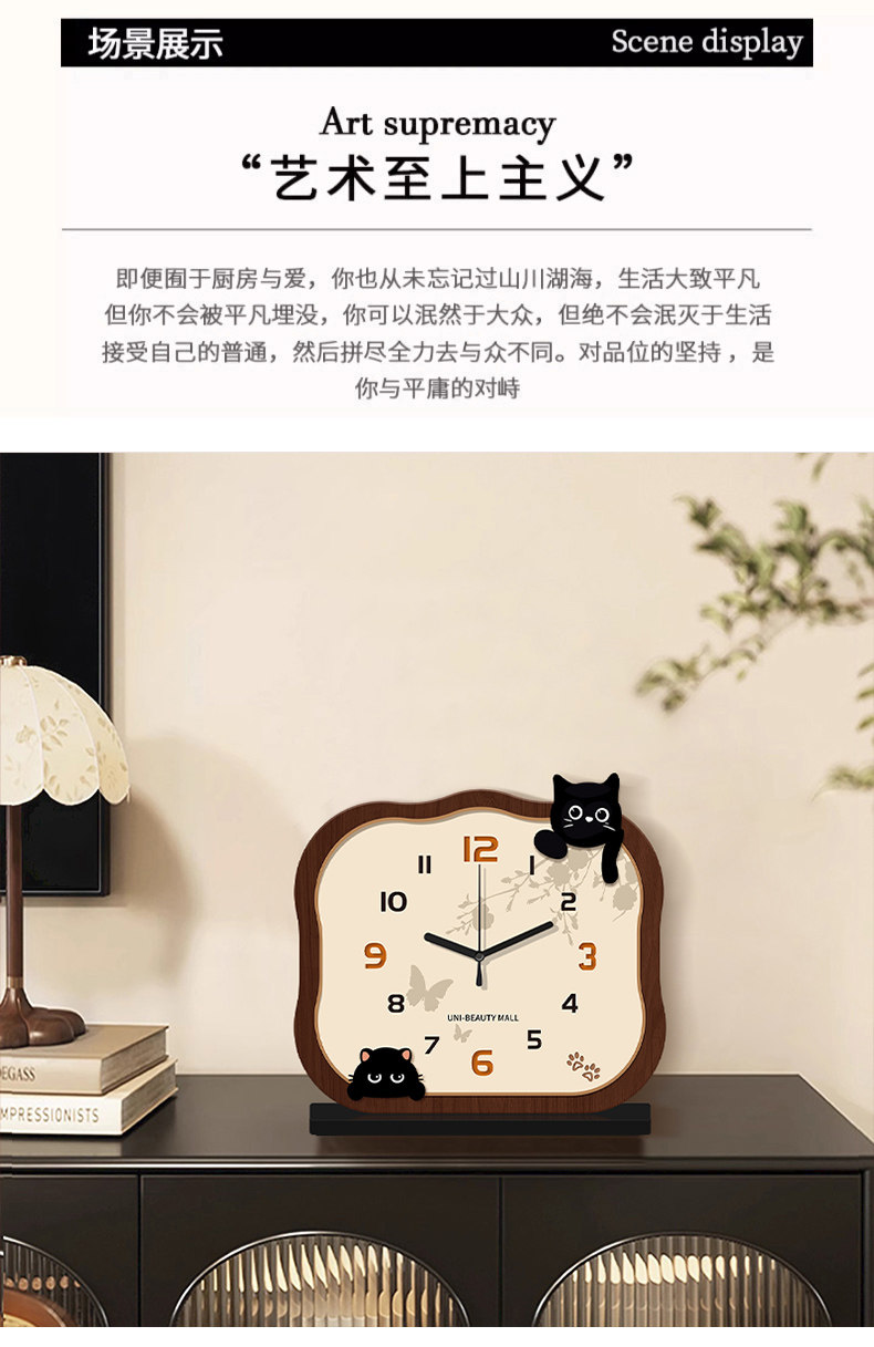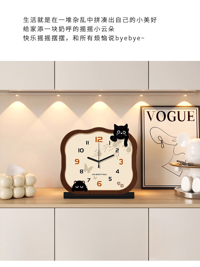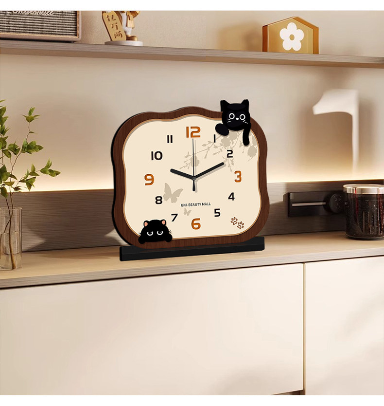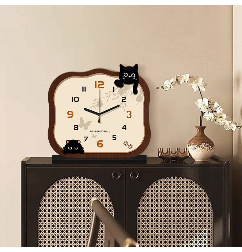 2025 New Cat-Shaped Desk Clock, Living Room Clock, Creative Clock, Desktop Clock, Home Use, Light Luxury, High-End Clock