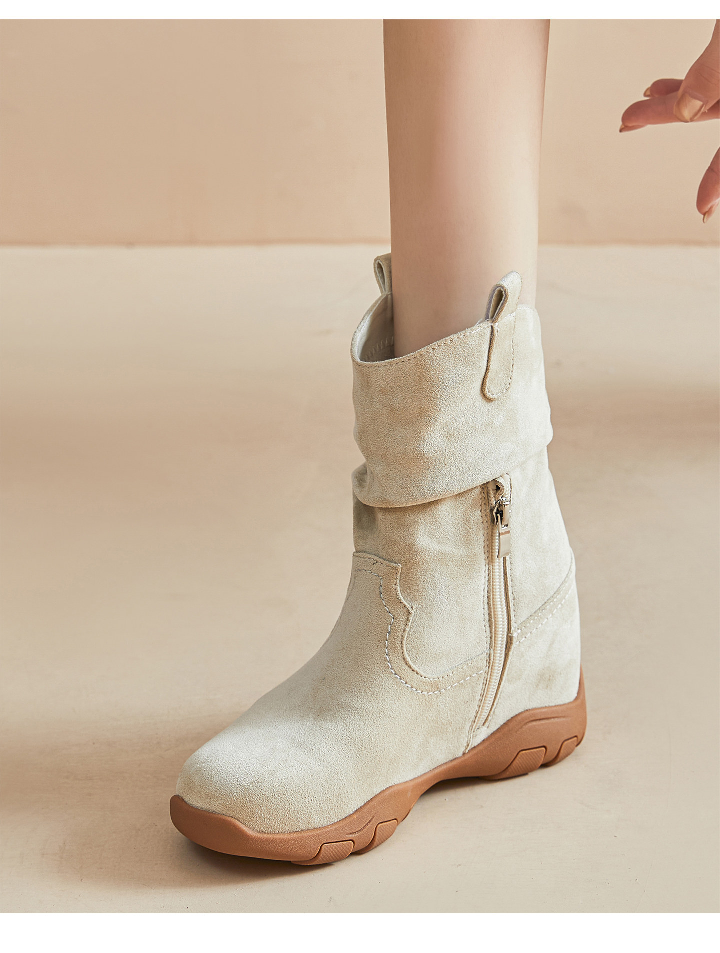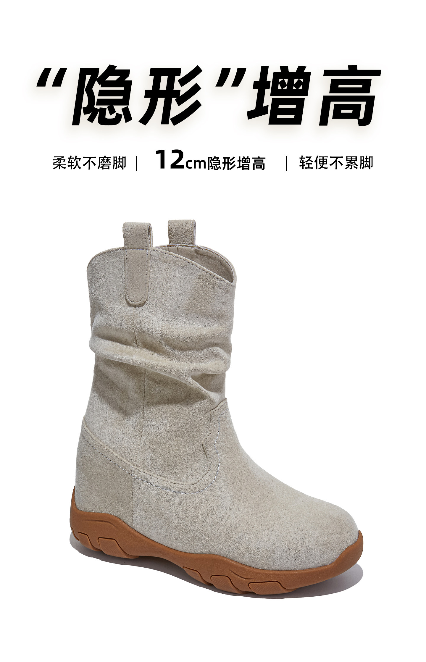 Inner Height Increase 12cm Martin Boots for Women, 2025 Autumn and Winter New Style Western Slouch Boots, Versatile High-Heeled Boots for Petite Women