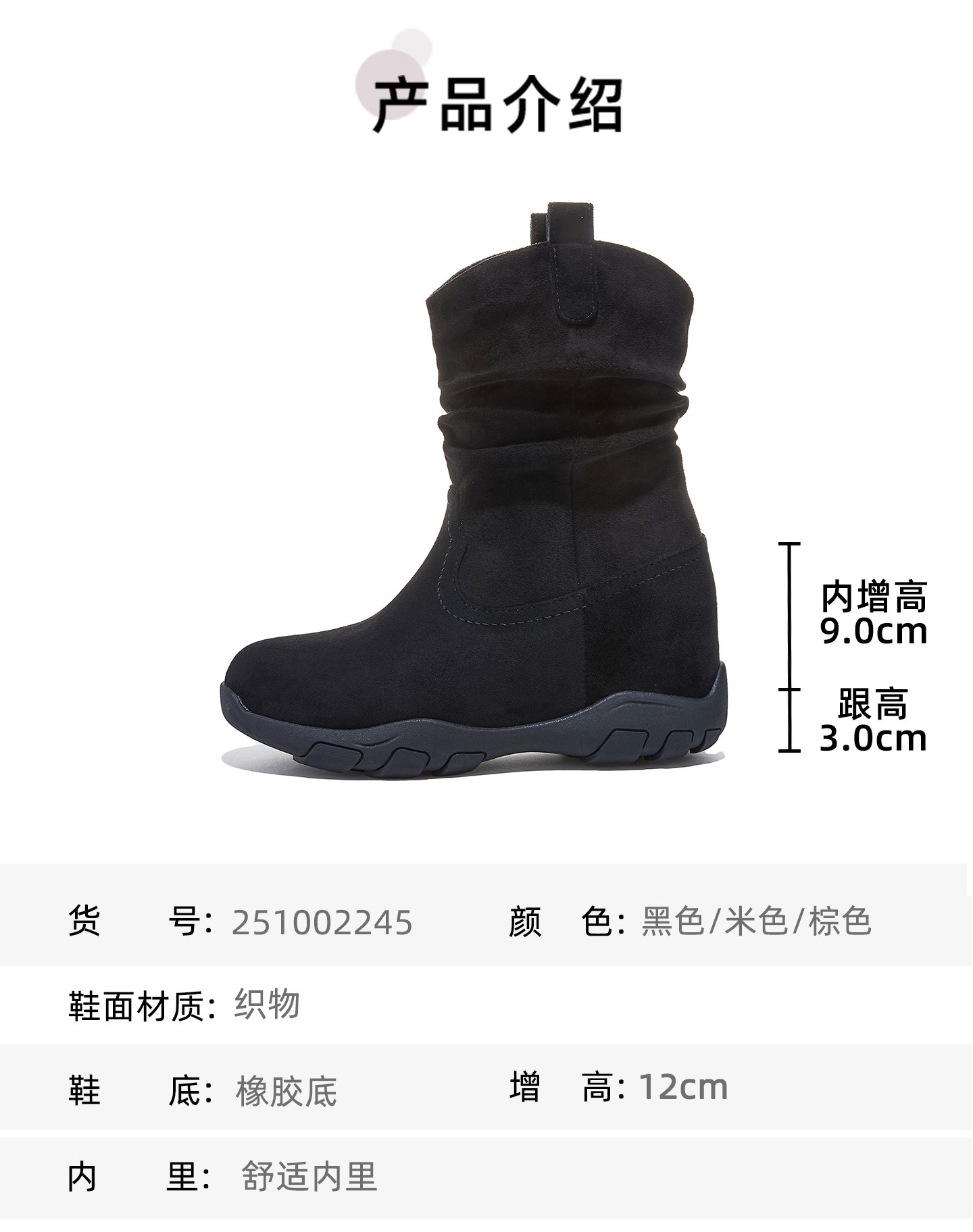 | Color Classification | Brown[Increase Height by 9cm],Black[Increase Height by 9cm],Beige[Increase Height by 12cm],Brown[Increase Height by 12cm] |