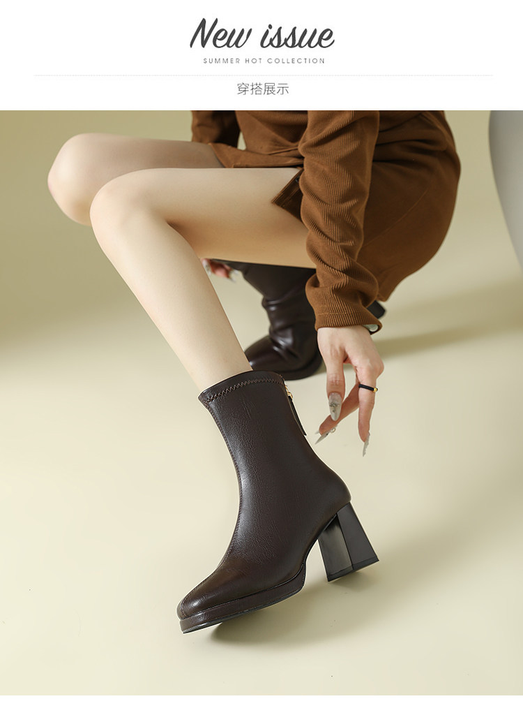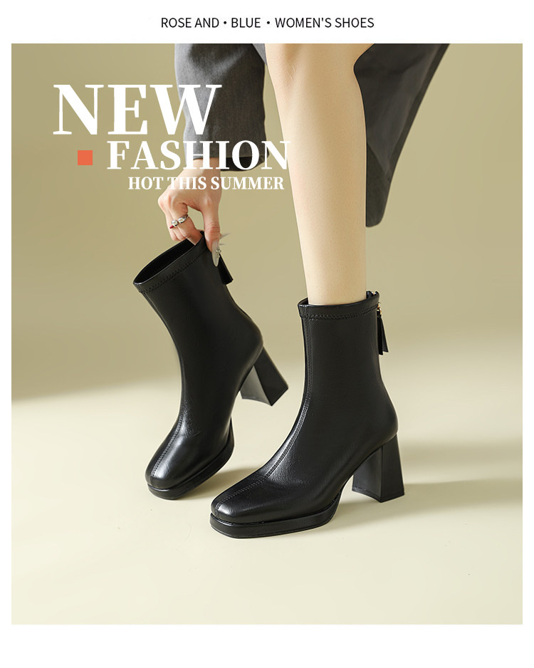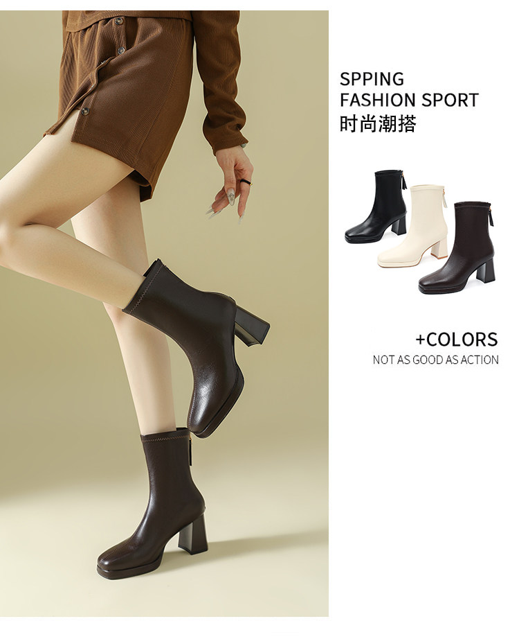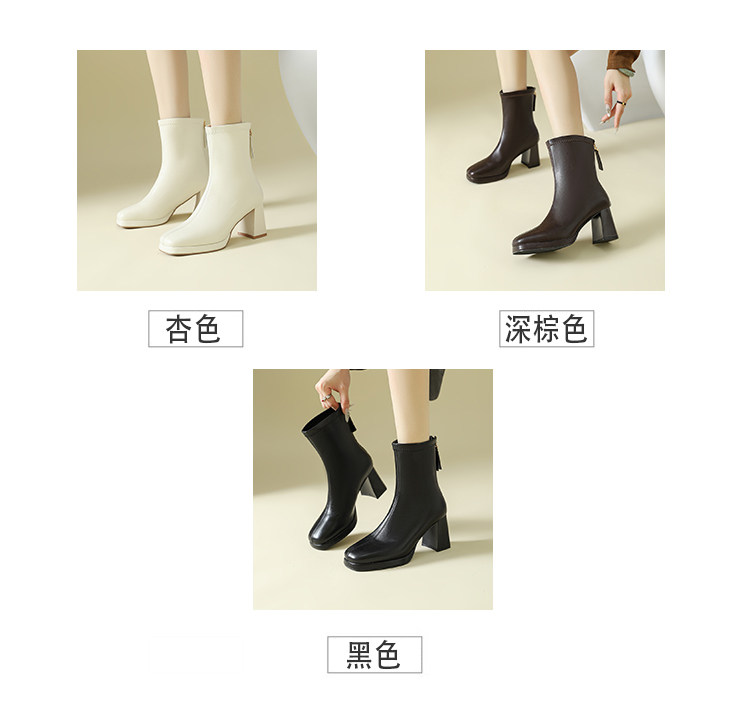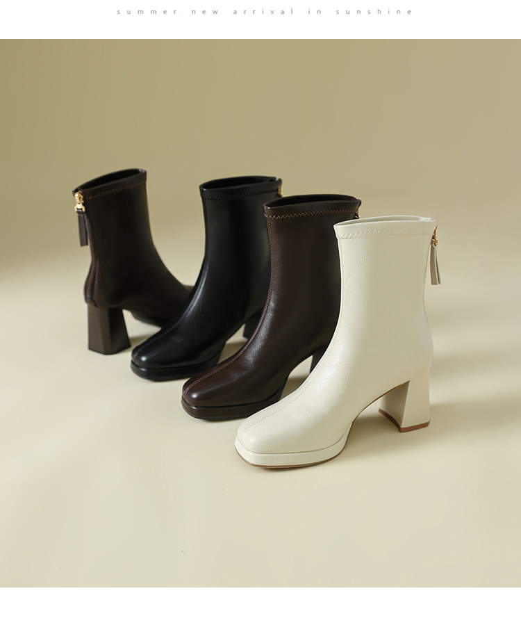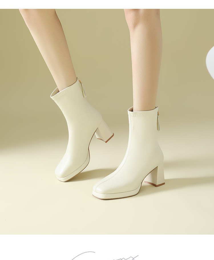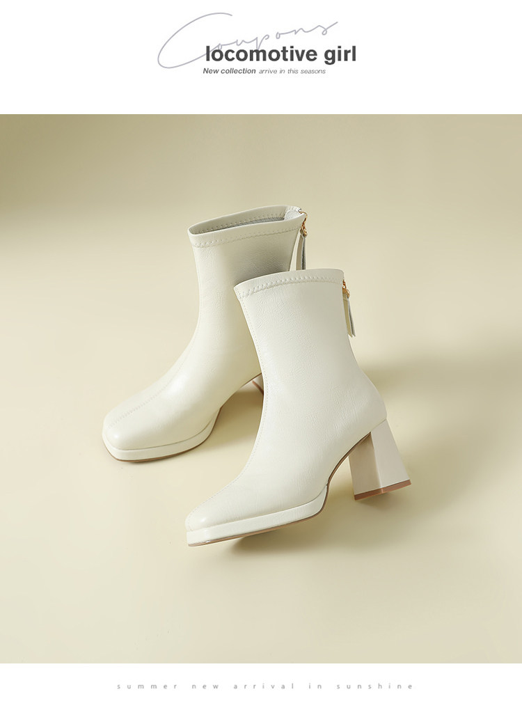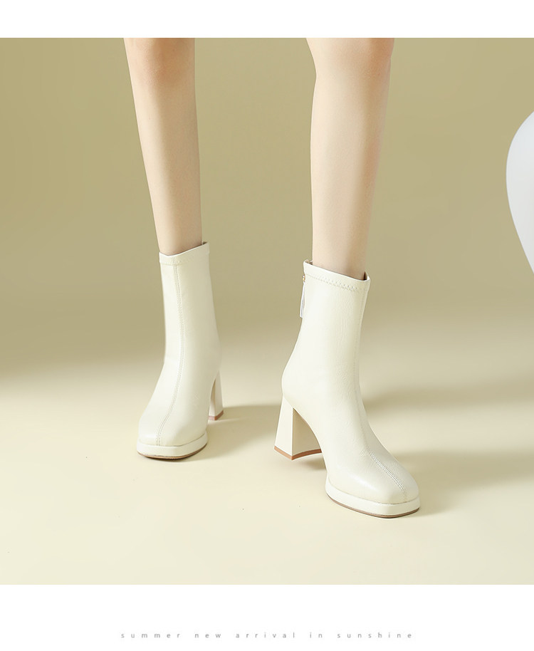 Daphne White Short Boots for Women, Chunky Heel Slim Boots, 2026 New Autumn and Winter Square Toe High Heel Martin Boots
