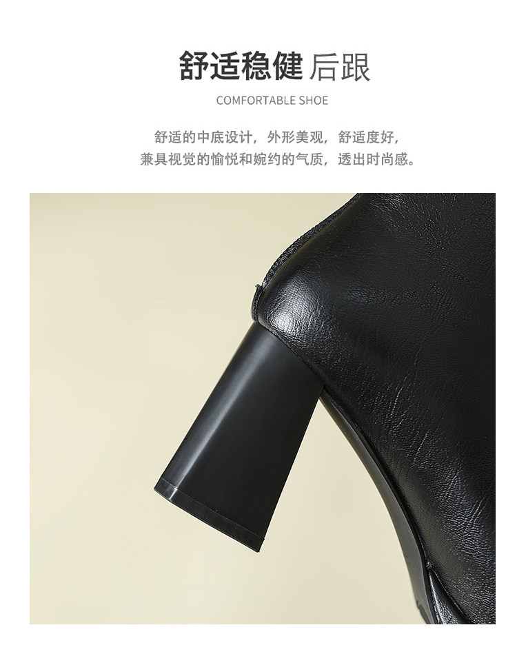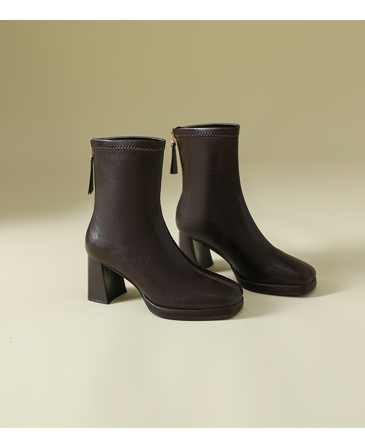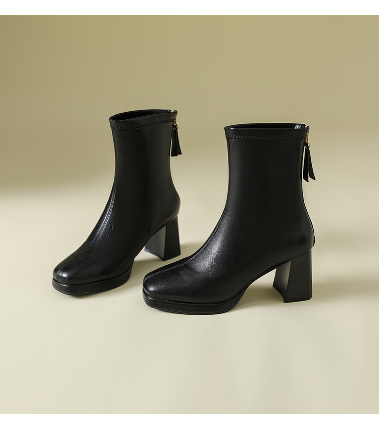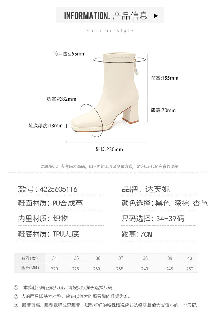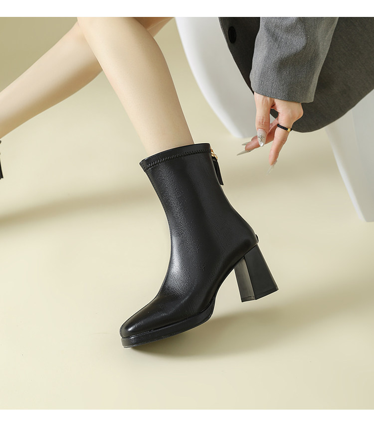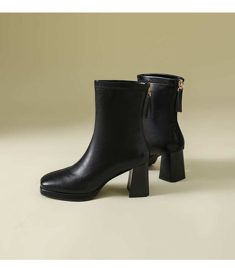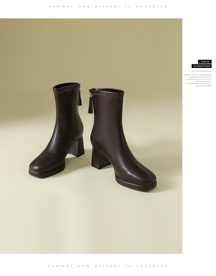 Daphne White Short Boots for Women, Chunky Heel Slim Boots, 2026 New Autumn and Winter Square Toe High Heel Martin Boots