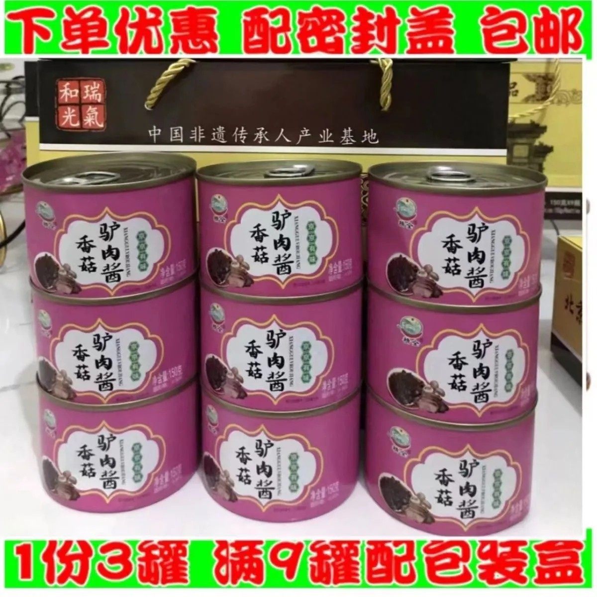 | Taste | 3 Cans of Non-Spicy [Mushroom and Donkey Meat Sauce] New Date/150G Per Can,6 Cans Non-Spicy [Mushroom and Donkey Meat Sauce] New Date,9 Cans Non-Spicy [Gift Box] New Date |
