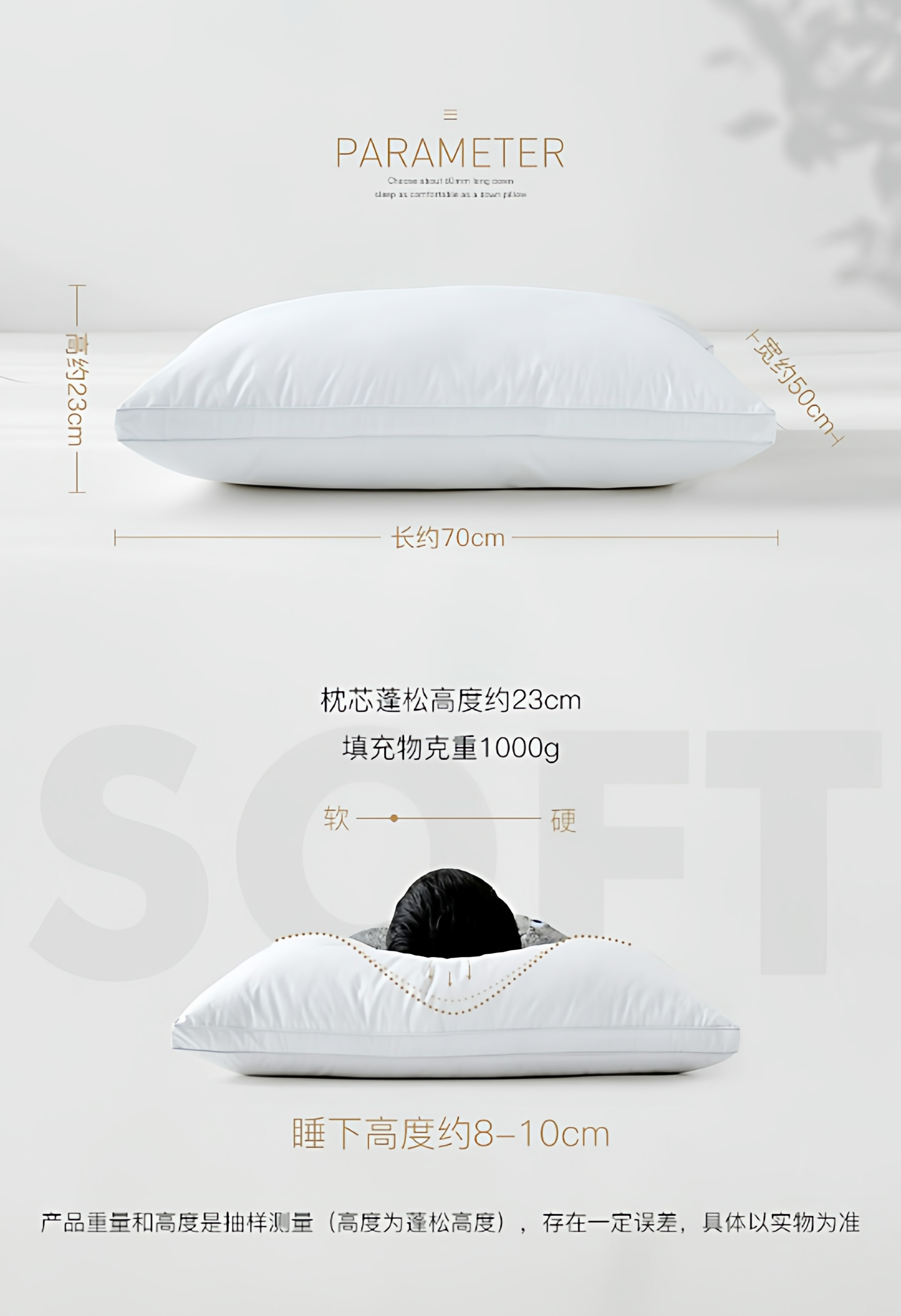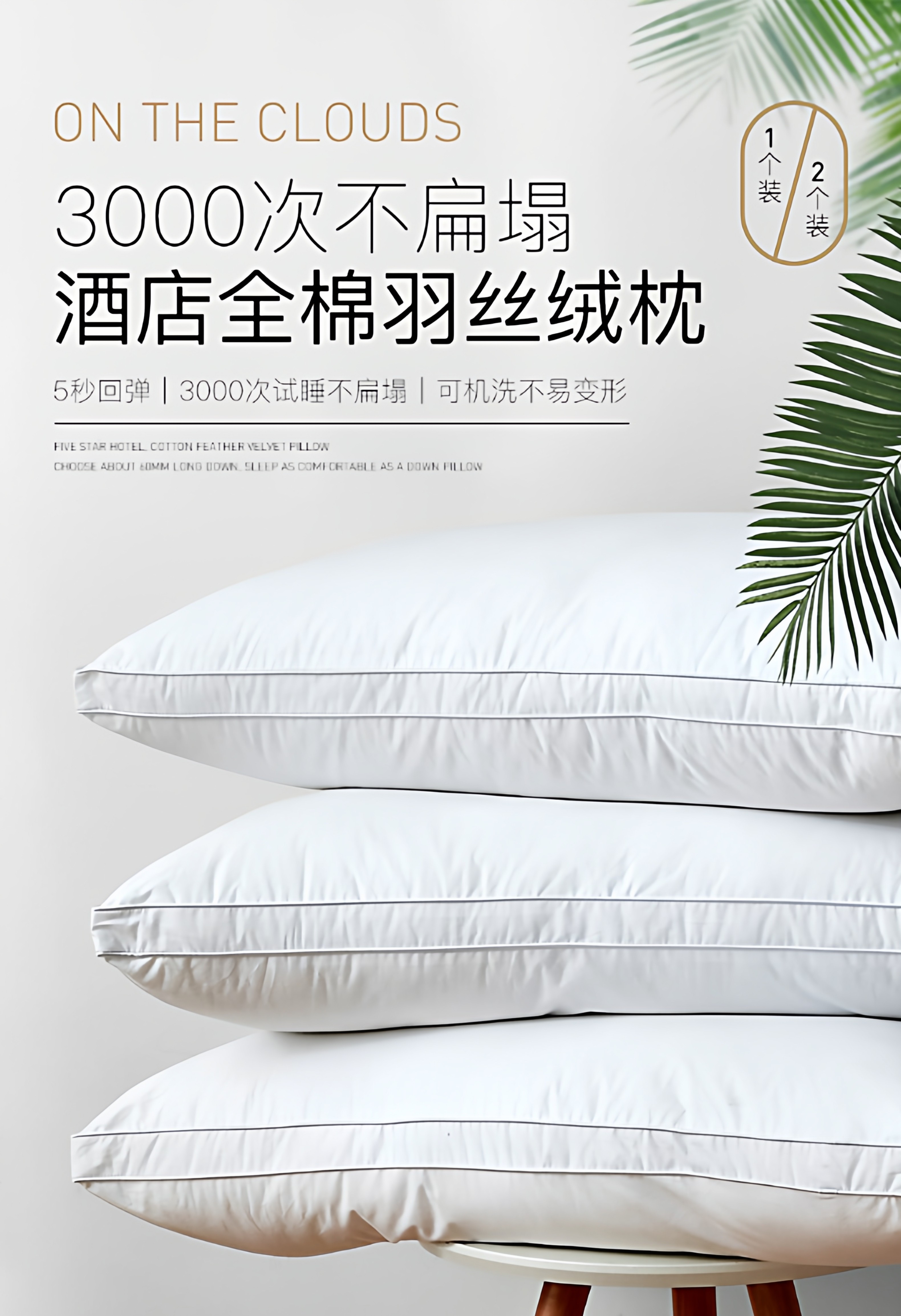 Natural Sleep Pillow Core, Home Use White Feather Velvet Cotton-Feel Pillow, Neck Protection, Sleep Aid, Comfortable Pillow Core for Guesthouses and Hotels
