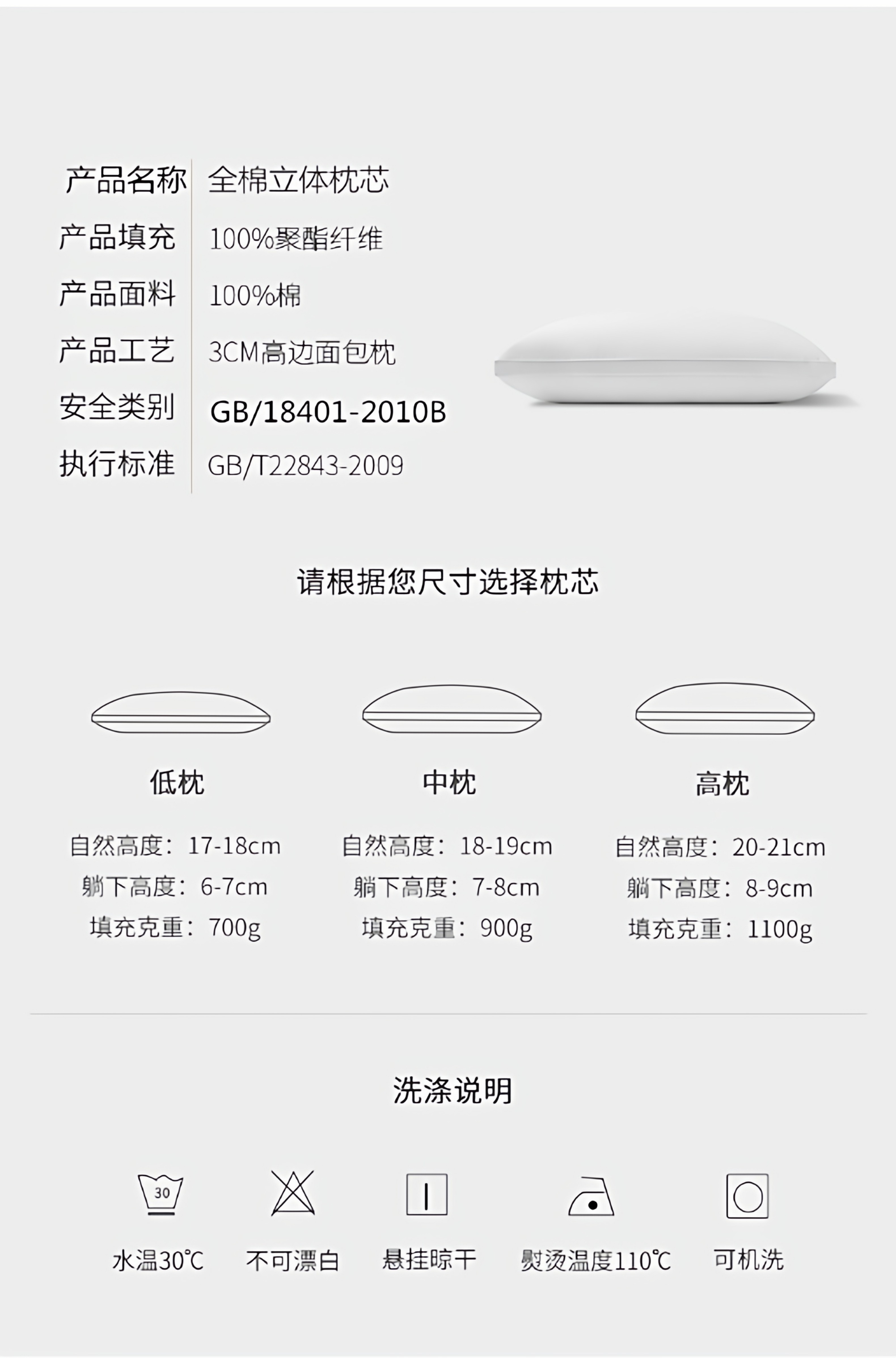 | Color Classification | All-Cotton 3D Pillow Core - Low Profile (Single),All-Cotton 3D Pillow Insert - Standard Pillow (Single),All-Cotton 3D Pillow Insert - High Profile (Single) |