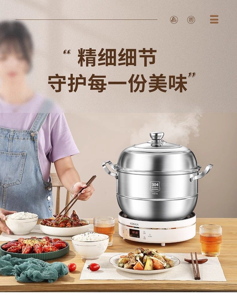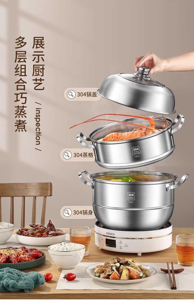 304 Stainless Steel Multifunctional Steamer for Home Use, Three-Layer Thickened Double-Layer Large Capacity Multifunctional Pot, Compatible with Induction Cookers