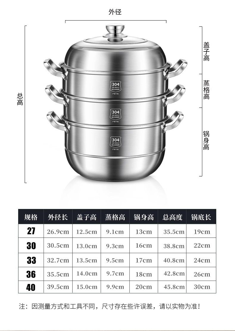 | Color Classification | [Double Layer 28cm]Extra Thick 304 Stainless Steel,[Double Layer 30cm]Extra Thick 304 Stainless Steel,[Double Layer 32cm]Extra Thick 304 Stainless Steel,[Double Layer 34cm]Extra Thick 304 Stainless Steel,[Double Layer 36cm]Extra Thick 304 Stainless Steel,[Double Layer 40cm]Extra Thick 304 Stainless Steel,[Three Layers 28cm]Extra Thick 304 Stainless Steel,[Three Layers 30cm]Extra Thick 304 Stainless Steel,[Three Layers 32cm]Extra Thick 304 Stainless Steel,[Three Layers 34cm]Extra Thick 304 Stainless Steel,[Three Layers 36cm]Extra Thick 304 Stainless Steel,[Three Layers 40cm]Extra Thick 304 Stainless Steel,[Four Layers 30cm]Extra Thick 304 Stainless Steel,[Four Layers 32cm]Extra Thick 304 Stainless Steel,[Four Layers 34cm]Extra Thick 304 Stainless Steel,[Four Layers 36cm]Extra Thick 304 Stainless Steel,[Four Layers 40cm]Extra Thick 304 Stainless Steel |