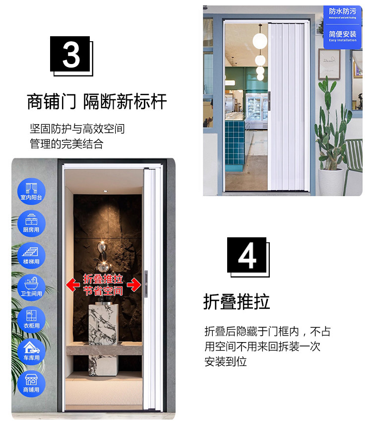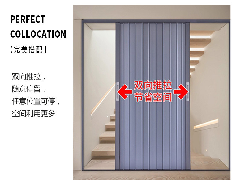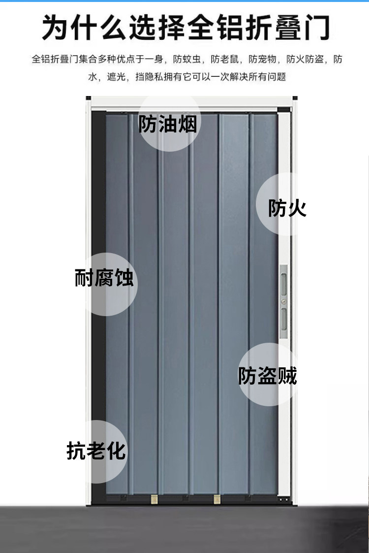 Aluminum Alloy Two-Way Sliding Folding Door for Kitchen, Bathroom, Balcony, Air Conditioning Partition with Lock, Gas-Pipe Compatible, Invisible Sliding Door