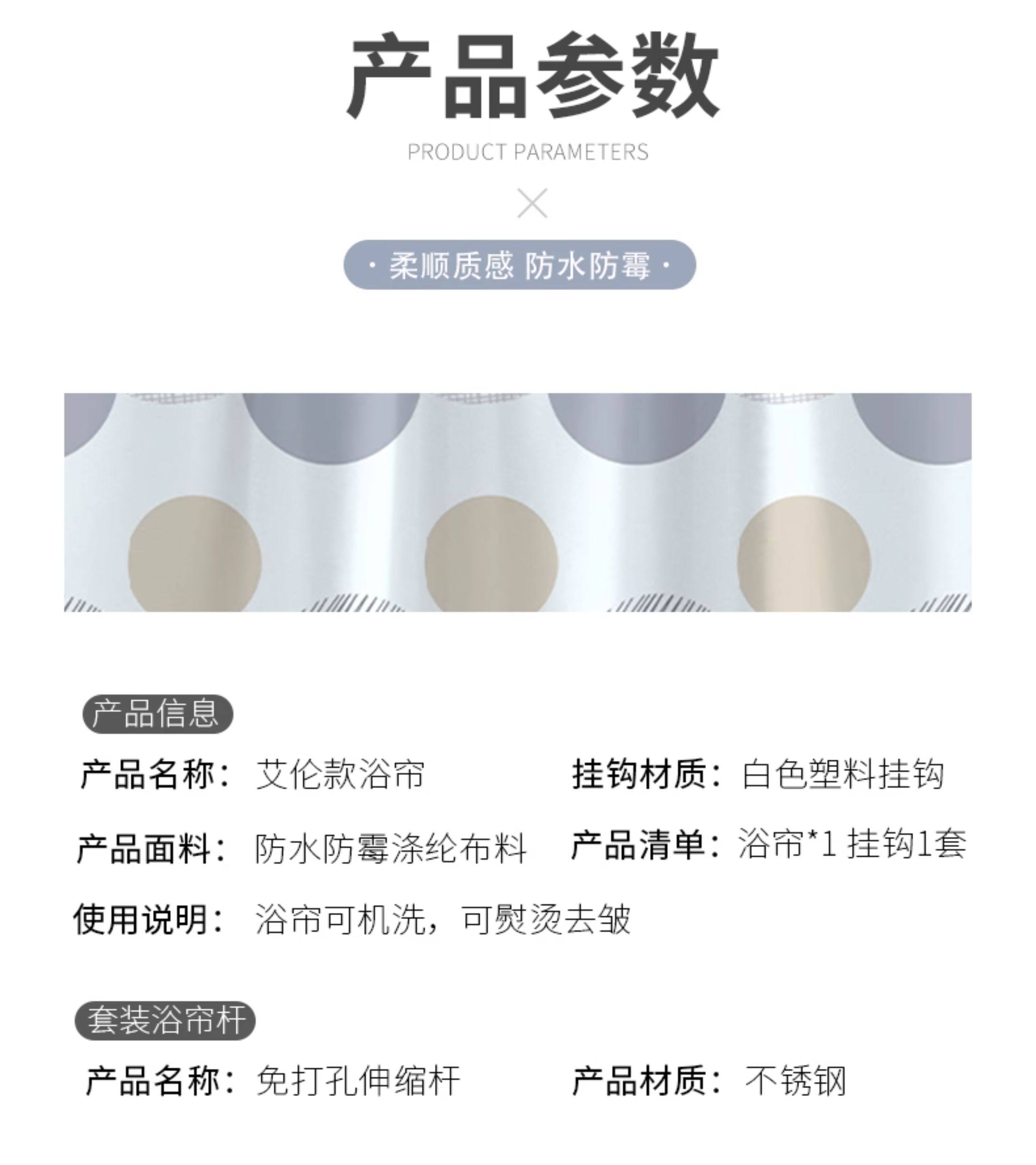 Bathroom Shower Curtain Partition Curtain Waterproof Fabric Hanging Curtain Blocking Curtain Bathroom Shower Room Door Curtain Telescopic Rod Mildew-Proof
