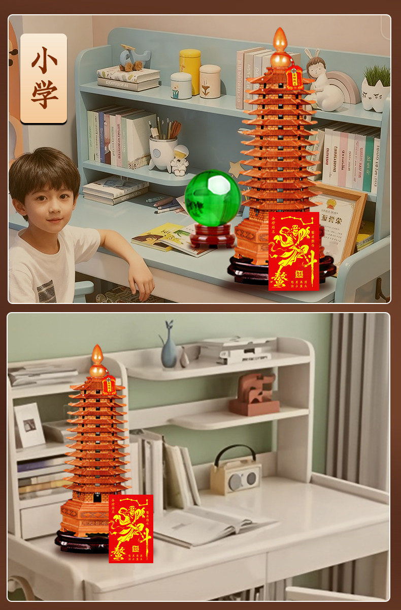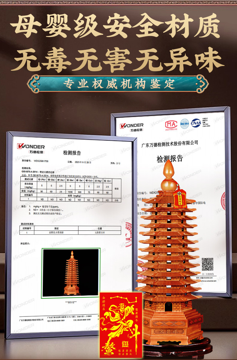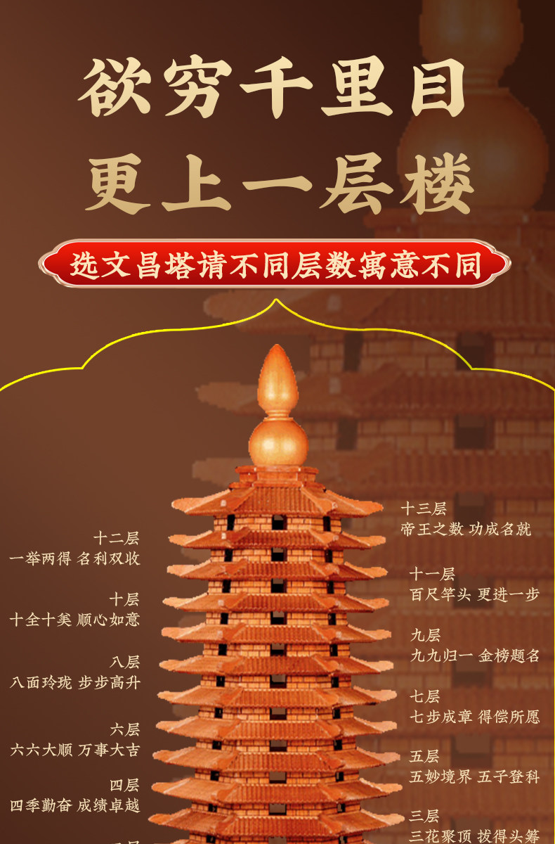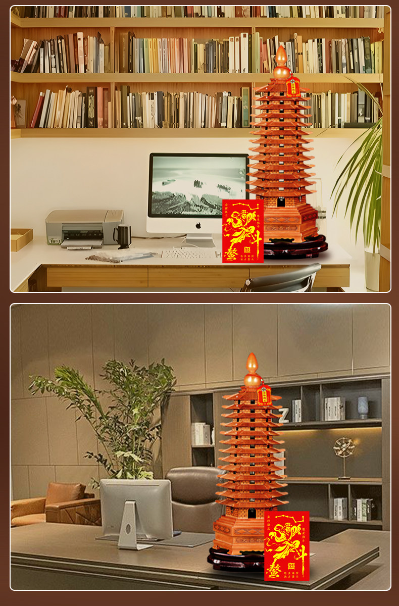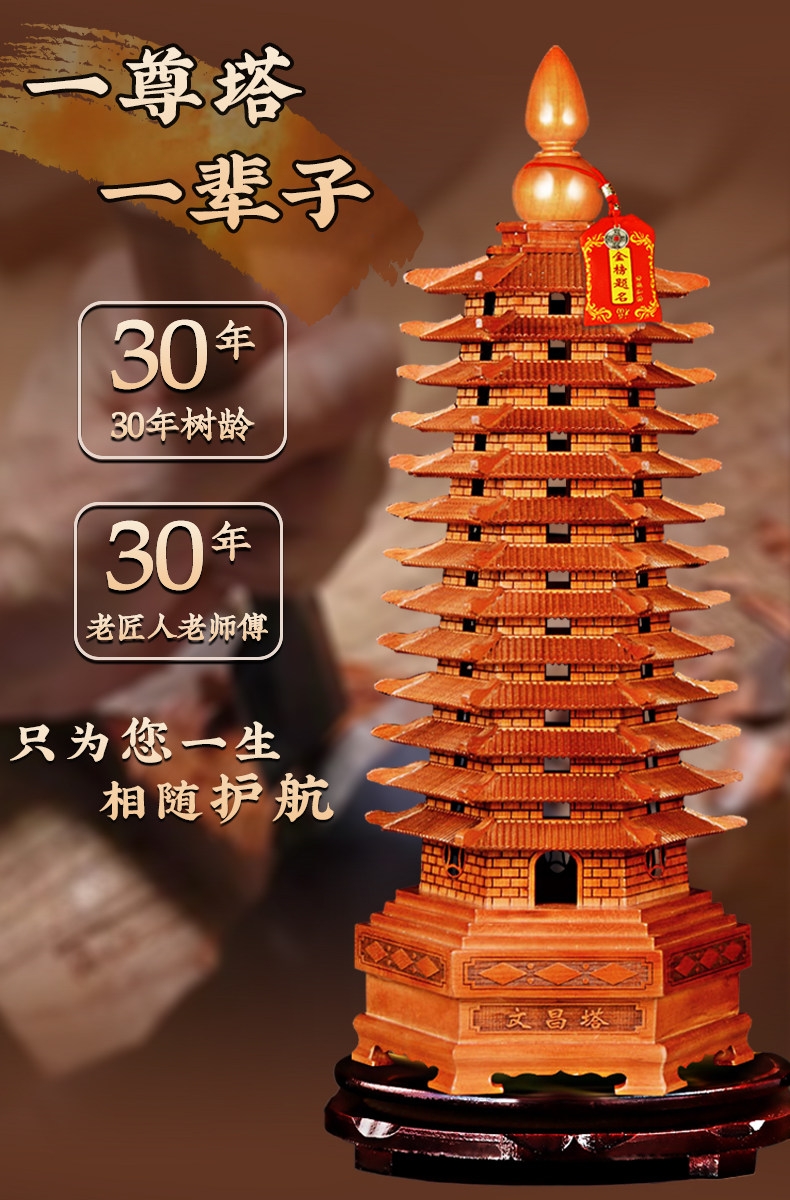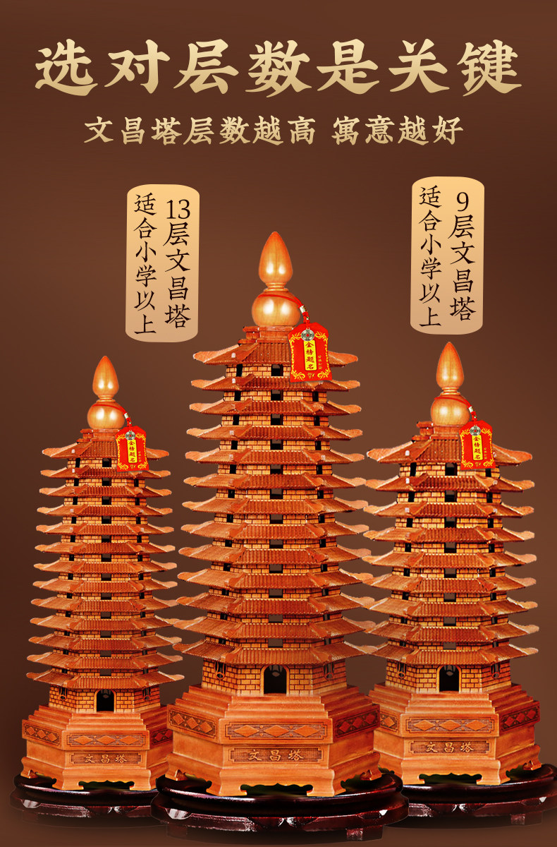 Wooden Wenchang Tower Ornament, Natural Peach Wood, 13 Layers, Wooden Nine-Layer Study Desk, 9 Layers, 7 Layers, Thirteen-Layer Wooden Products