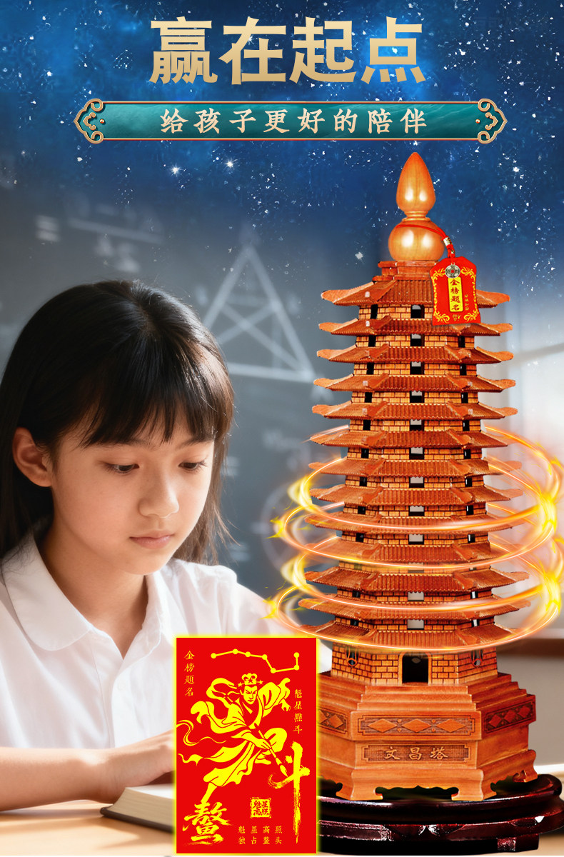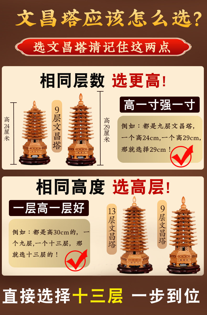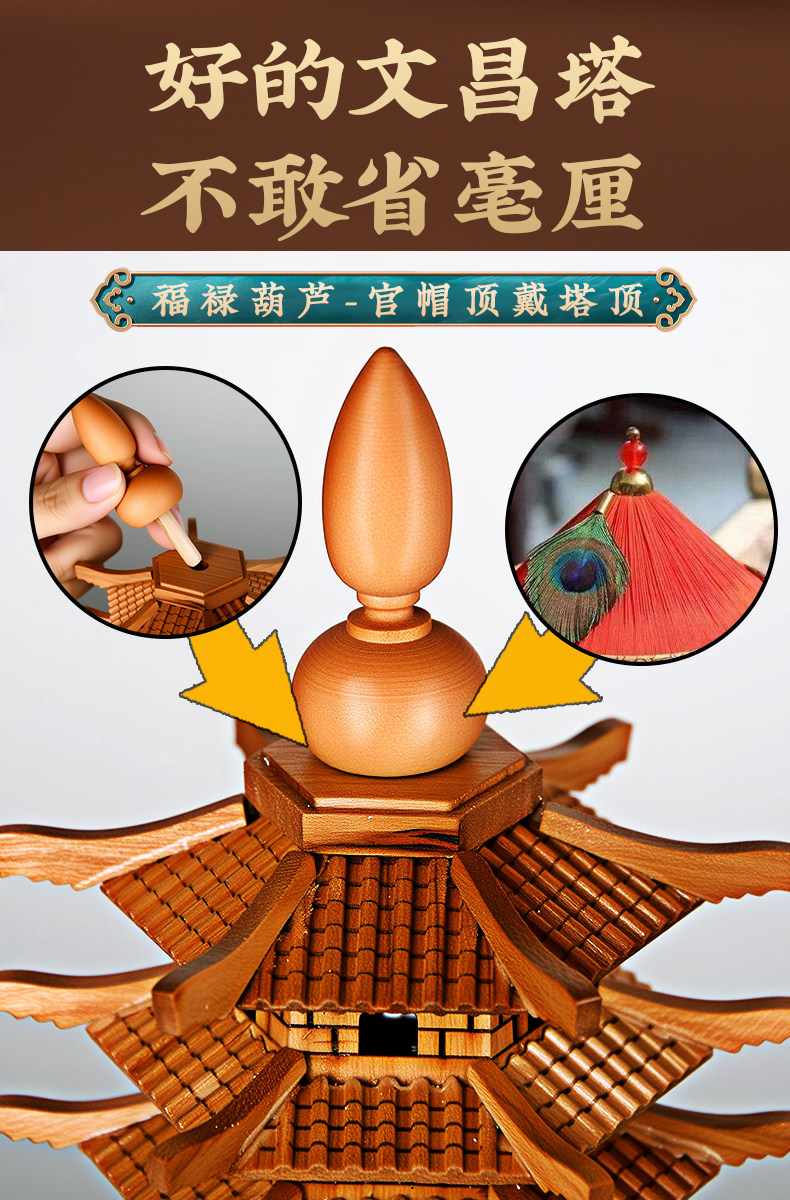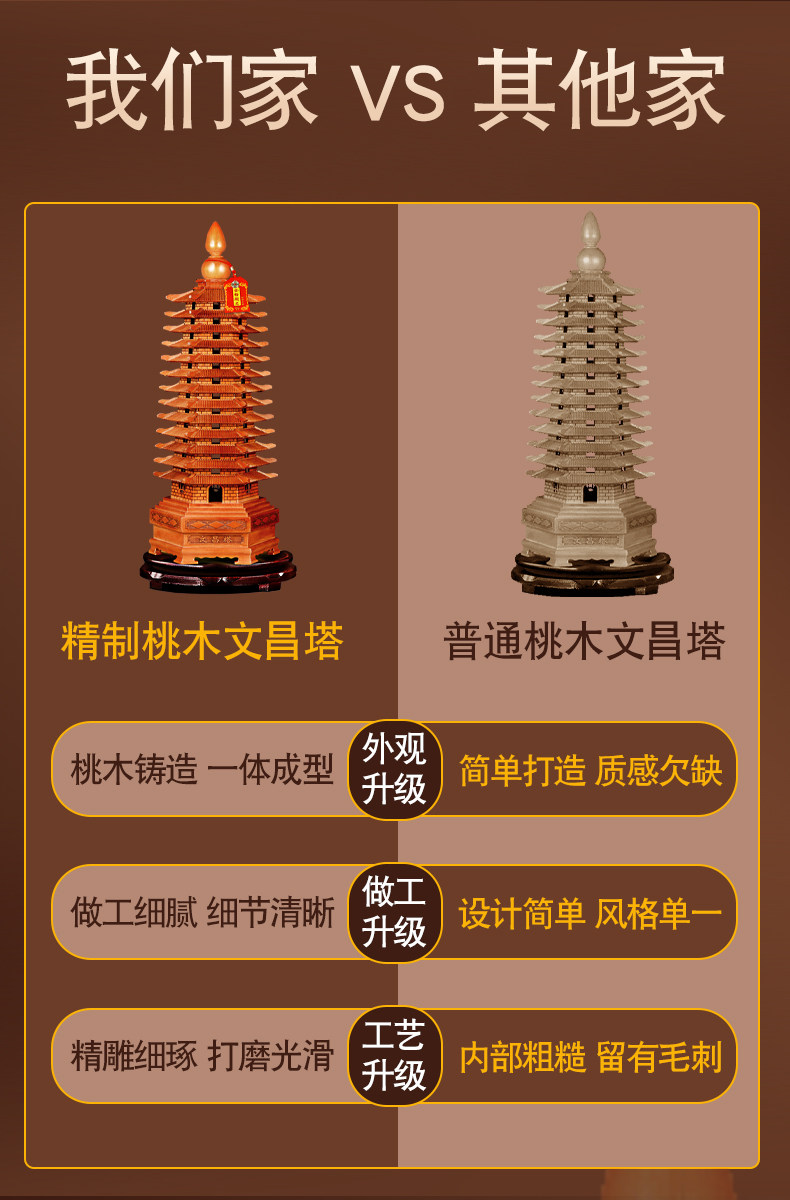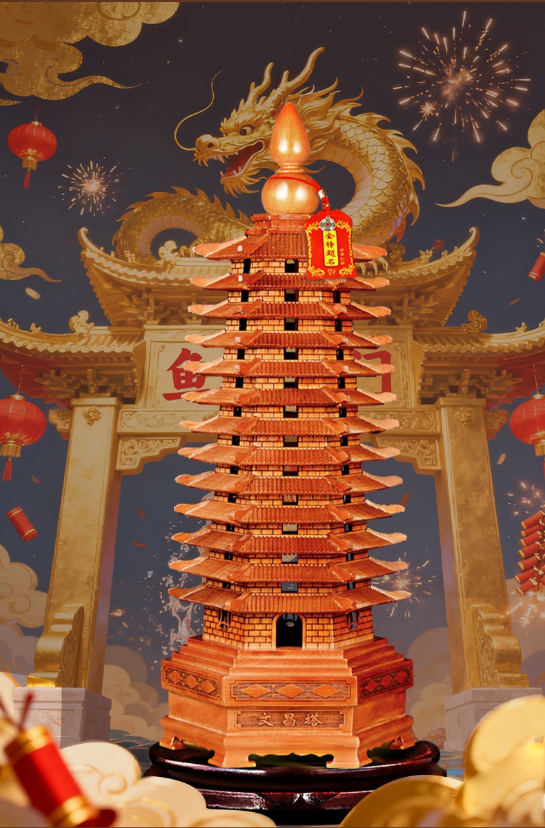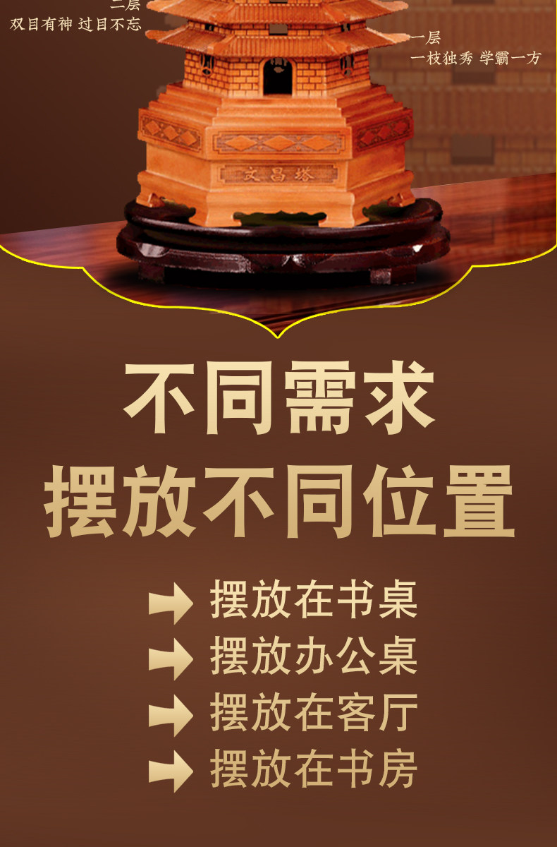 Wooden Wenchang Tower Ornament, Natural Peach Wood, 13 Layers, Wooden Nine-Layer Study Desk, 9 Layers, 7 Layers, Thirteen-Layer Wooden Products