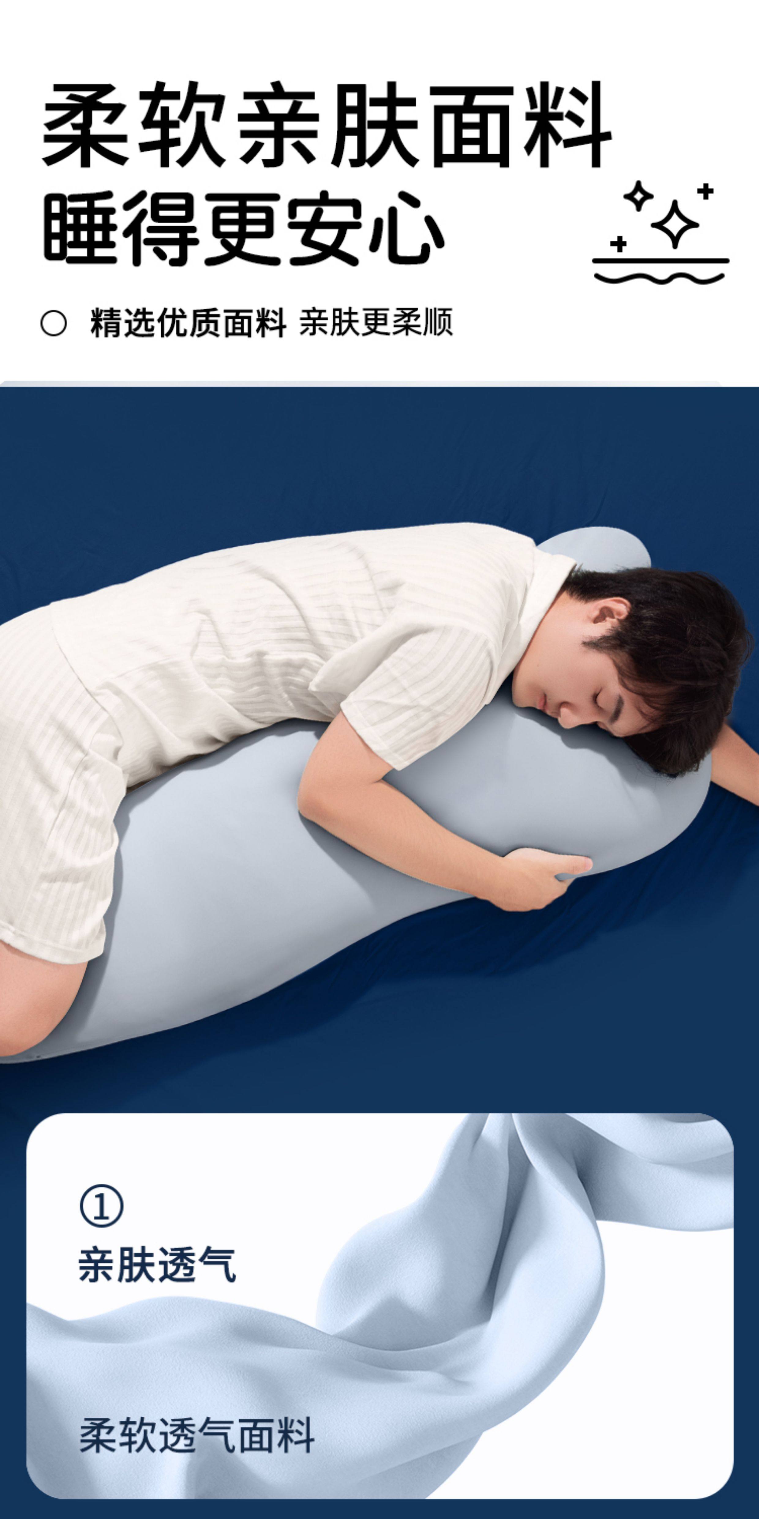 Nila Pillow for Men, Special for Adults to Sleep with Legs Folded, Seahorse Side Sleeping Long Pillow, Adult Boy Lying down Pillow