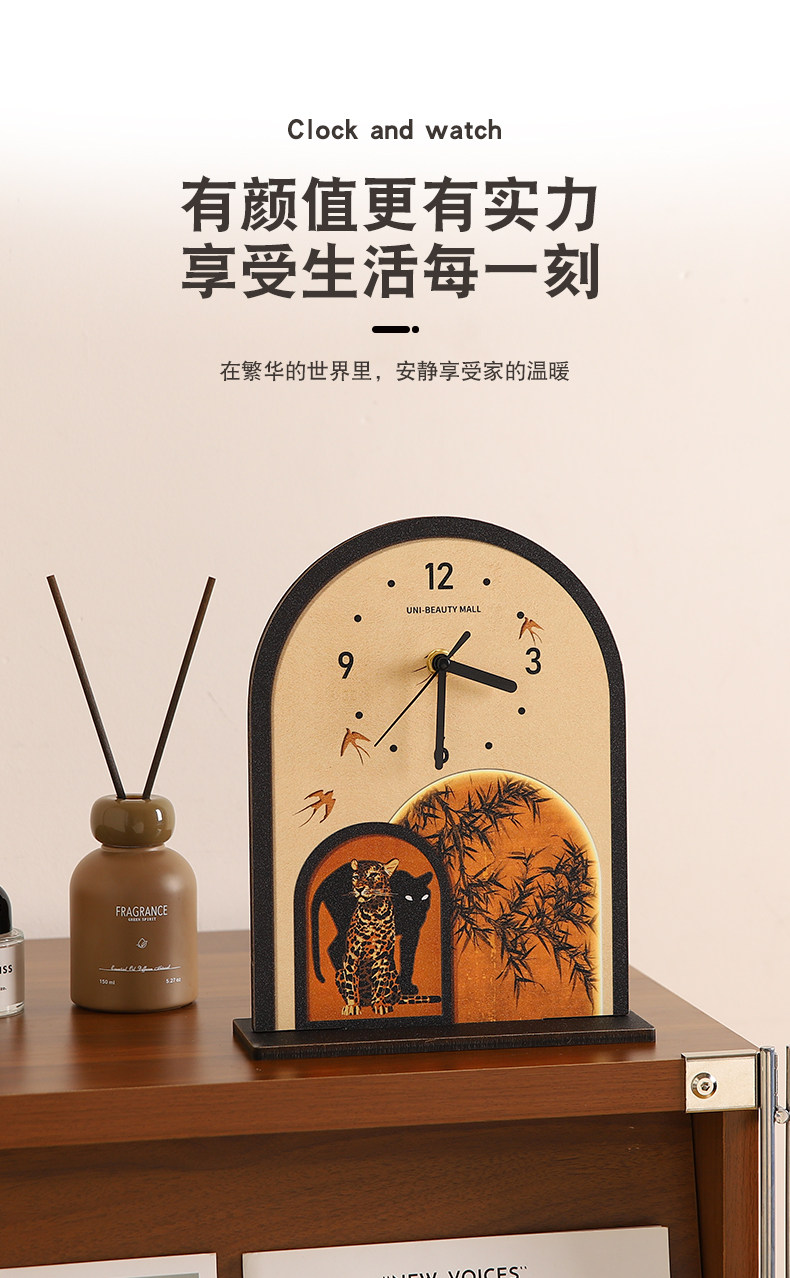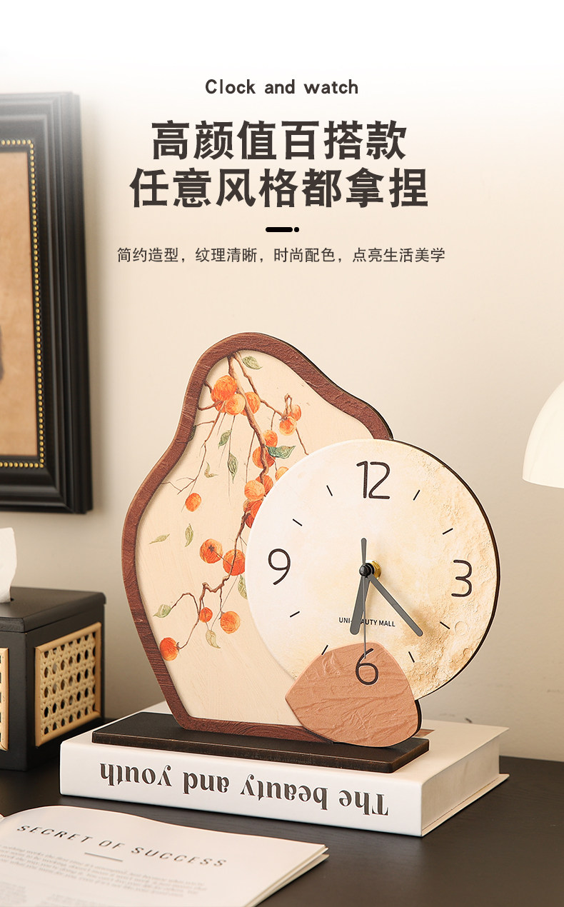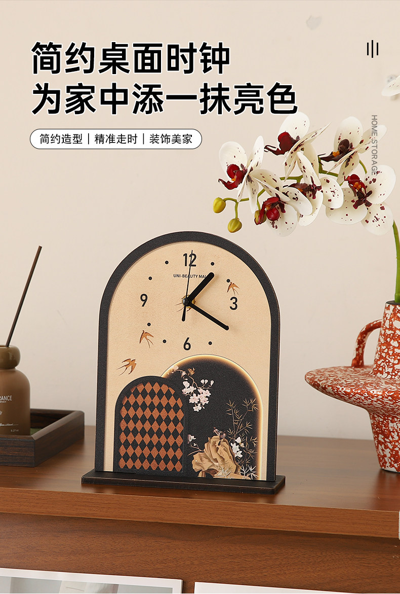 French-Style Vintage Desktop Clock Ornament, Tabletop Clock, Silent Clock for Living Room Tv Cabinet Decoration