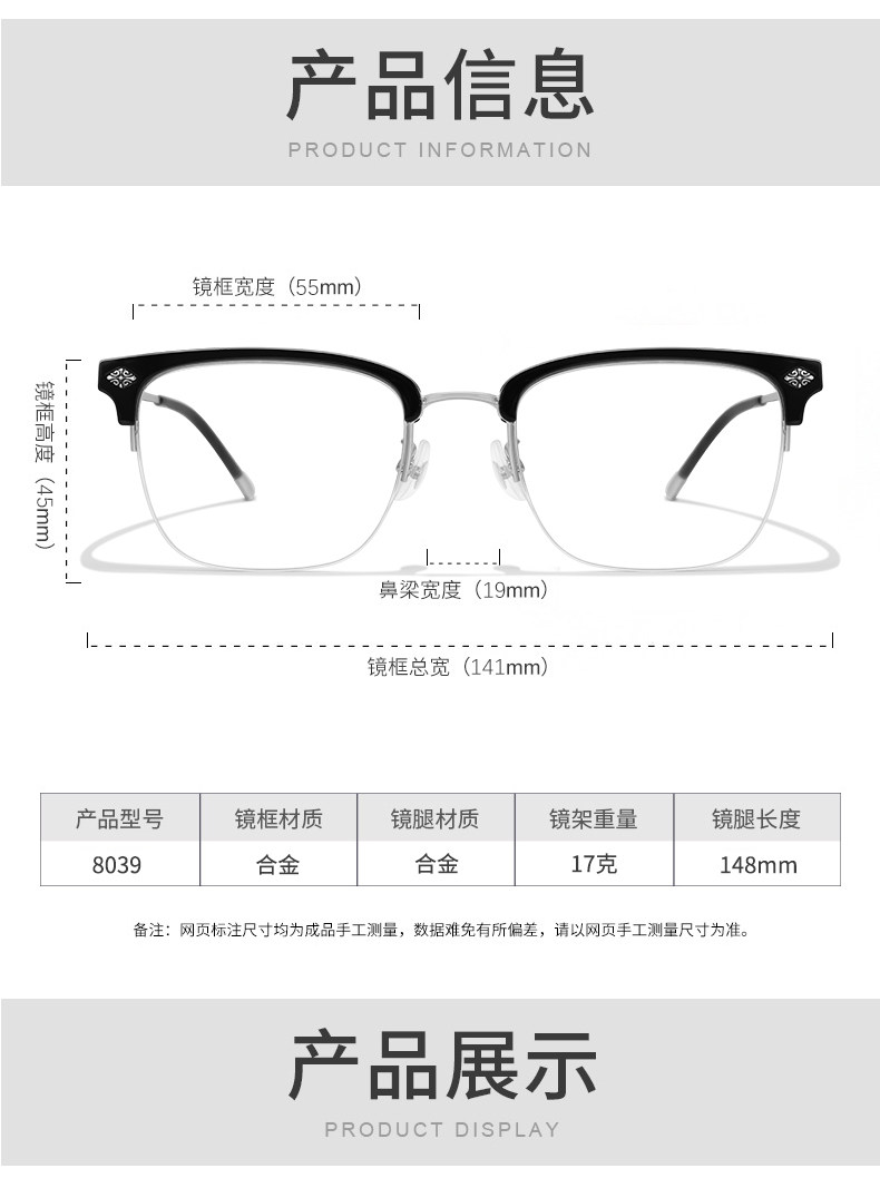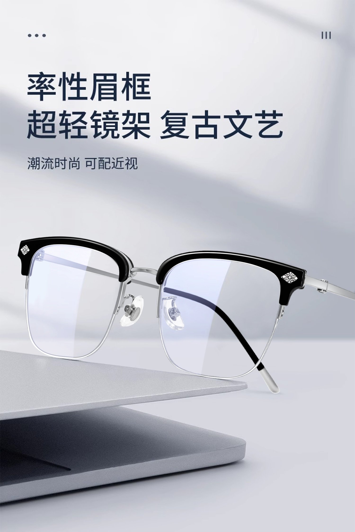 Ultra-Light and Elegant Half-Rim Glasses Frame for Men, Trendy and Handsome, Suitable for Prescription Lenses, Blue Light Blocking, Business and Casual Eyewear Frame