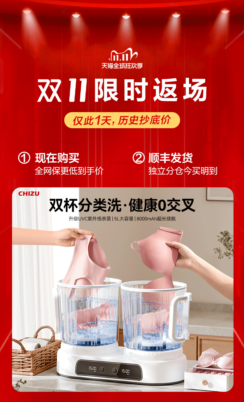 | Color Classification | [Refund if Not Satisfied with the Effect] Next Day Delivery⭐90 Days Free Trial⭐3 Years Warranty,[Plug-In Model] Underwear and Socks Are Washed in Separate Compartments✅Health 0 Cross✅The Net Washing Ratio Is as High as 1.28✅Efficient and Powerful Stain Removal,[Rechargeable Model] Double Antibacterial 99.99%✅Health 0 Cross✅The Net Washing Ratio Is as High as 1.58✅Ultra-High Rpm for Powerful Stain Removal,〖Store Manager Recommendation〗98% of People Choose↓↓Upgrade to Large Capacity/Blue Light Sterilization/Long Battery Life↓↓↓,[Flagship Model] 5L Large Capacity✅8000Mah Long Battery Life✅Double Cups for Independent Cleaning✅Health 0 Cross,[Top Model] Uvc Blue Light Sterilization✅5L Large Capacity✅8000Mah Long Battery Life✅Double Cups for Independent Cleaning✅Health 0 Cross,---- By Selecting Any of the Above Options, You Are Entitled to All of the Following Benefits----,【Why Not Choose a Single-Cup Washing Machine?】Easy Cross-Infection⭐Buying Two Is a Waste of Money⭐Very Poor Battery Life,[Outperforms Traditional Single-Serve Models] Washes Two Cups Separately⭐5L Gold Large Capacity⭐Achieve True Zero Cross Infection,[New Product Launch] the First 20 People Every Day Will Receive Intimates Laundry Detergent⭐Leave a Review and Get a 20 Rmb Cash Reward!,[Highly Recommended by Top Doctors] Sterilization Rate 99.99%⭐Washing Ratio >1.78⭐The Sterilization Effect Is Visible |