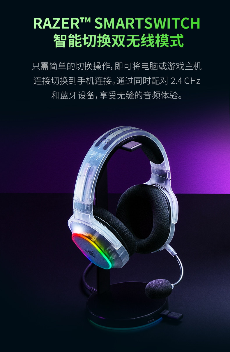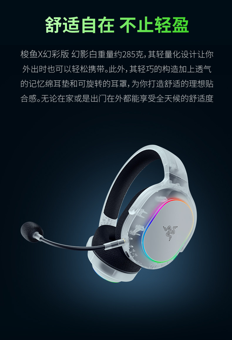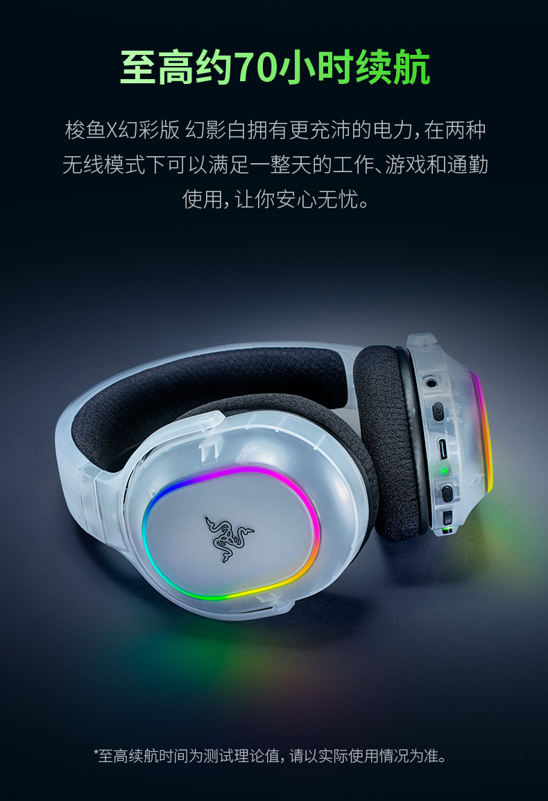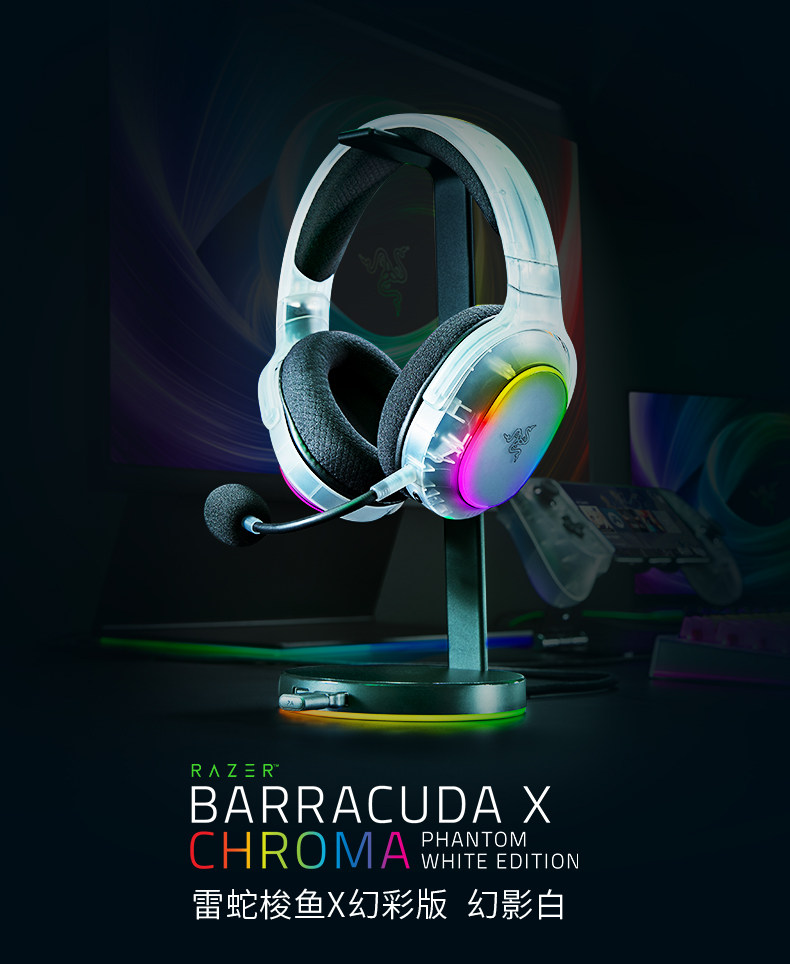 Razer Barracuda X Phantom White Edition Over-Ear Bluetooth Dual-Mode Surround Sound Gaming Headset