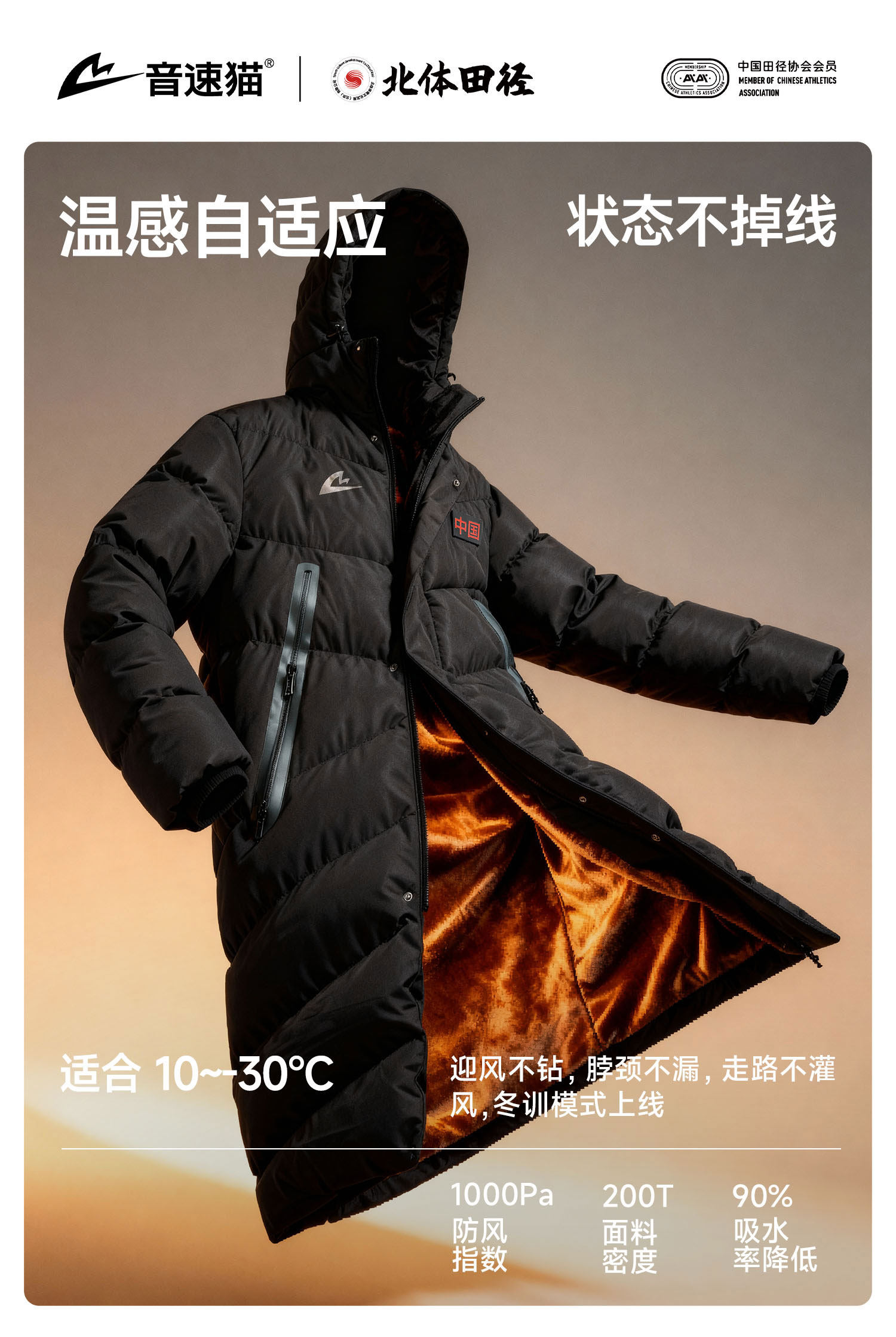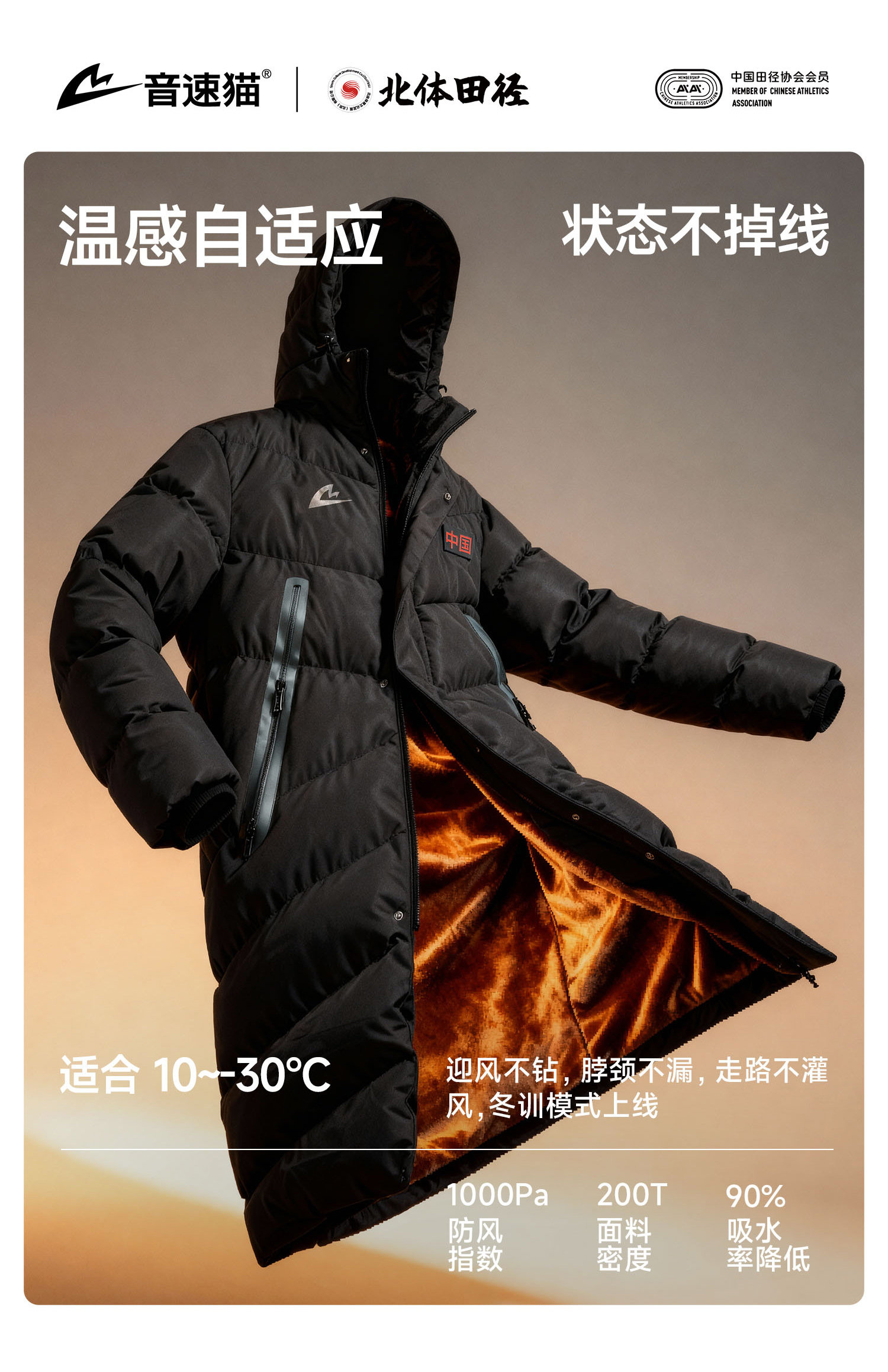 [North Sports Joint Research]Sonic Cat Heat Wave Series Long Cotton Jacket Auto-Fit Coat Winter Cotton Padded Jacket Overcoat